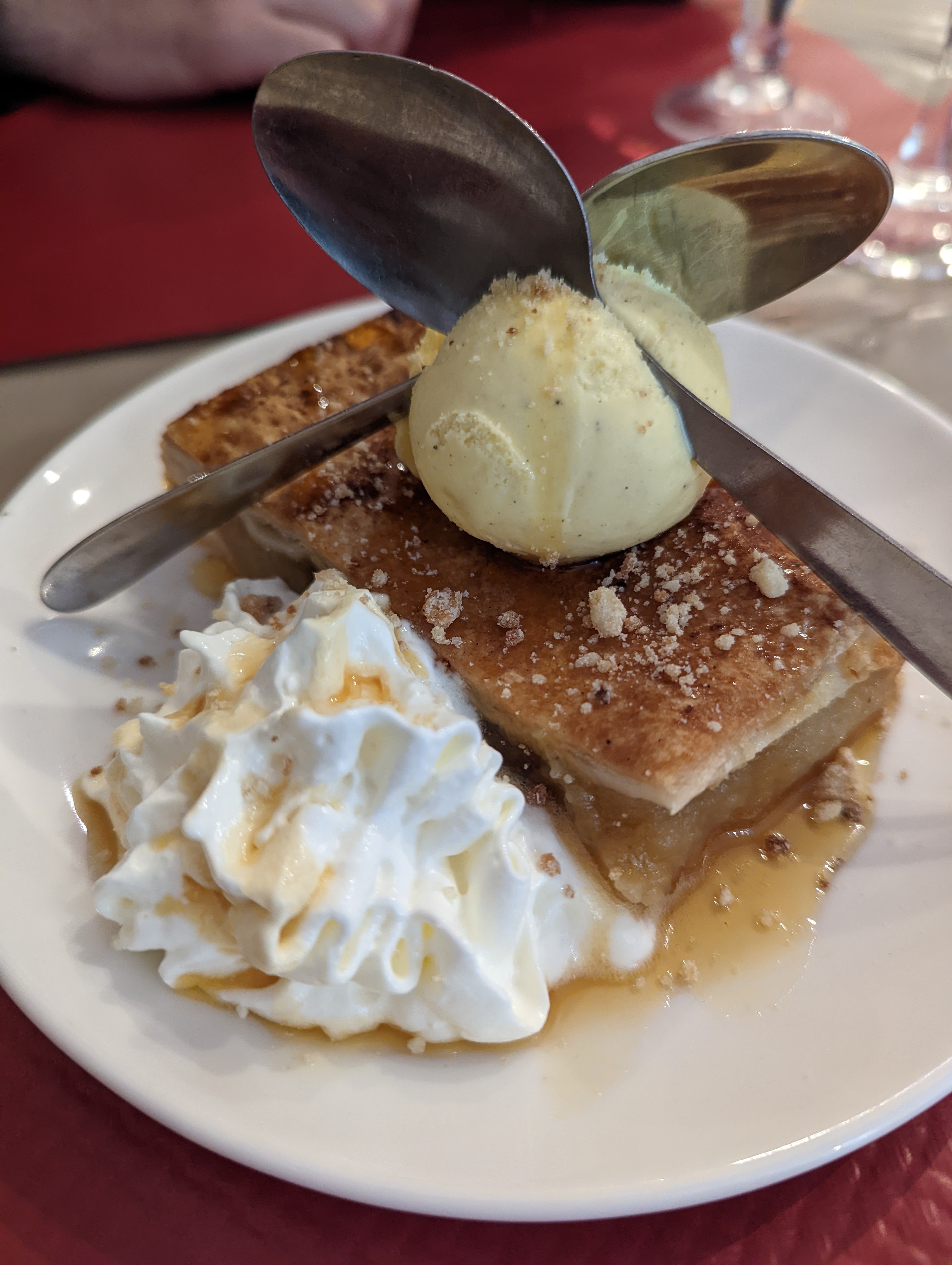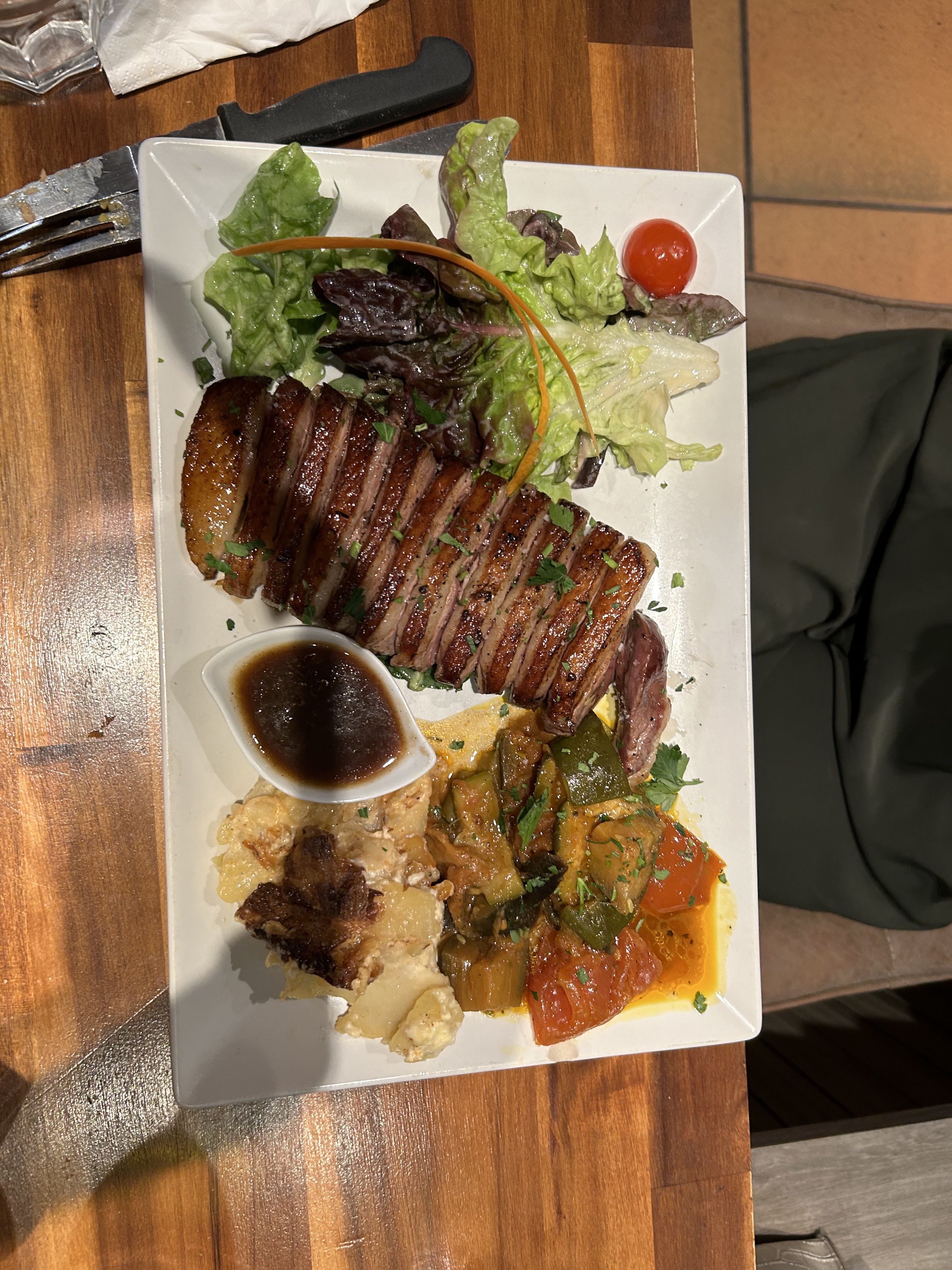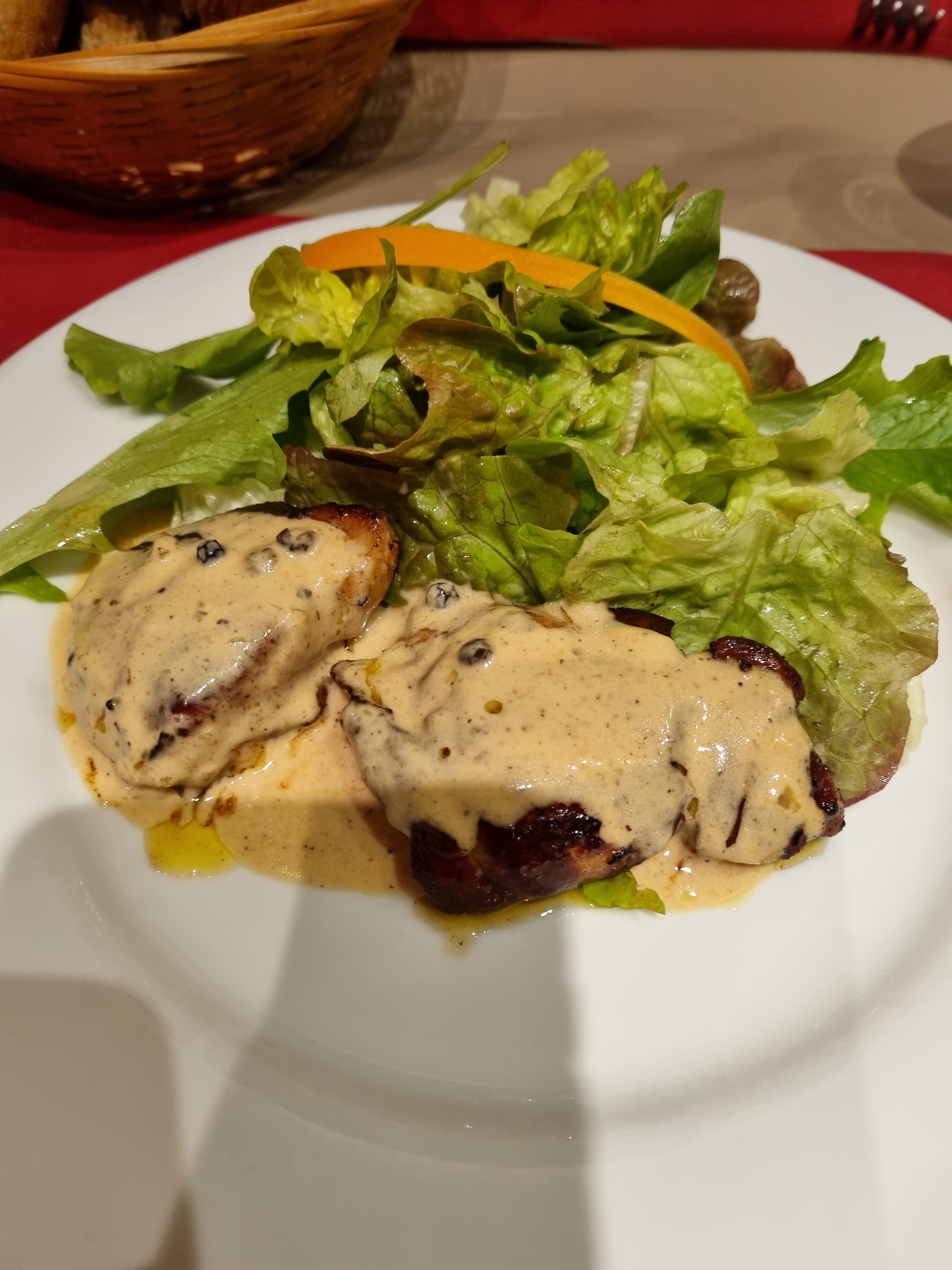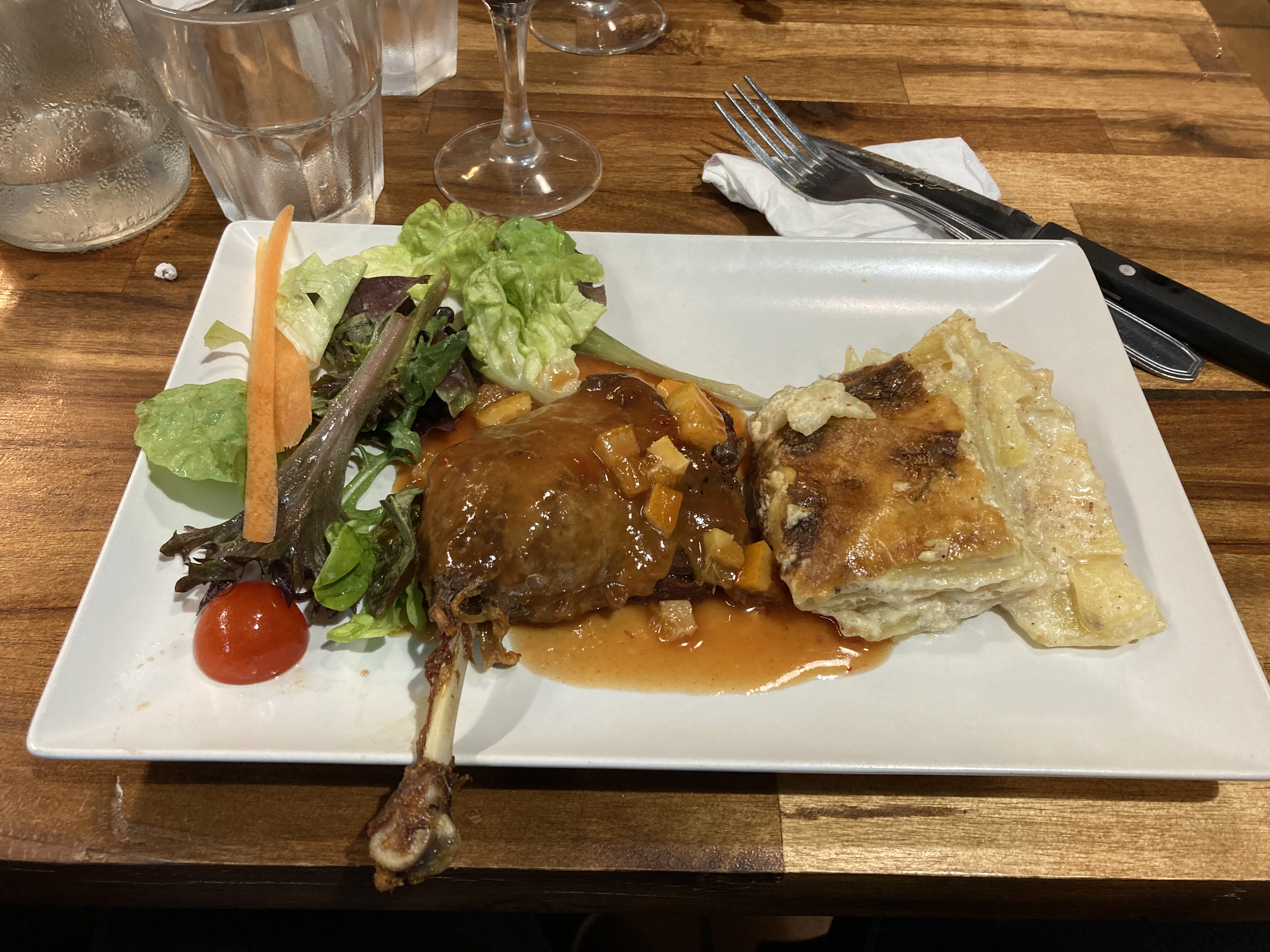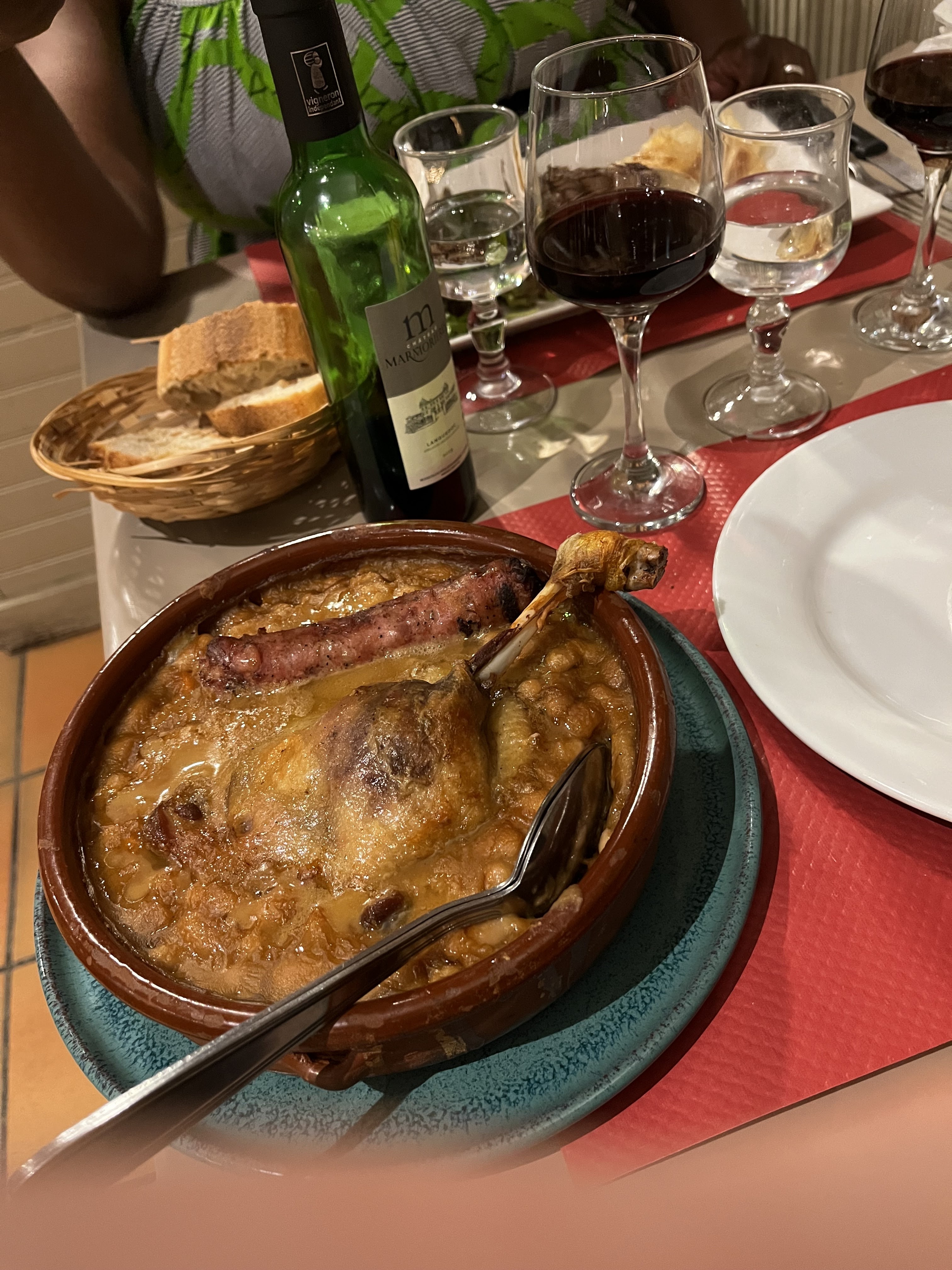 Un endroit plus traditionnel et moins chic. J'y suis allé parce que je voulais essayer le cassoulet. C'était bien et exactement ce à quoi je m'attendais. J'ai aussi reçu une cuisse de canard à la sauce à l'orange (qui était accompagnée de beaucoup de pommes de terre — merci pour ça !) et une panna cotta en dessert. Oh, j'ai aussi eu une salade de chèvre en entrée que j'ai fini par ne pas manger car le chèvre s'est avéré être français pour une chèvre haha. Mais c’est ma préférence et non la faute du restaurant.