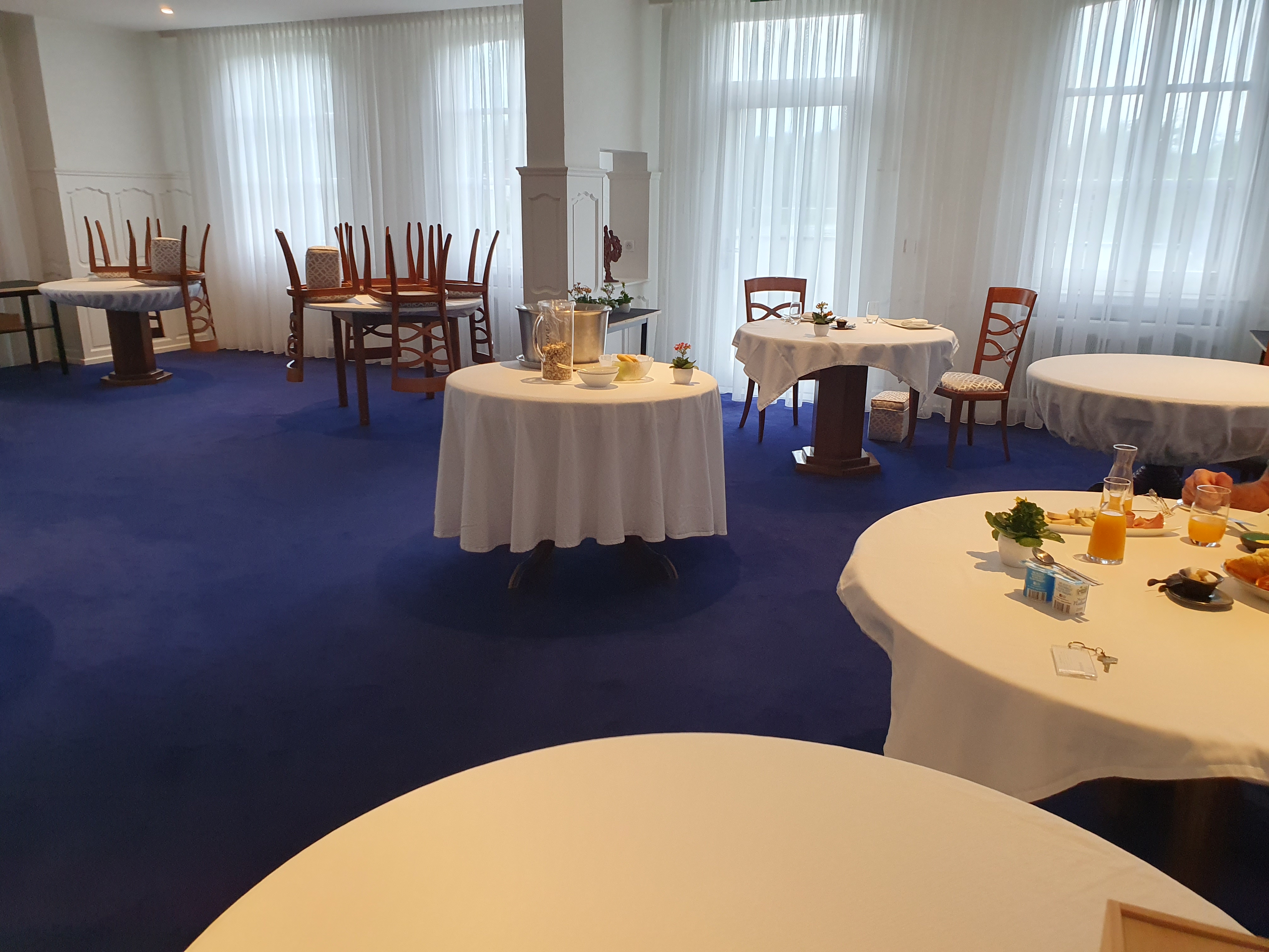 Nous faisions tous les deux un tour à vélo et avons passé la nuit ici. La chambre d'hôtel était bien. Les toilettes de ma chambre avaient la taille d'une boîte d'allumettes et étaient impossibles à utiliser sans la porte des toilettes ouverte. La douche avait la taille d'une boîte à chaussures et il était difficile de s'y déplacer. Le petit-déjeuner sans amour était composé de morceaux de fromage, de deux tranches de jambon cru, de trois croissants, de deux petits pains, de jus d'orange, de beurre, d'une cuillerée de confiture et de yaourt, voir photo. Le prix par personne de 14,50 € peut être qualifié d'ambitieux.
