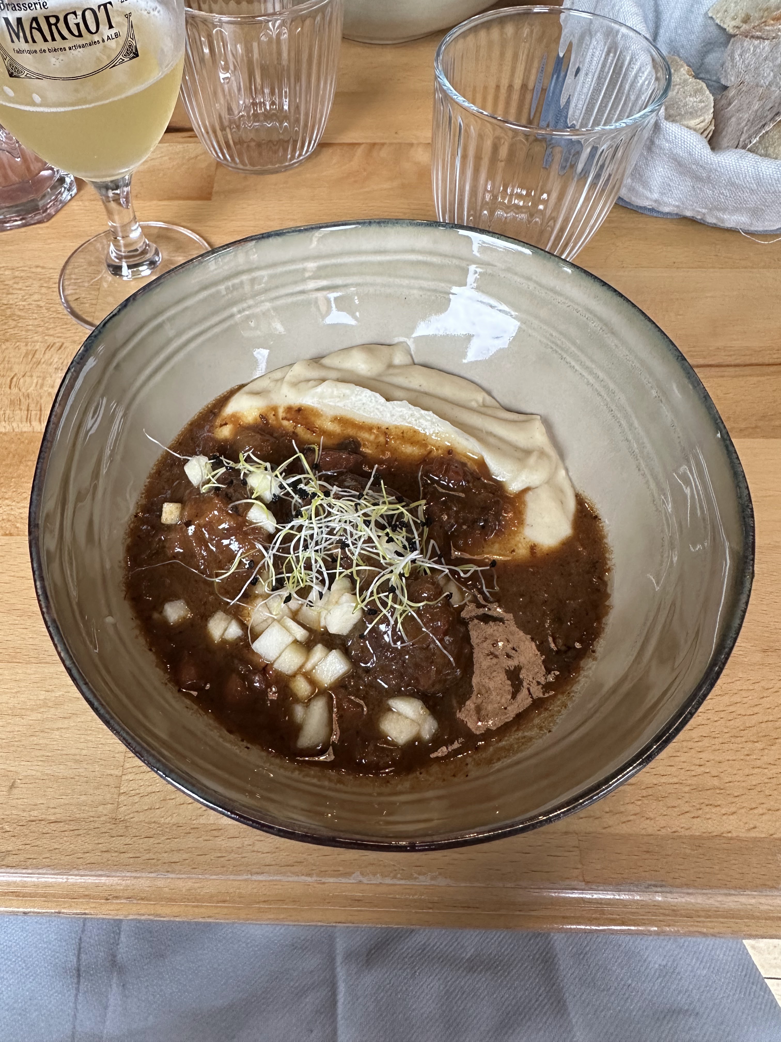 Un moment parfait pour une escale à Albi. On a adoré ce restaurant où nous avons déjeuné le midi (repas délicieux, tout était excellent) et où on a pris l’apéro le soir (planche de charcuterie parfaite). Une adresse que l’on retiendra pour une future visite ! Allez y les yeux fermés.