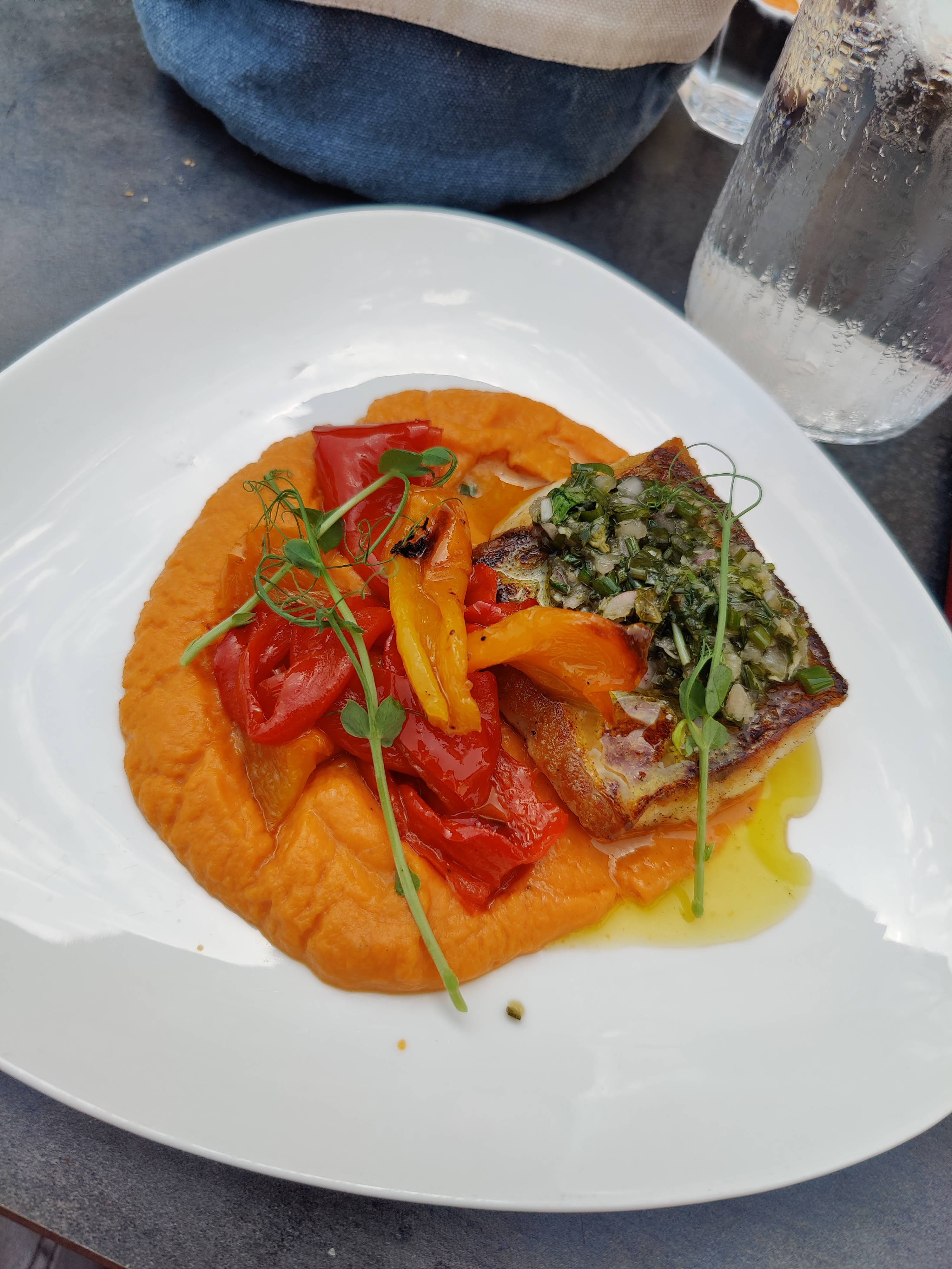Excellente cuisine, goûteuse et sortant de l'ordinaire. Pour 4€ de plus que le plat seul j'ai décidé de prendre le menu. Entrée un peu petite, melon et pastèque auraient gagné à être coupés de façon plus régulière pour que ça soit parfait, la cuisson du poisson était impeccable, et pour le dessert comme j'avais refuse le pain en disant que je suis sans gluten, j'ai eu droit à une tuile rien que pour moi, spéciale à la noix de coco. Qualité, quantité s et attention = réussite assurée. Bravo et merci encore.
