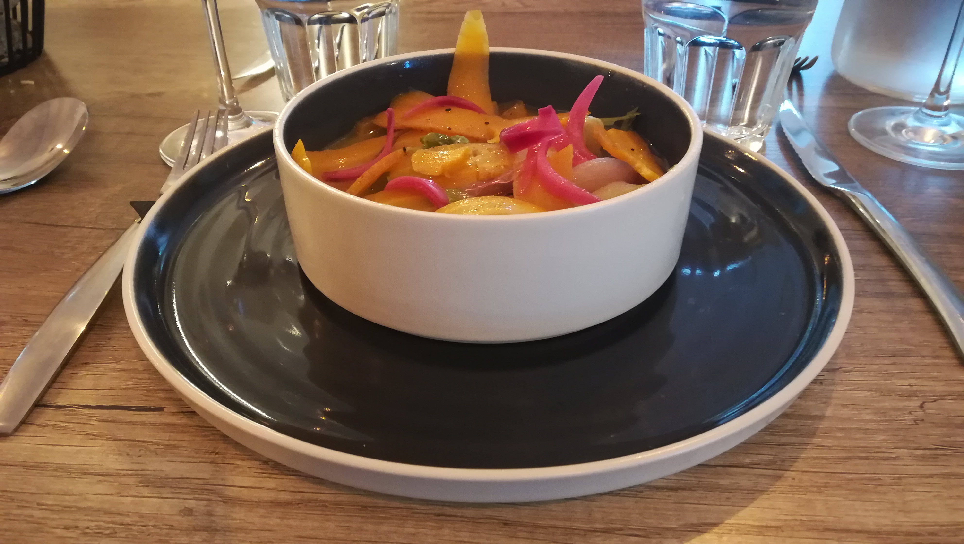 nous avons très bien mangé, plateau de charcuterie et fromage en entrée, côte de bœuf parfaitement cuite ensuite, tout comme les frites et la purée qui étaient excellentes! Le dessert, une tarte aux fraises revisitée, était léger et gourmand. Le service est rapide et efficace, la présentation est originale, je recommande vivement ce restaurant si vous souhaitez manger bistronomique dans des tarifs raisonnables !