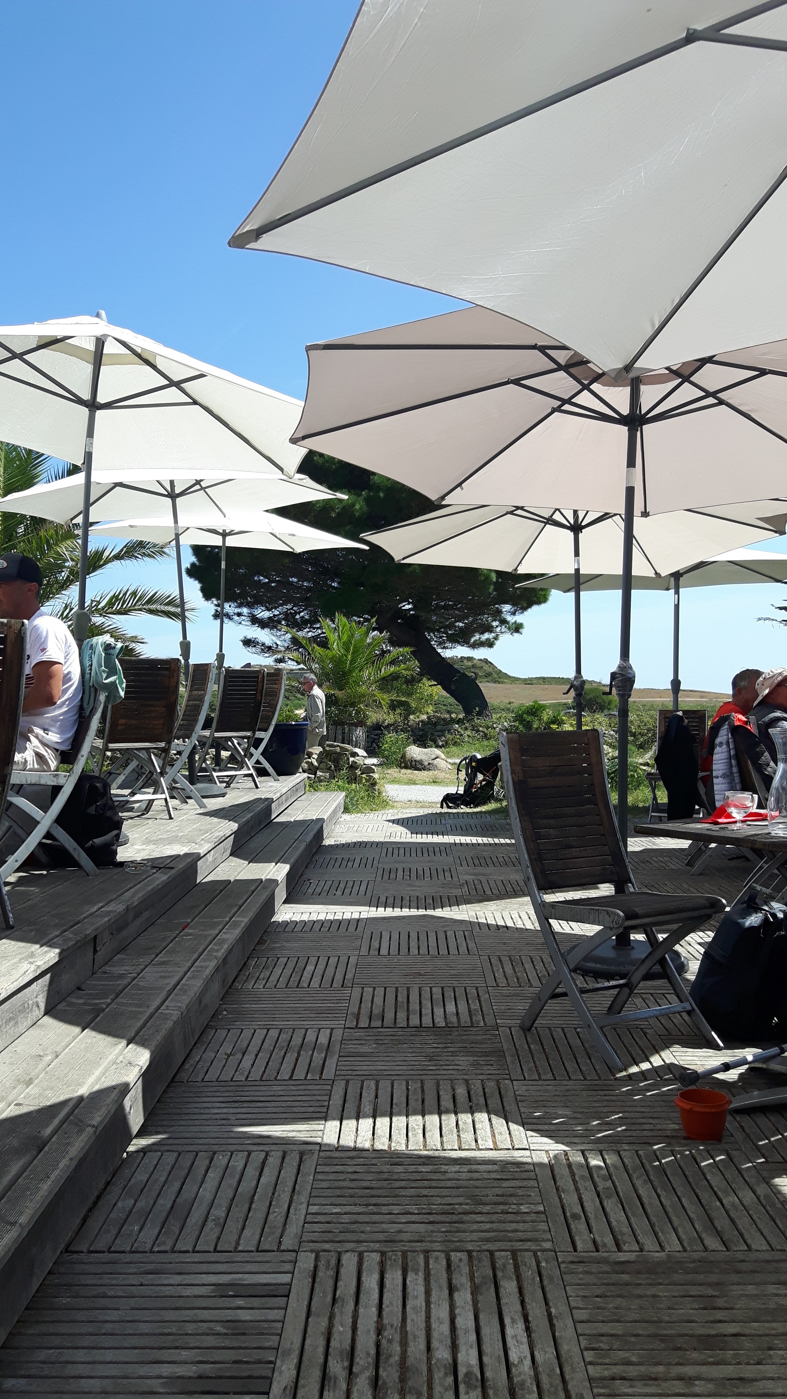 Très bon accueil, attentif aux enfants et assiettes copieuses Nous avons très bien mangé dans ce jardin et surtout passé un agréable moment. L'accueil était agréable et les serveurs sont attentifs aux enfants ; service rapide pour eux et surveillance lors des allers et venues du personnel. Côté assiette, nous avons bien mangé : les salades sont copieuses et les ingrédients les composants sont de qualité. Les pizzas elles sont assez classiques et les desserts aussi. L'objectif ici est vraiment la détente en famille autour d'un déjeuner comme à la maison ; nous sommes vraiment conquis et reviendrons à notre prochaine balade sur Hoëdic. Enfin, le restaurant ne prend pas les réservations car il y a largement de la place dans le jardin pour déjeuner ; venez-y à 12h pile si vous êtes nombreux.