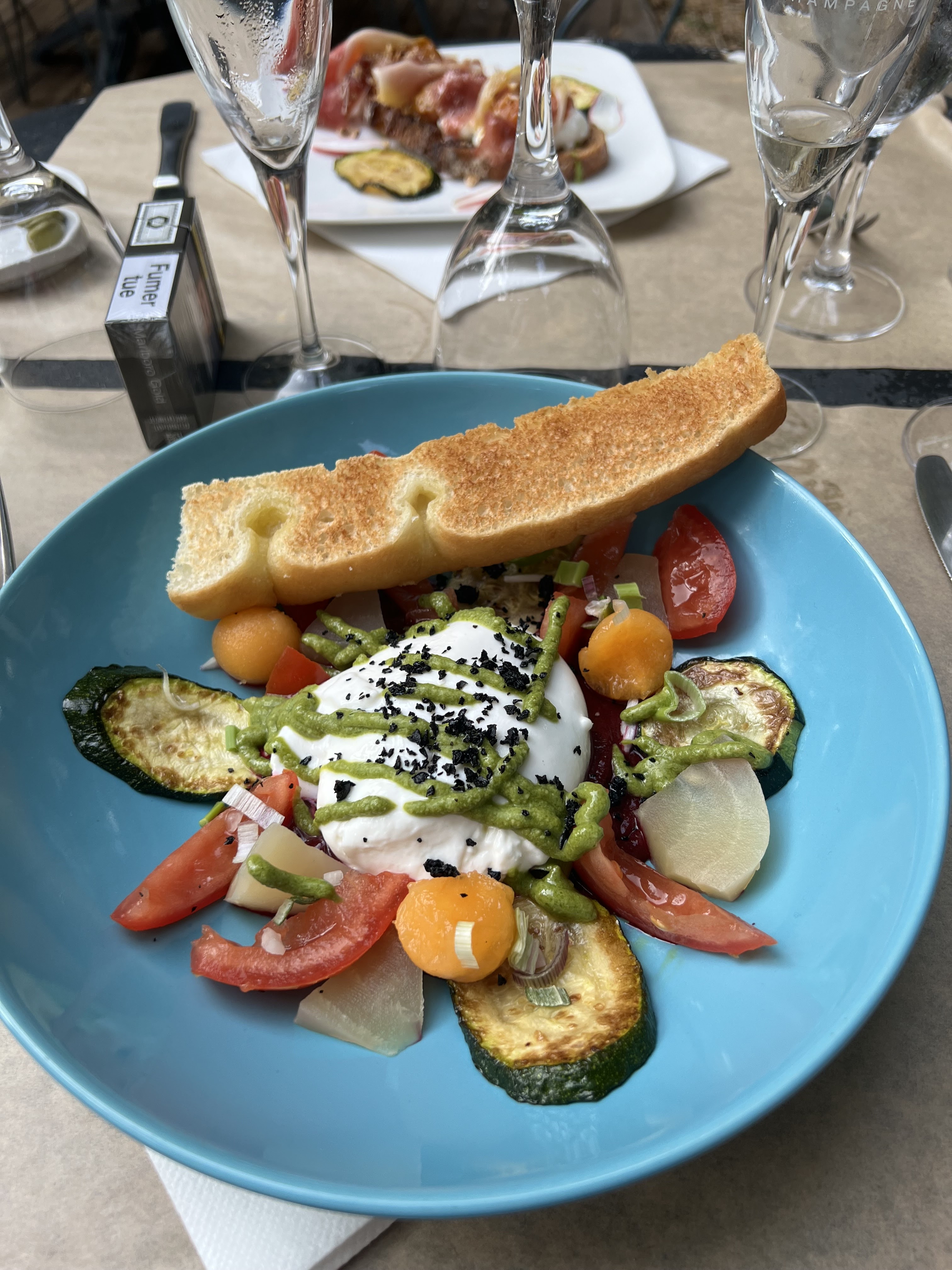 Une cuisine parfaite(oeuf mollet jambon truffe+burrata courgette,tomate, betterave..un délice) le tout dans un cadre magnifique, au calme.. service de qualité et bon rapport qualité prix. Merci merci