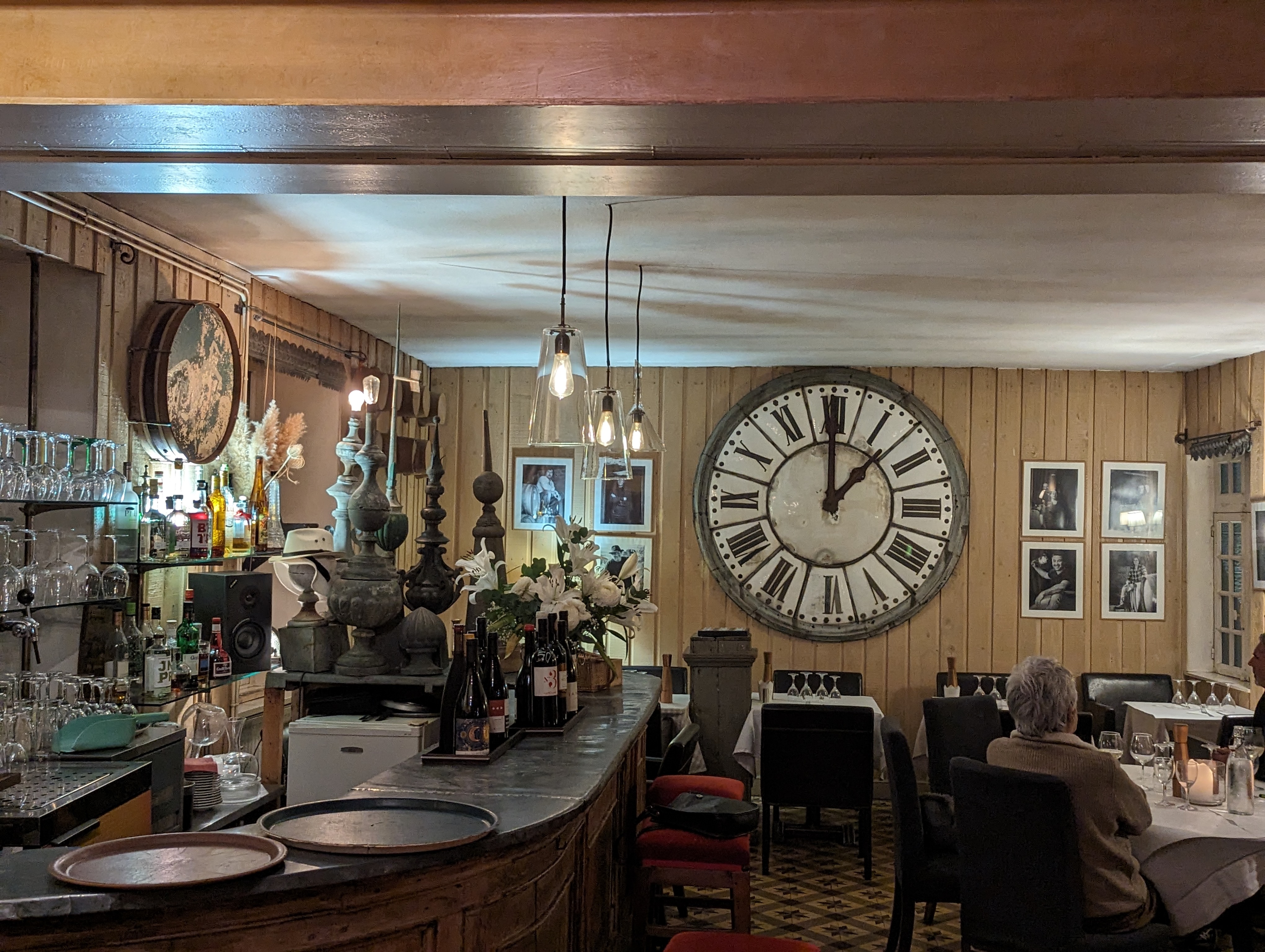 J'ai reçu un bon article dans le Telegraph qui semble se traduire par des critiques non critiques sur Google et Trippie parmi les visiteurs anglais. L'endroit est à l'écart et était calme au début, mais il s'est progressivement rempli. Vous êtes assis dans une sorte de jardin / cour - risquant d'être mangé lorsque les moustiques sont sortis, l'un de nous a été piqué à plusieurs reprises. Les entrées que nous avions étaient bonnes mais chères, saumon et thon. Le plat de veau était terne, mais comestible. Le cassoulet était tout simplement ennuyeux (c'est un plat ennuyeux partout, impossible d'y échapper, je n'aurais pas dû le commander). Les bouteilles de vin de 50 cl étaient une bonne option. Si j’avais une chronique dans un journal national, pourrais-je manger gratuitement ?