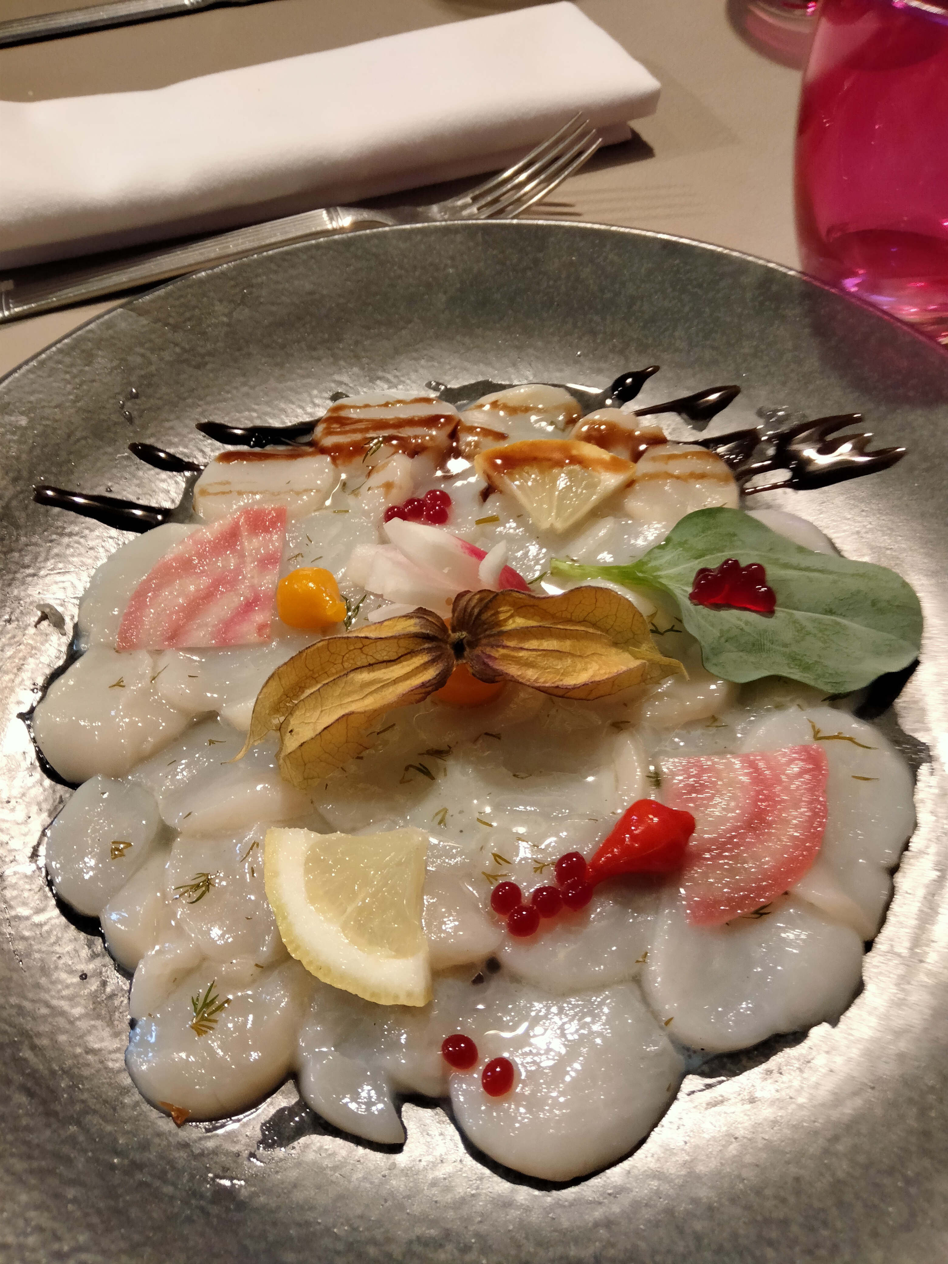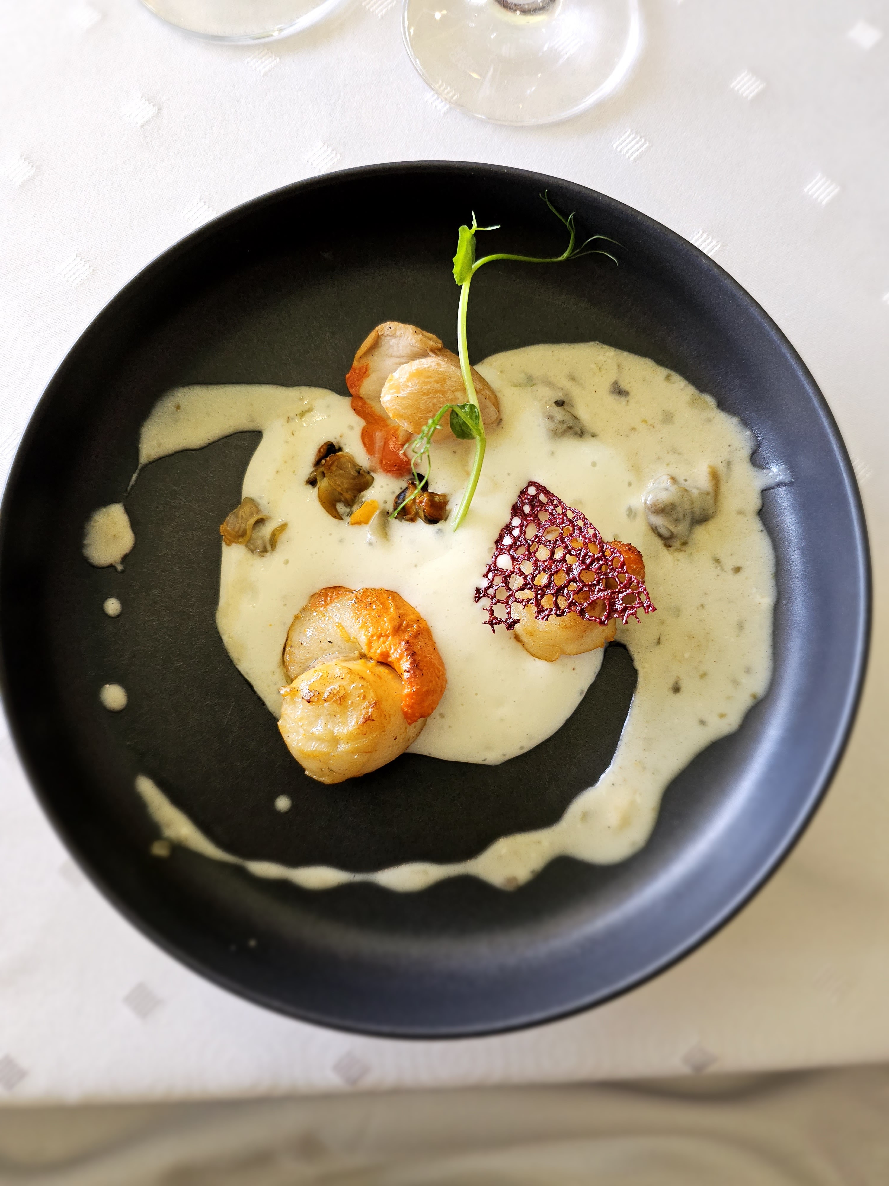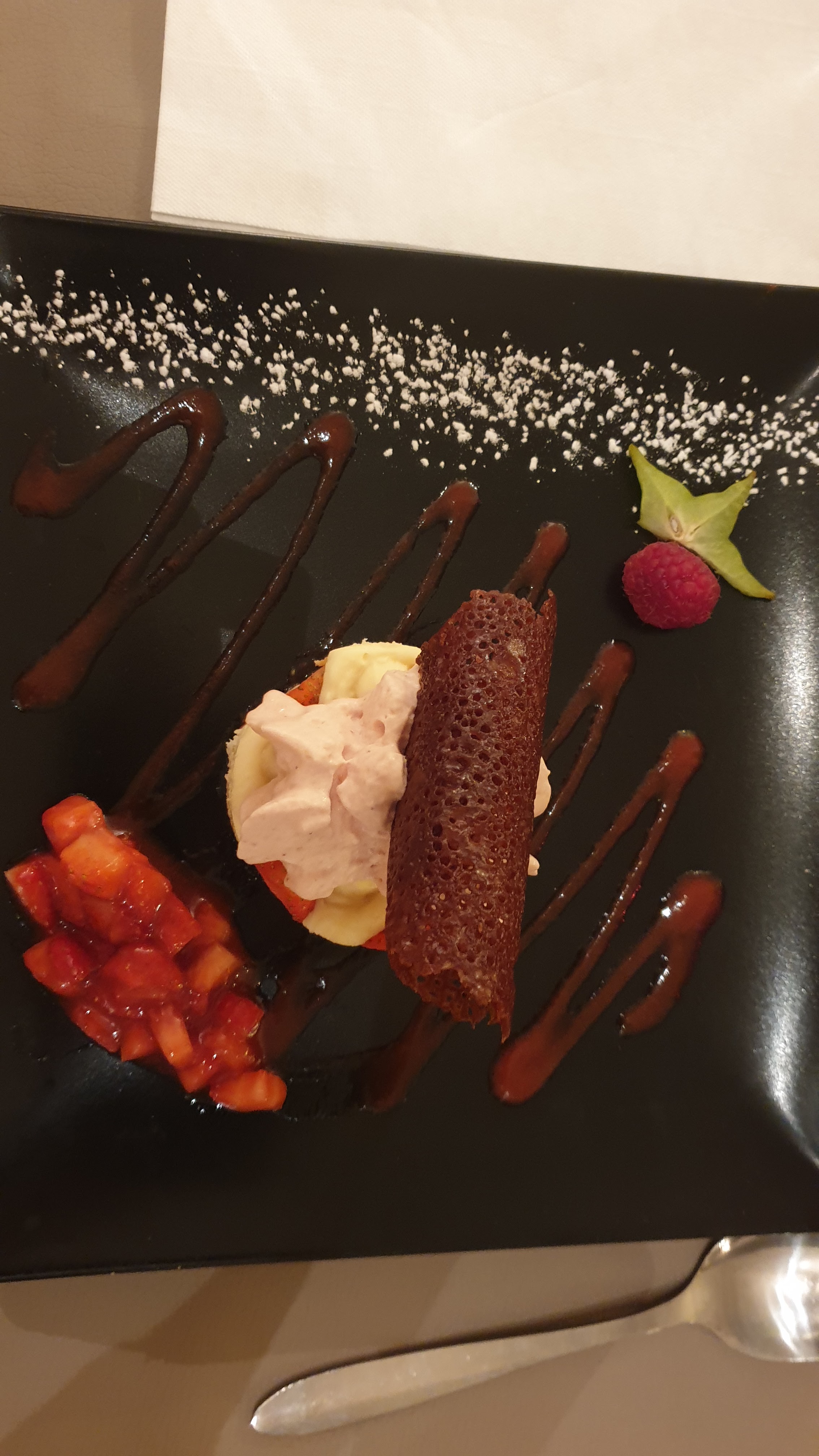 nous avons été surpris par la qualité des prestations .: plats riches en goût, comme le carpaccio de Saint-Jacques aux fruits de la passion, exceptionnel! Peut-être faut-il demander un assaisonnement plus fin pour certains plats, mais dans l'ensemble nous recommandons cette adresse.