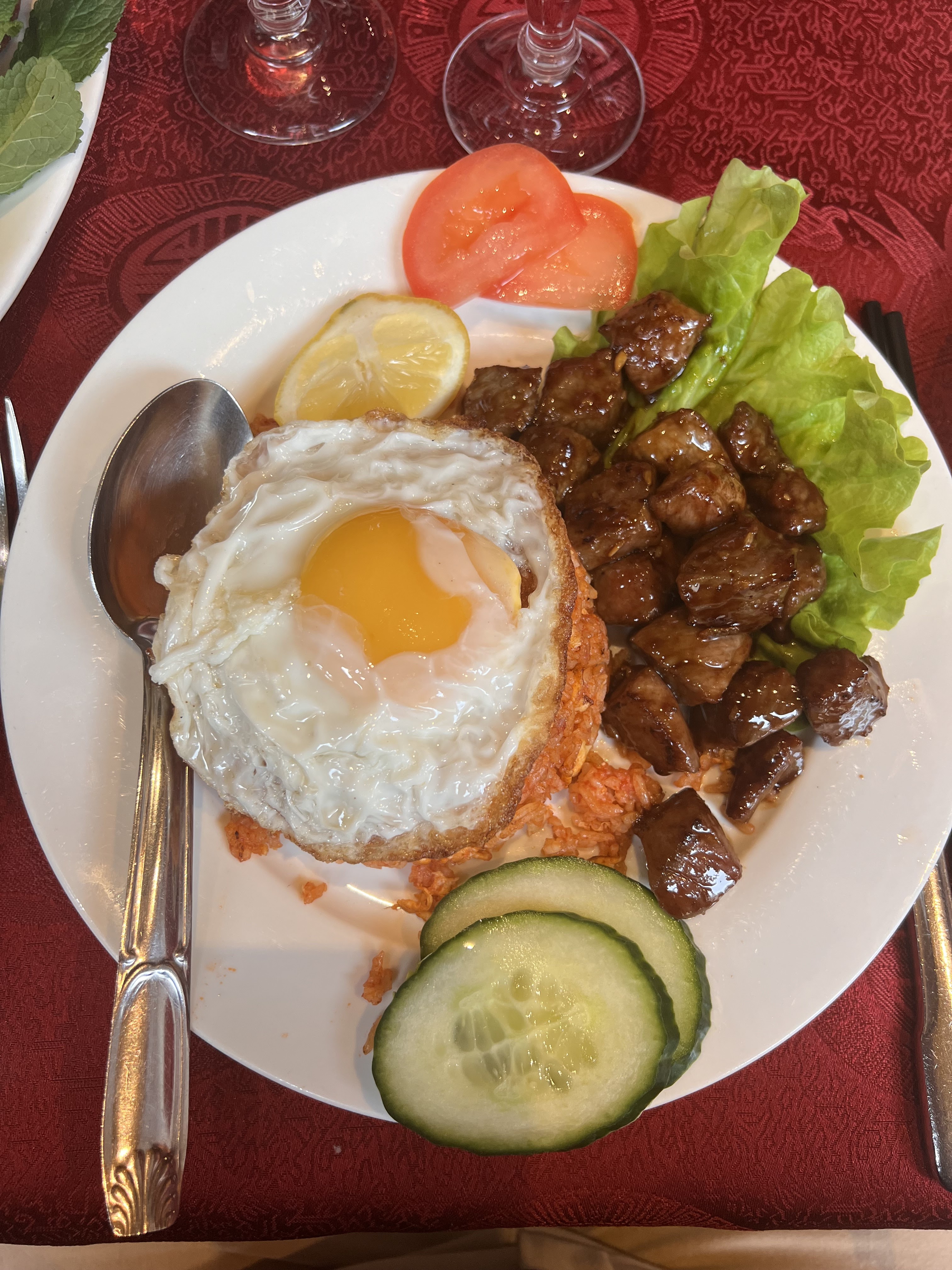 Les nouilles sont délicieuses, ainsi que le loc lac. Je ne vous recommanderais pas les soupes. Il y a mieux ailleurs. sinon la dame est très gentille. Nous avons eu un bon rapport qualité prix