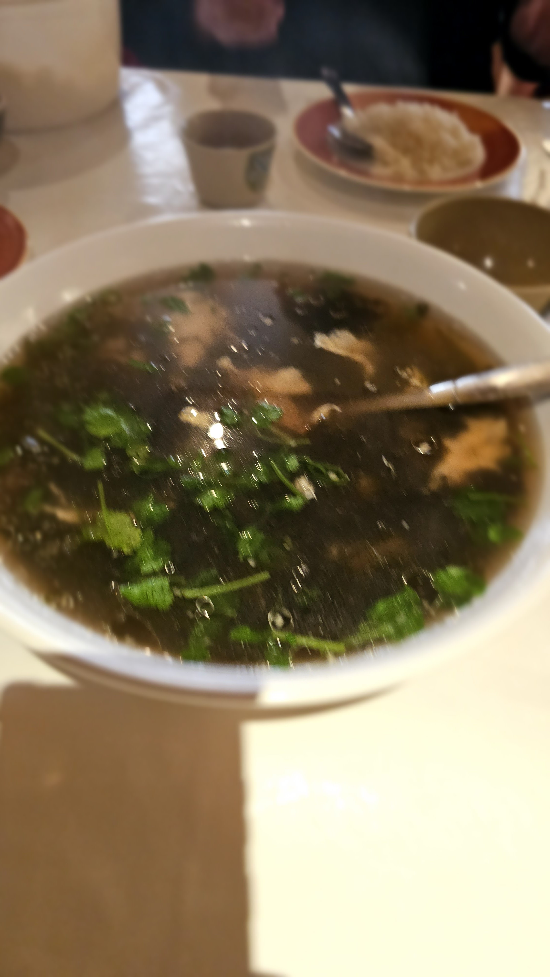Nous sommes allés commander des plats à emporter car nous avons lu que ce n'était pas mal. Nous avons commandé 3 soupes, une au poulet avec des nouilles, une autre au crabe aux asperges et une autre Pékin épicée. Quand ils m'ont donné le sac que je ne voulais pas regarder, nous l'avons ramené à la maison et l'avons ouvert. Terrible erreur. Quand nous l'avons ouvert, nous avons vu ce qu'ils nous avaient donné. Portions extrêmement médiocres. Seule celle des pâtes semblait plus grosse mais elle avait un bouillon très transparent. Quand je les ai essayés, seuls les Pékinois avaient un peu de saveur, rien d'extraordinaire mais ils avaient un goût proche de ce qu'ils devraient. Les deux autres... Bref... La soupe au crabe et aux asperges n'avait qu'un goût d'asperge et était assez médiocre... Il n'y avait pas de crabe... c'était cher. Mais la soupe poulet et nouilles. des nouilles honteuses, littéralement bouillies avec de l'eau claire et de la coriandre. Insipide, fade, aqueux... Plus jamais ça. Et en plus, ce n’est pas comme s’ils étaient les plus agréables.