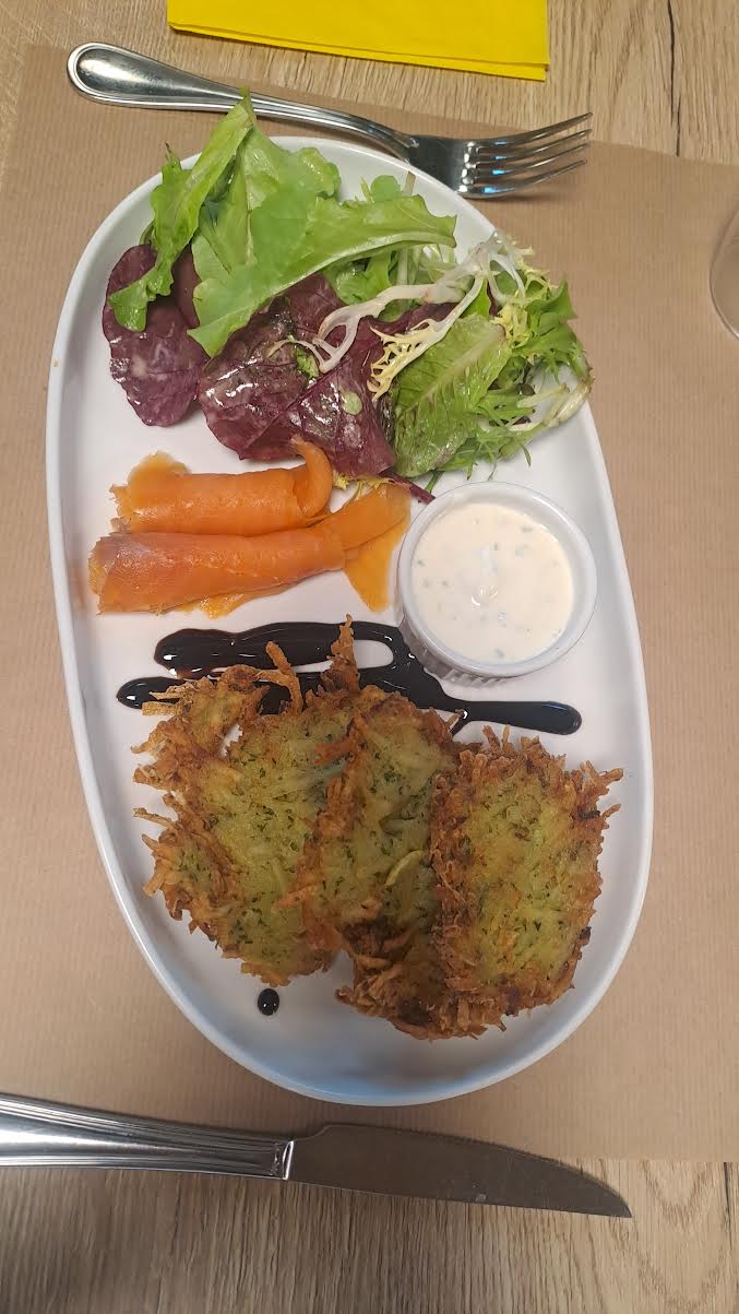 restaurent au top. C'est super de pouvoir regardé les cours tout en buvant un café ou chocolat chaud etc. Plat que recommandée grumbeerekiechles truite fumé.
