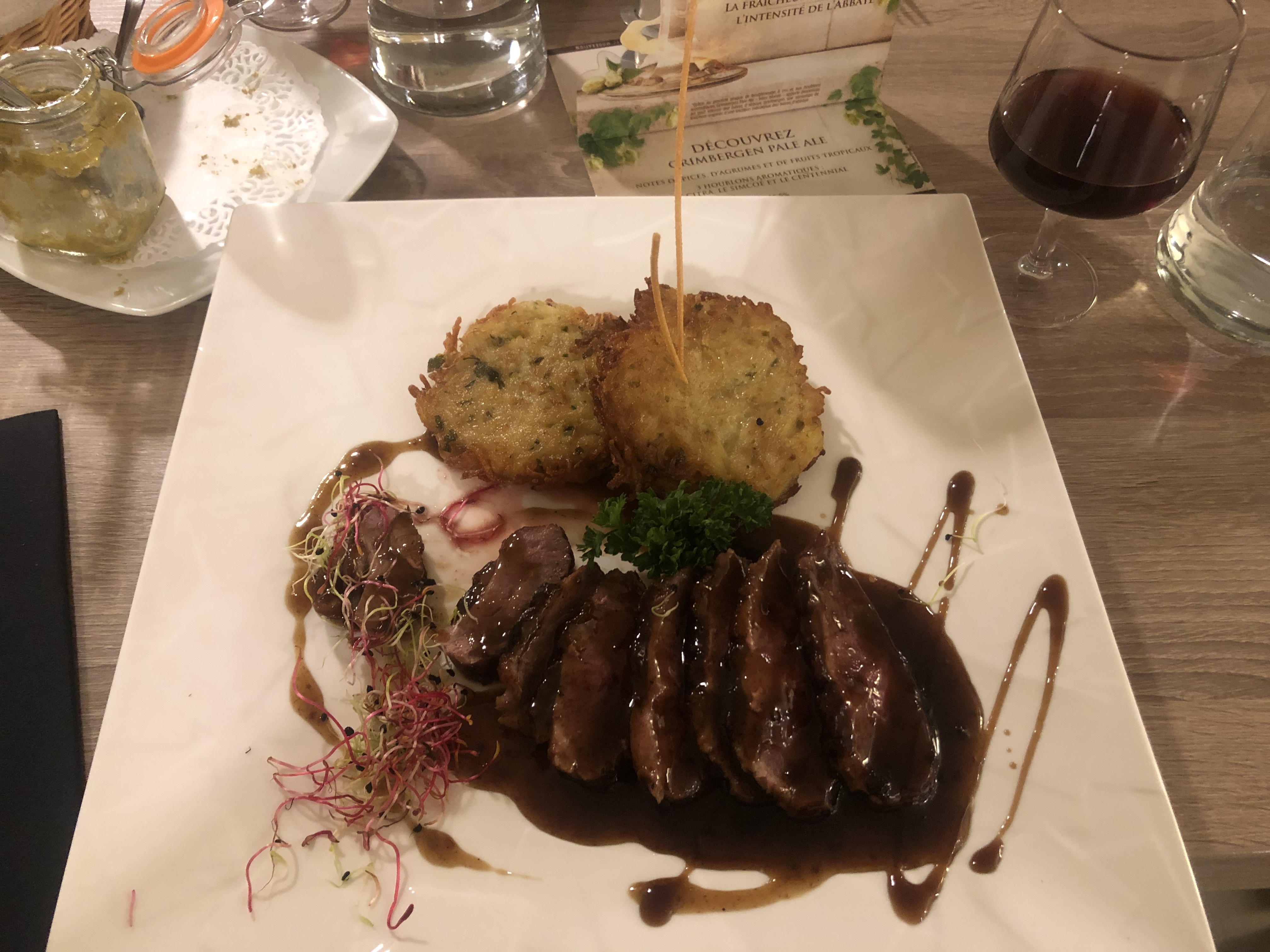 Délicieux. Il y avait un canard avec une sauce au miel et au vin rouge.