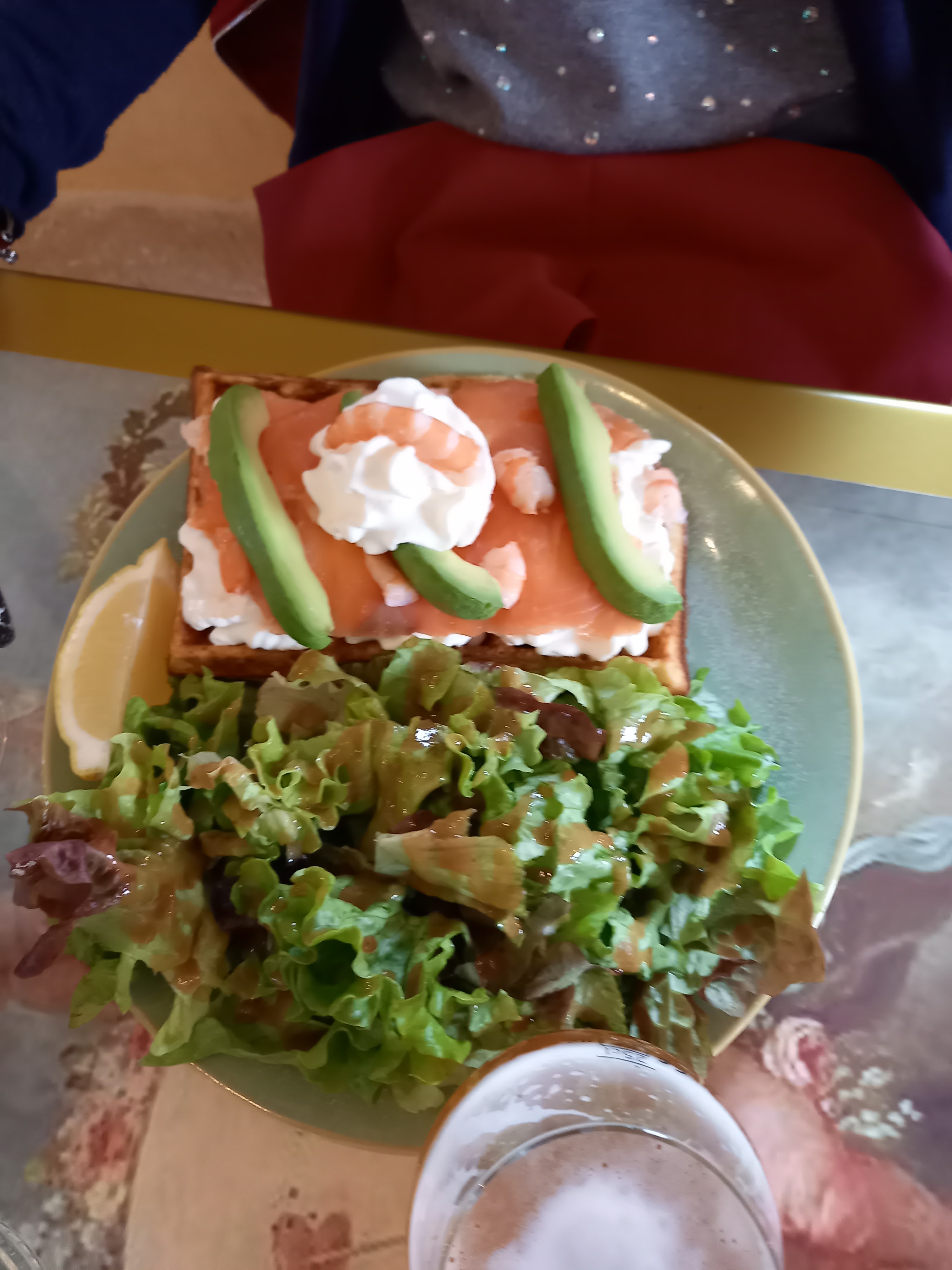 Restaurant joli et accueillant Le personnel est souriant et agréable. Les gauffres salées sont bonnes et le service a été rapide. Petit bémol sur le dessert, pour le moelleux chocolat servi avec une boule de glace : la présentation dans un grand verre n'était pas super. Tout était mélangé et j'aurais plus apprécié dans une assiette, avec un ''vrai'' moelleux car celui-ci était tout juste cuit. Dans l'ensemble j'ai fait un bon repas