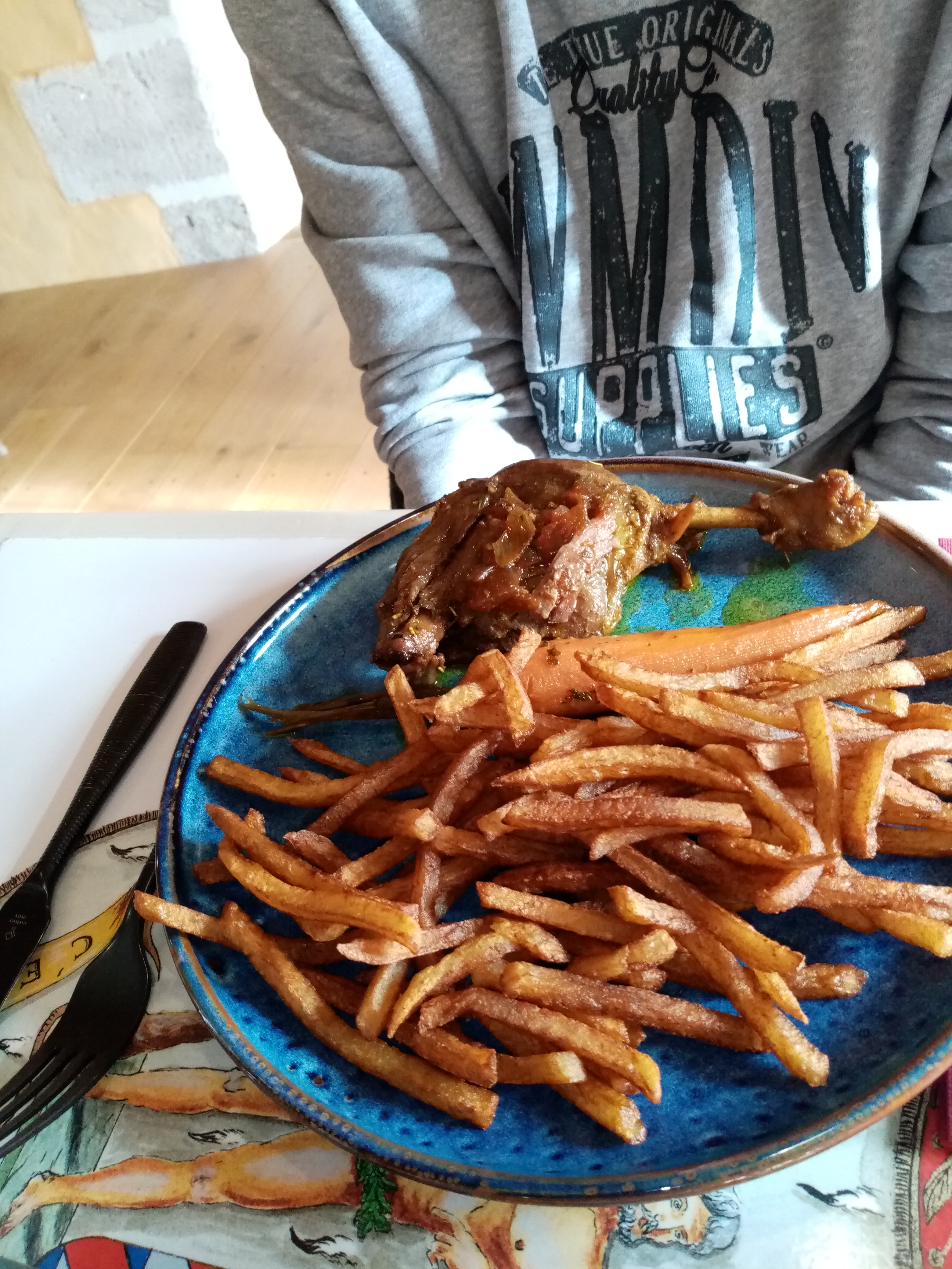 Bonne adresse. Concernant la nourriture, rien a redire ; la carte est simple : des salades, des grillades, des gaufres et un plat du jour (12,5 euros pour un Site l'y laisse - pâtes et carottes). Simple et bon (cuit à la cheminée) La carte des vins est correcte et le serveur est en mesure de vous conseiller. Le cadre est super, en bord d'eau et en face du château avec un parking mitoyen. Je met seulement 4 étoiles car le service a été un peu délicat ; le serveur a oublié l'entrée, a amené la mauvaise garniture et oublié le verre de vin ; rien de grave mais le genre de petite choses basiques ratées et énervante... En espérant que le staff se forme durant l'été :)