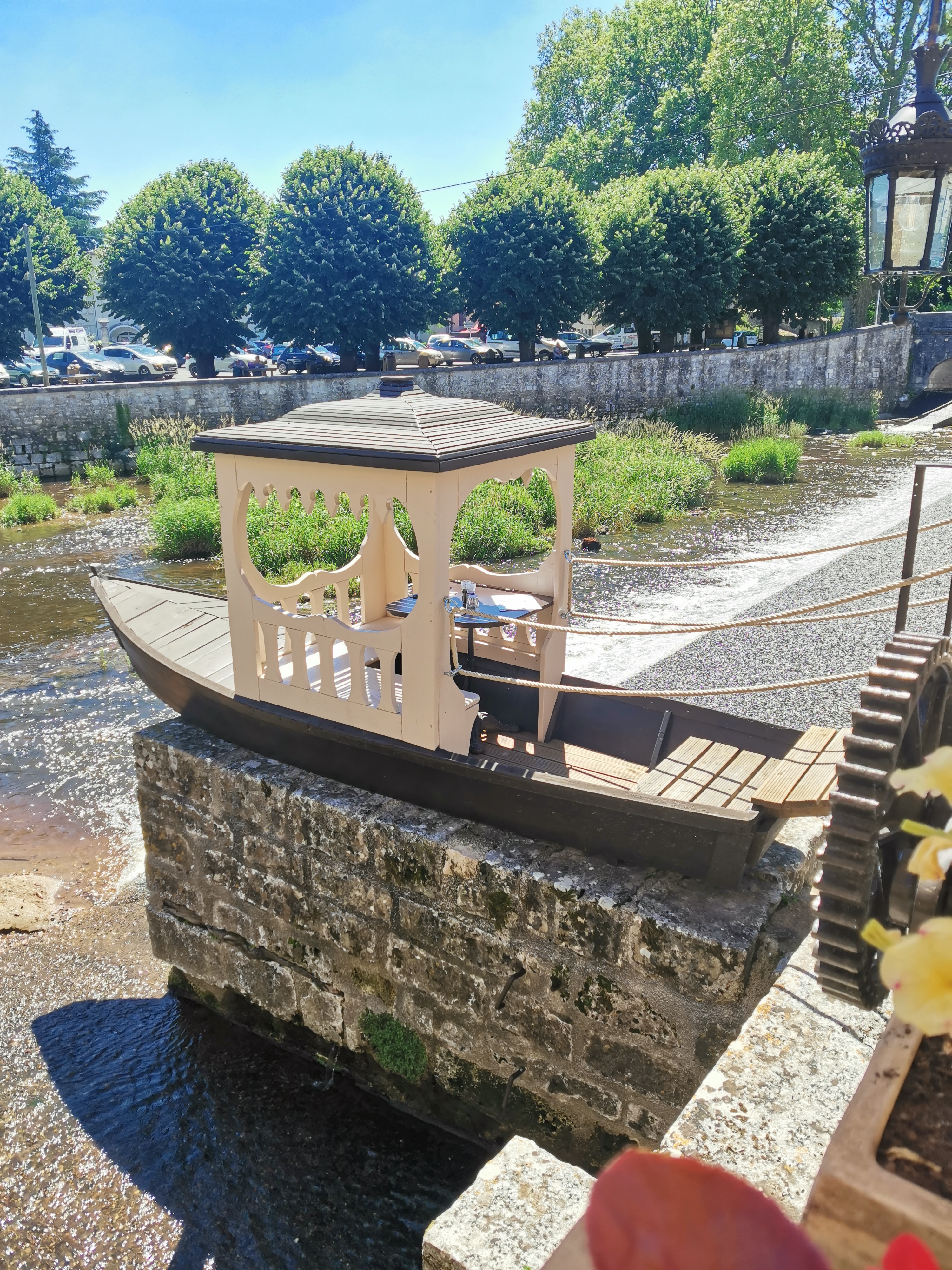 Super dîner entre 2 cousines. Très bon accueil et conditions sanitaires spéciales covid respectées à fond. Ambiance de la terrasse au top le décor le mobilier tout est bien pensé et très bien mis en valeur dans ce cadre idéal au pieds du château de la Rochefoucauld. Quand aux assiettes belle découverte des gaufres salées. Plat original qui sort des déjà vues et en plus copieux et très goûteux. Choix de vins au verres . Peut-être proposer un pichet de 50cl ou 1/2 Bouteille serait bien pour les gens qui boivent peu. Quant à l'intérieur de l'établissement une belle découverte après une longue rénovation des lieux. Bravo l'endroit est superbe je reviendrai probablement essayer la petite table barque suspendue au fil de l'eau.. Catherine