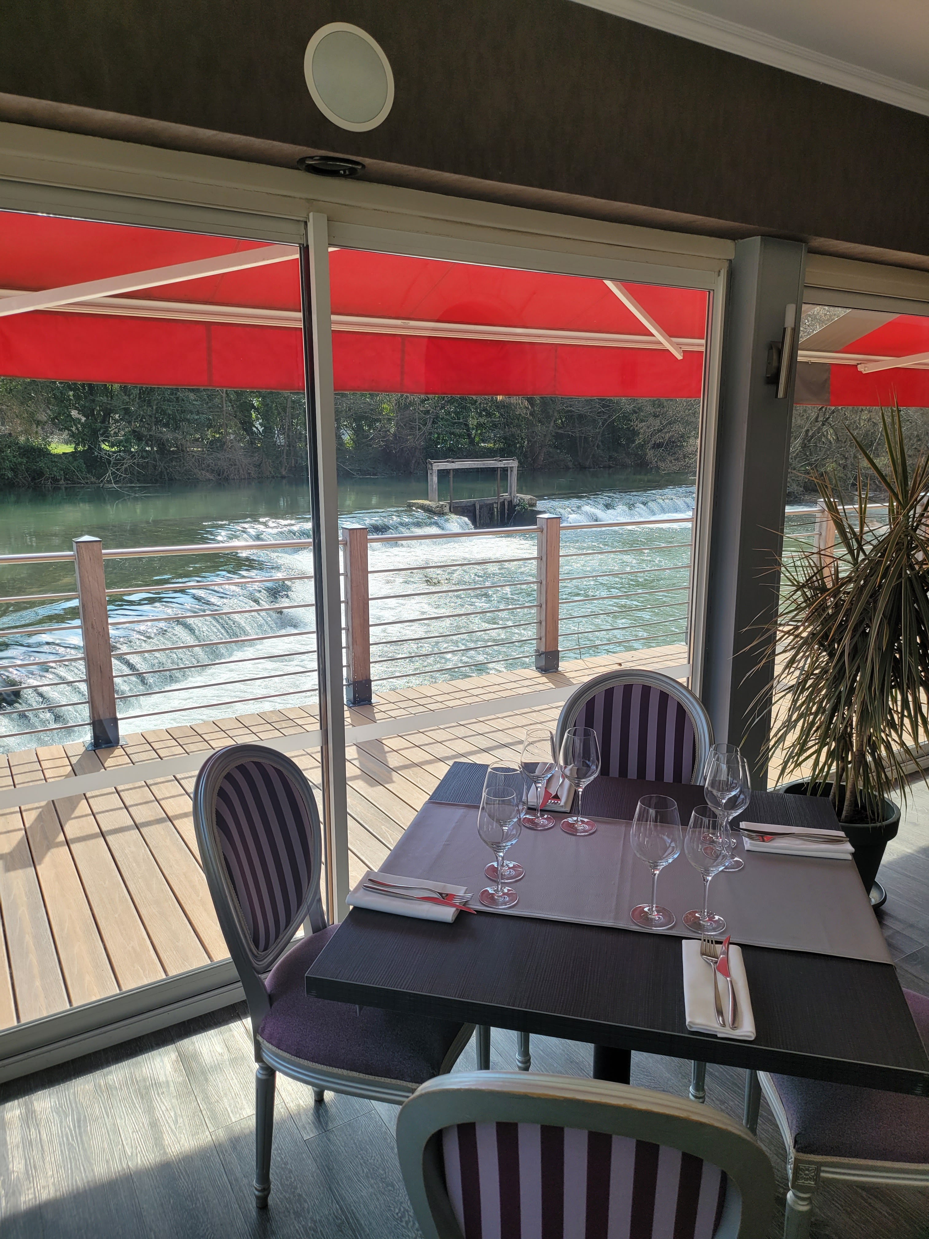 Ce restaurant situé en bord de rivière est un véritable havre de paix idéal pour un repas en famille. Il propose une belle terrasse et, même en intérieur, des tables avec une très belle vue sur l'eau. La cuisine est de très bonne qualité et le service irréprochable. Possibilité d'avoir une chaise haute pour bébé. C'est une très bonne adresse chaleureuse que je recommande.
