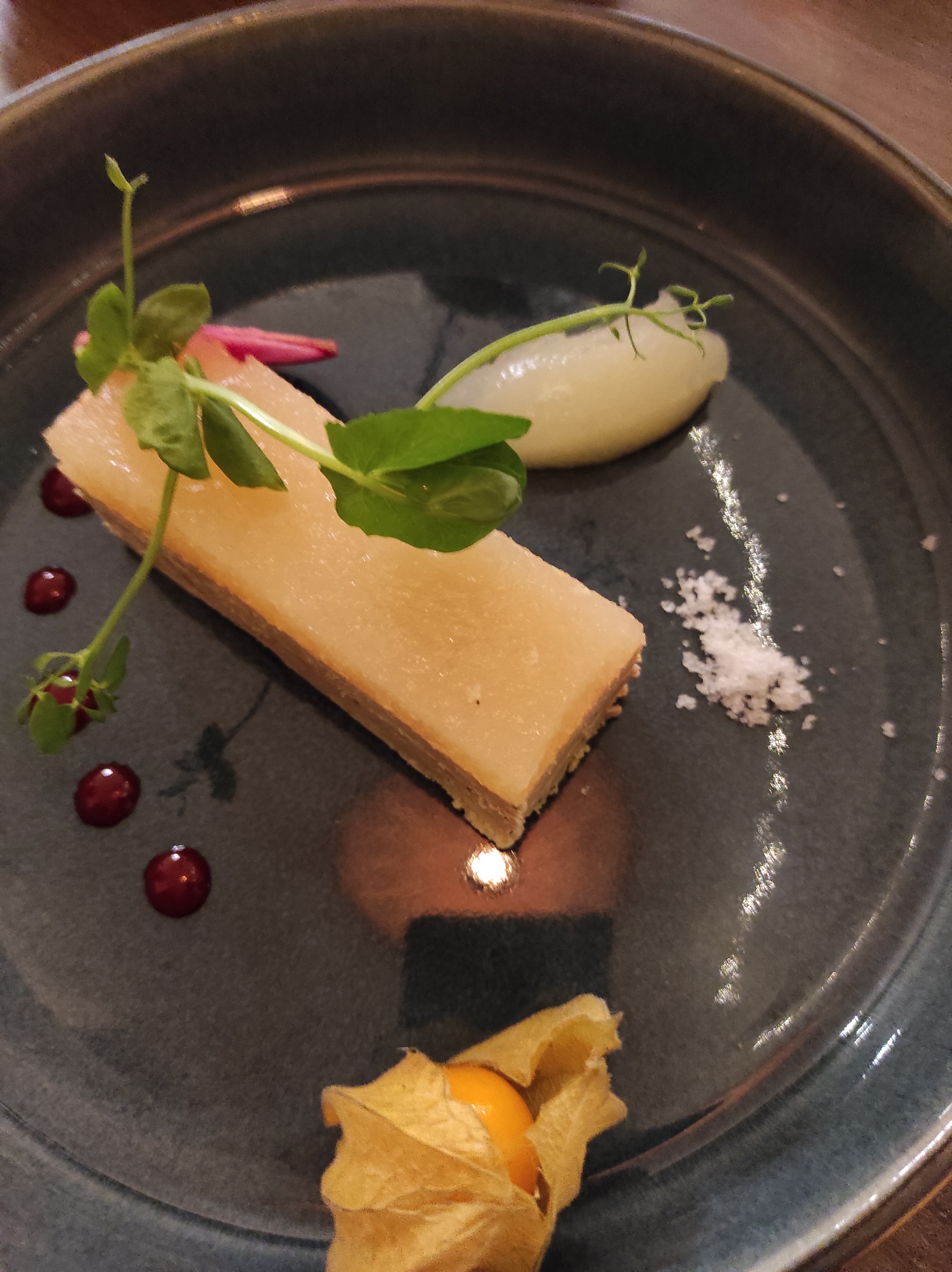L'entrée de foie gras était délicieuse bien que j'aurais préféré des brioches d'accompagnement un peu plus toastés. Mon compagnon a pris des St Jacques sur risotto que j'ai goûtées, également délicieuces. En revanche, j'ai pris du cerf aux petits légumes, le cerf était tendre mais très grosse déception sur la sauce. Je l'ai trouvée vraiment désagréable. J'ai l'habitude de réaliser des sauces grand veneur, je ne sais pas ce qu'était cette sauce, mais vraiment PAS bonne, je ne me suis pas du tout régalée.