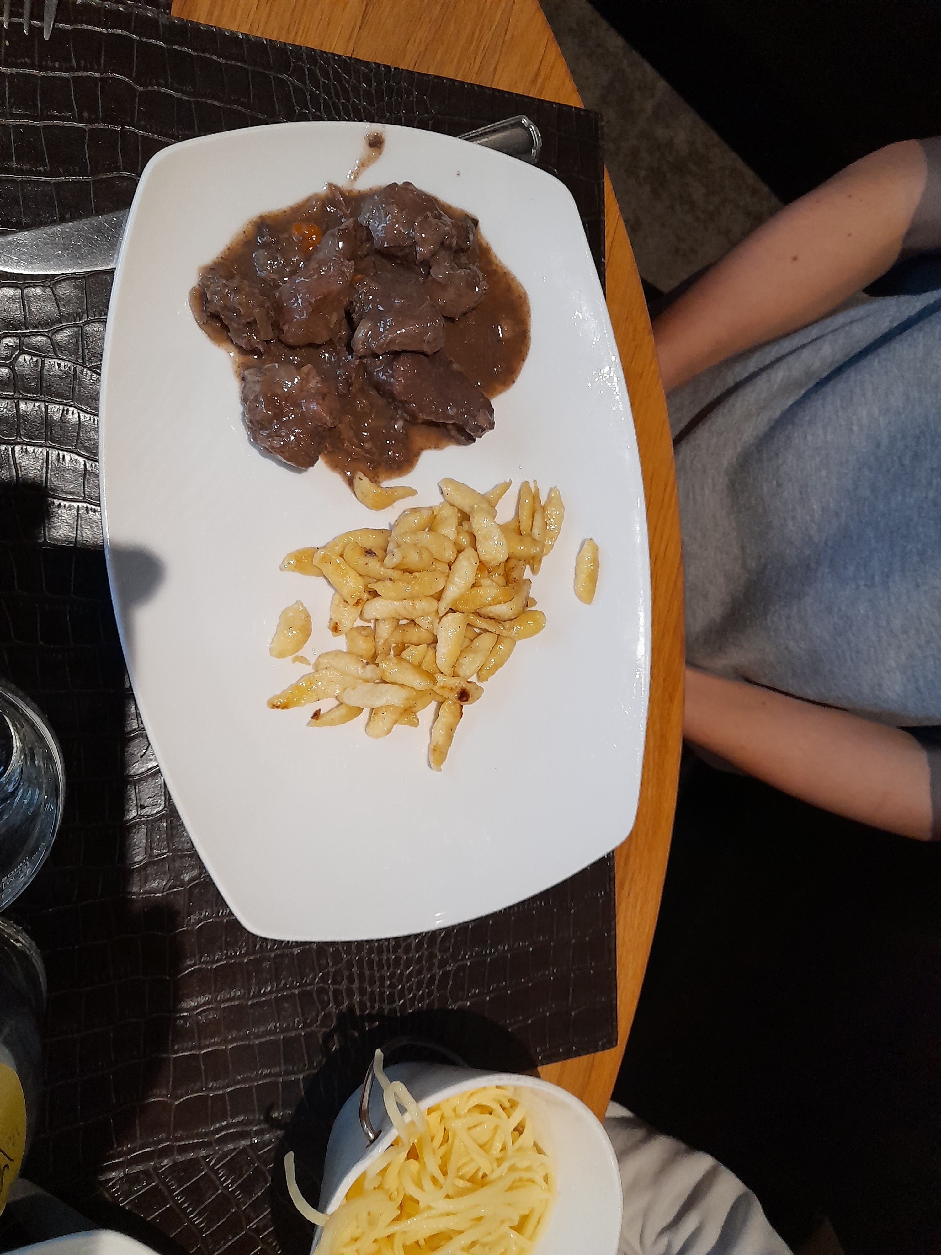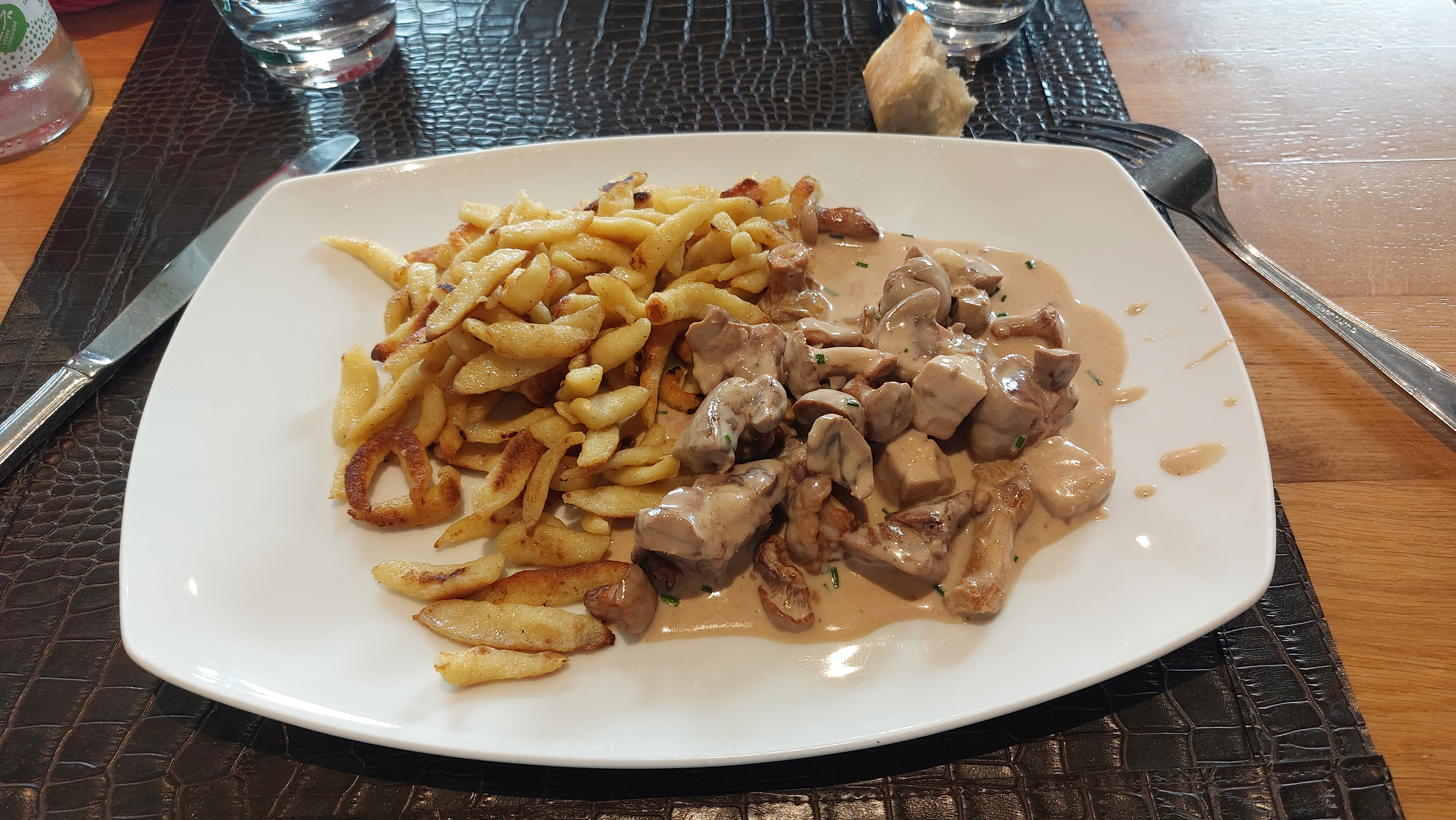 Très bon accueil malgré notre arrivée tardive. Spätzles excellentes