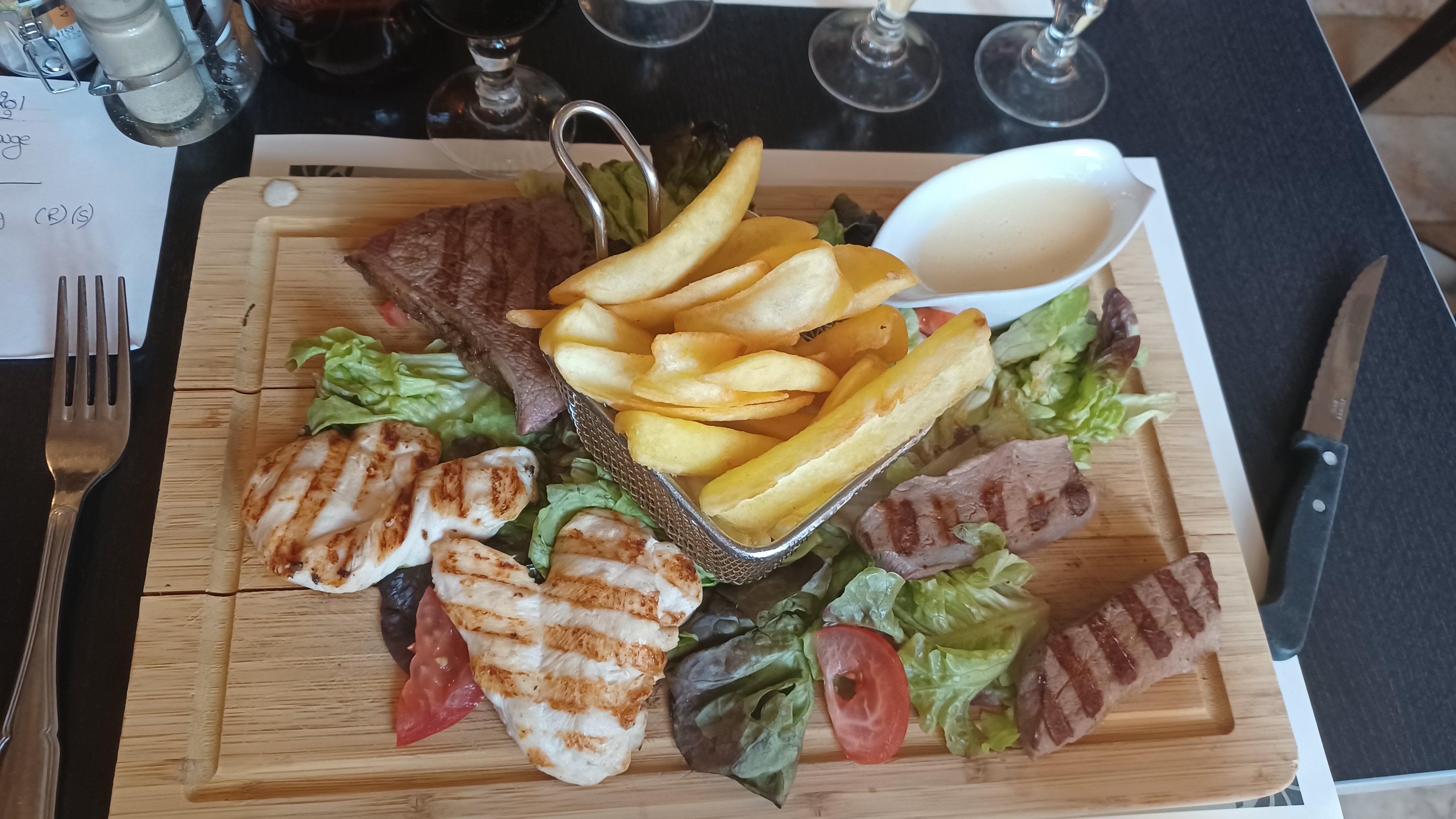 Galette steak frites sauce poivre une tuerie. Pour le service elles sont adorables