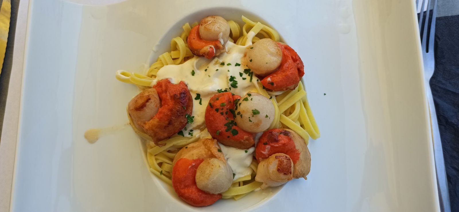 Toujours très bon. Tagliatelles aux saints jacques extra. Cadre et personnel Sympa .
