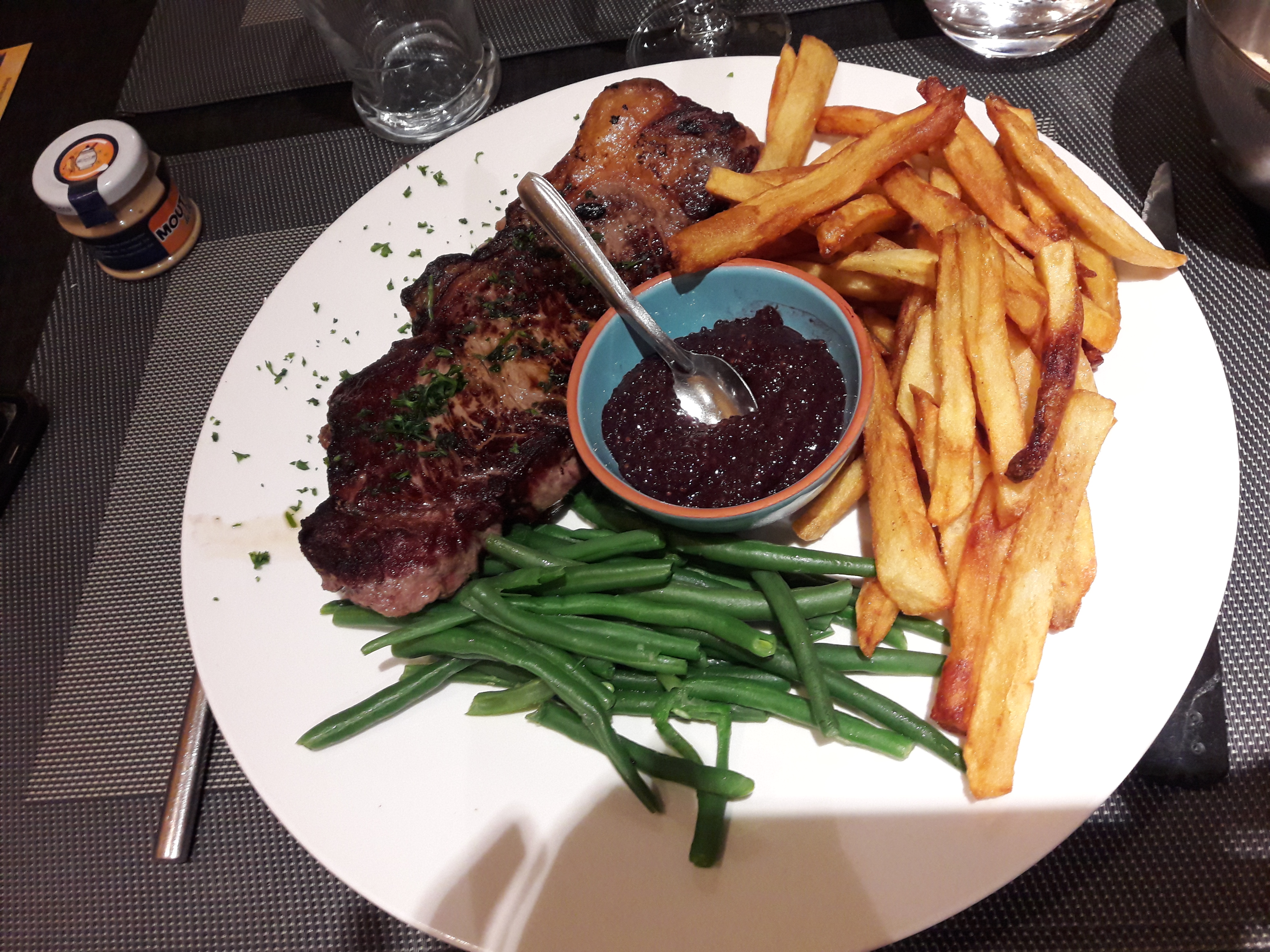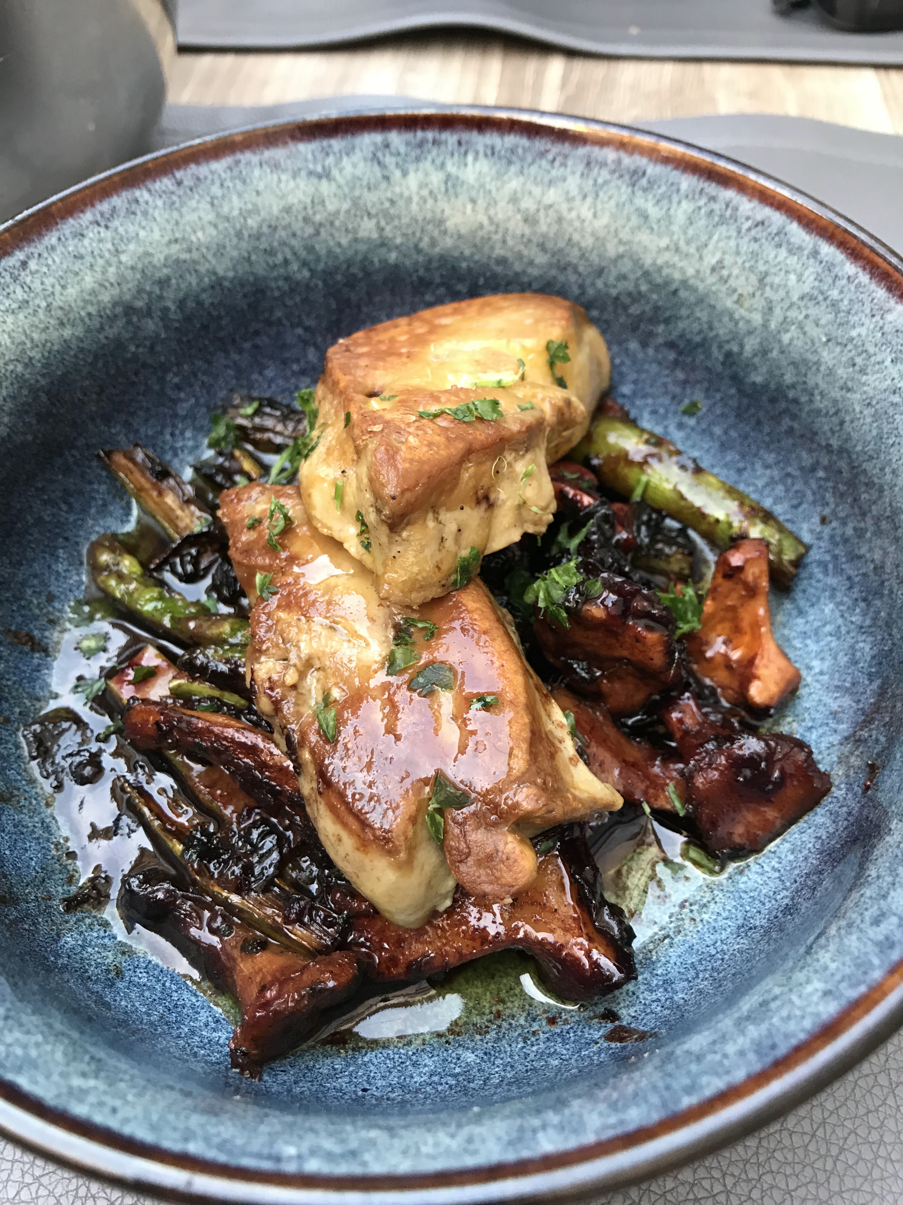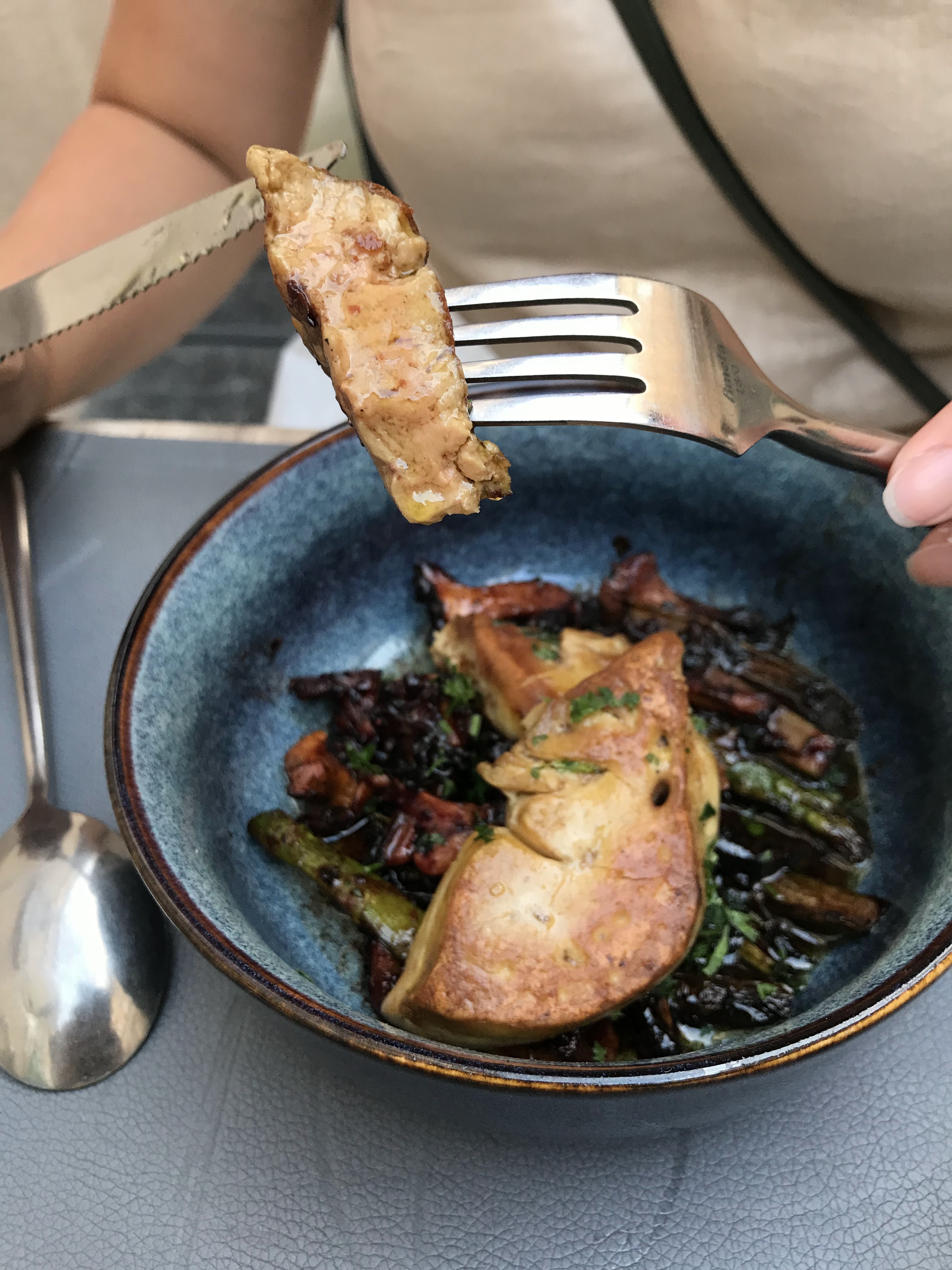 Steak européen vieilli 100 jours ! C’est tendre et le chef sait griller un steak ! L'entrée Foiegras était incroyable et le magret de canard était rose à l'intérieur et avec une peau de croûte croustillante. La façon dont j'aime à 100% la façon dont cela doit être fait ! Et si votre accompagnement contenait des champignons, vous avez de la chance, ils avaient l’air brûlés mais en fait c’est parfait. Je me demande si je faisais toujours des erreurs à la maison ?