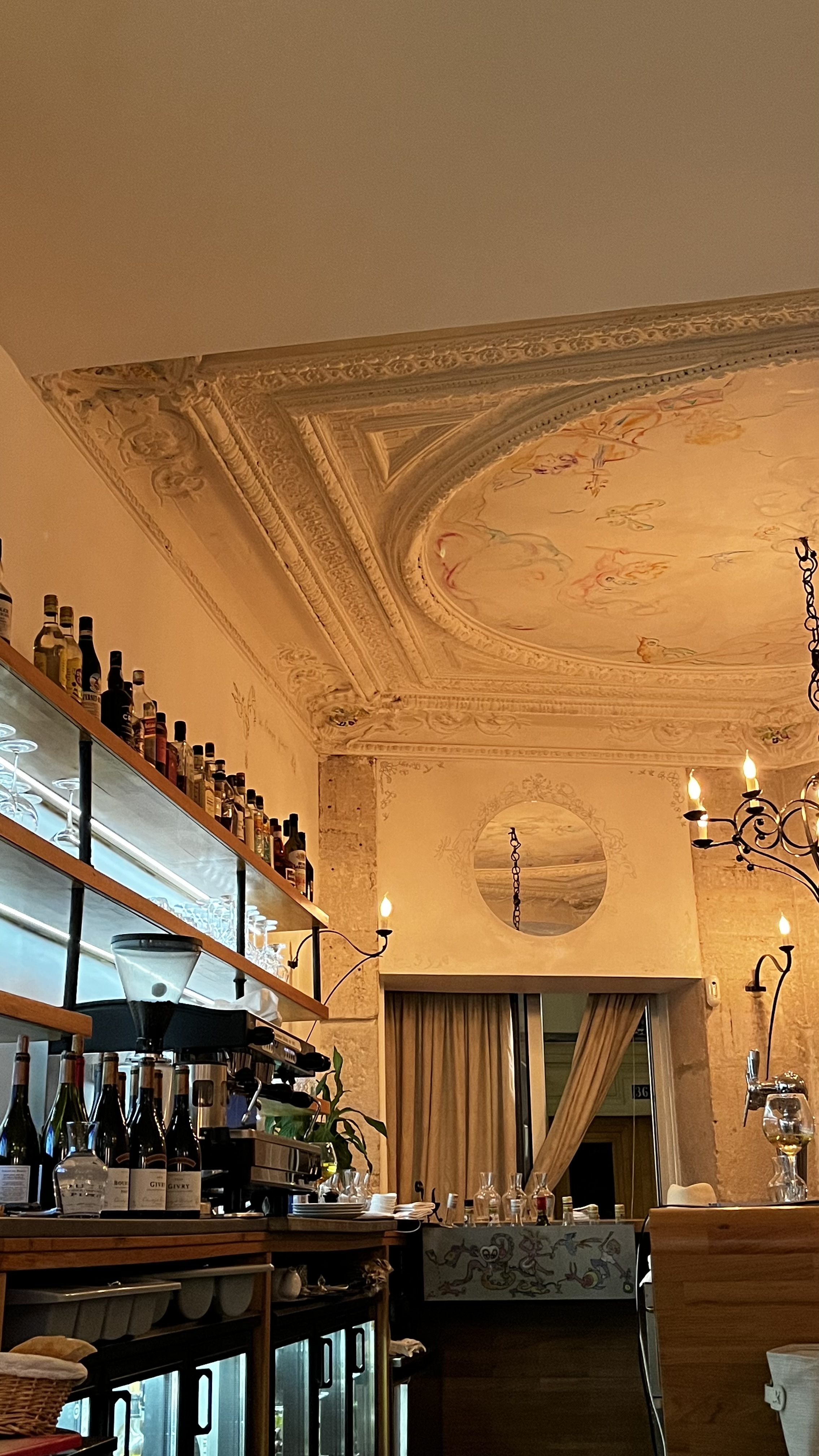 Un plaisir absolu de dîner ici ! Ma sœur et moi avons apprécié un service chaleureux et personnalisé, un excellent vin et un bon repas. Nous avons hâte de revenir lors de notre prochain voyage à Paris. En entrée, nous avons eu l'œuf poché aux champignons, qui était délicieux, et la soupe de lentilles au gingembre, qui était délicate et tellement savoureuse. Au dîner, la sole et le risotto aux fruits de mer, tous deux excellents, et le duo de chocolat en dessert. La décoration est charmante, avec des murs et des plafonds peints à la main, et le propriétaire nous a traités comme des membres de la famille. Nous avons passé un merveilleux séjour!