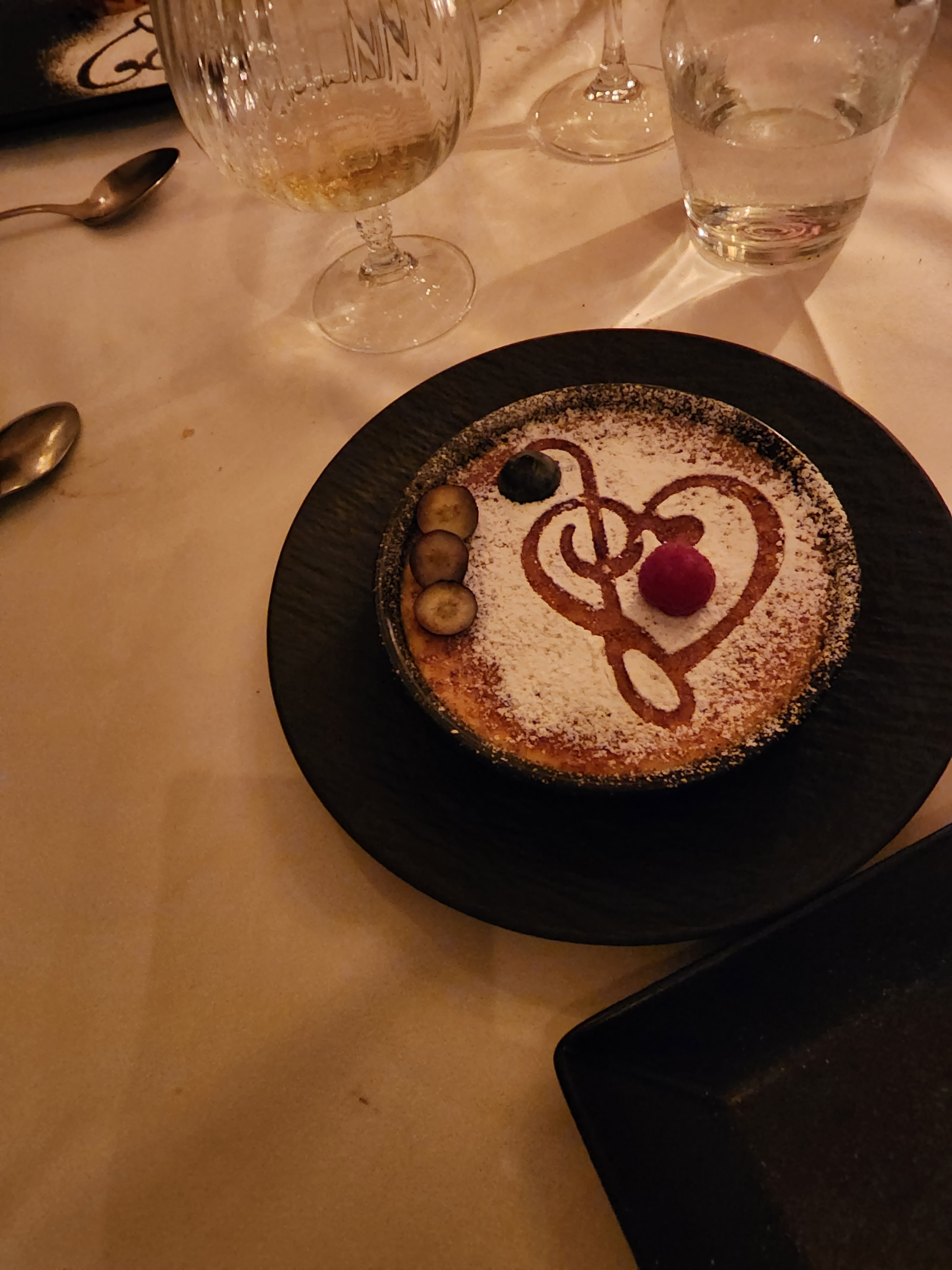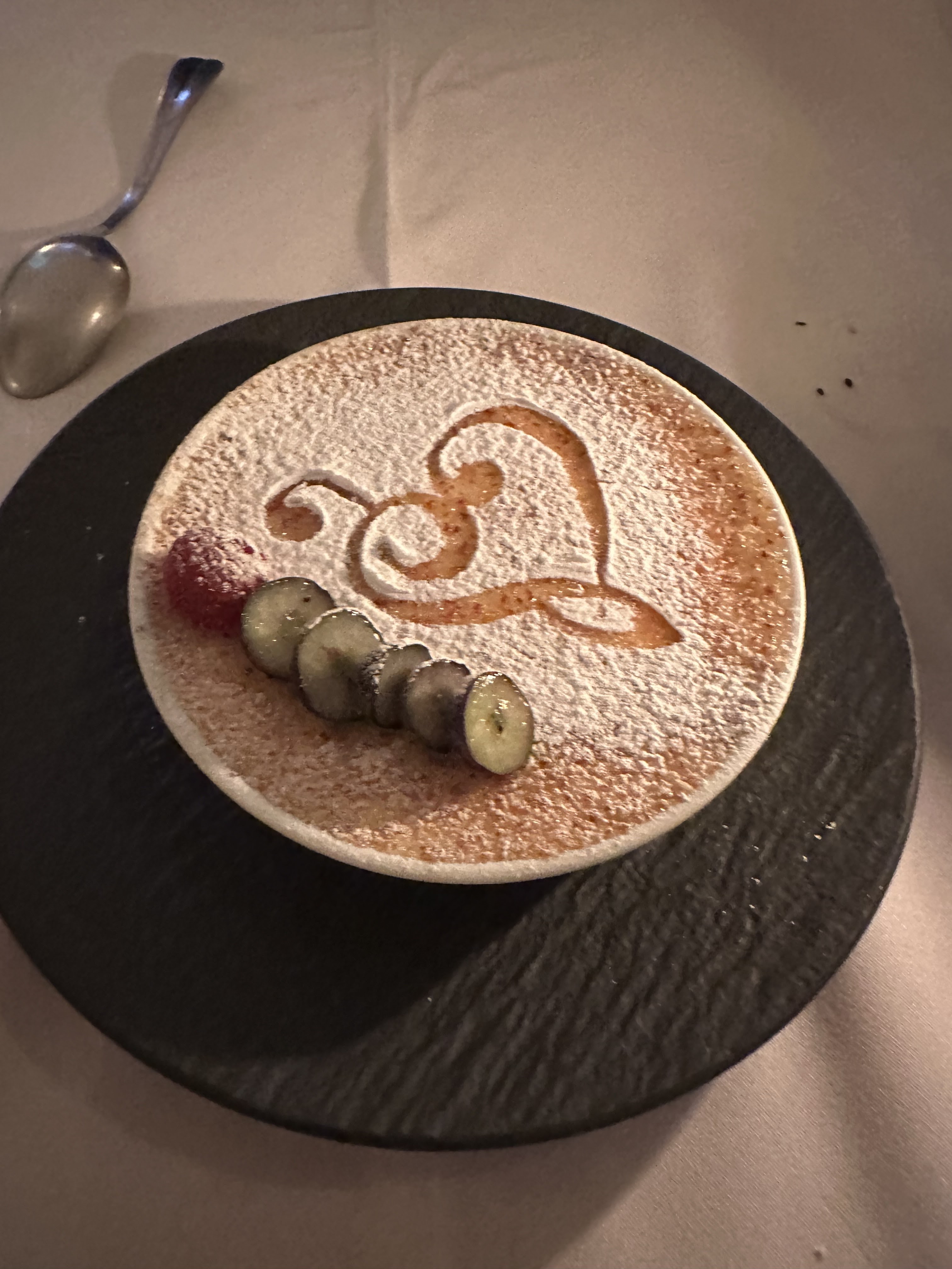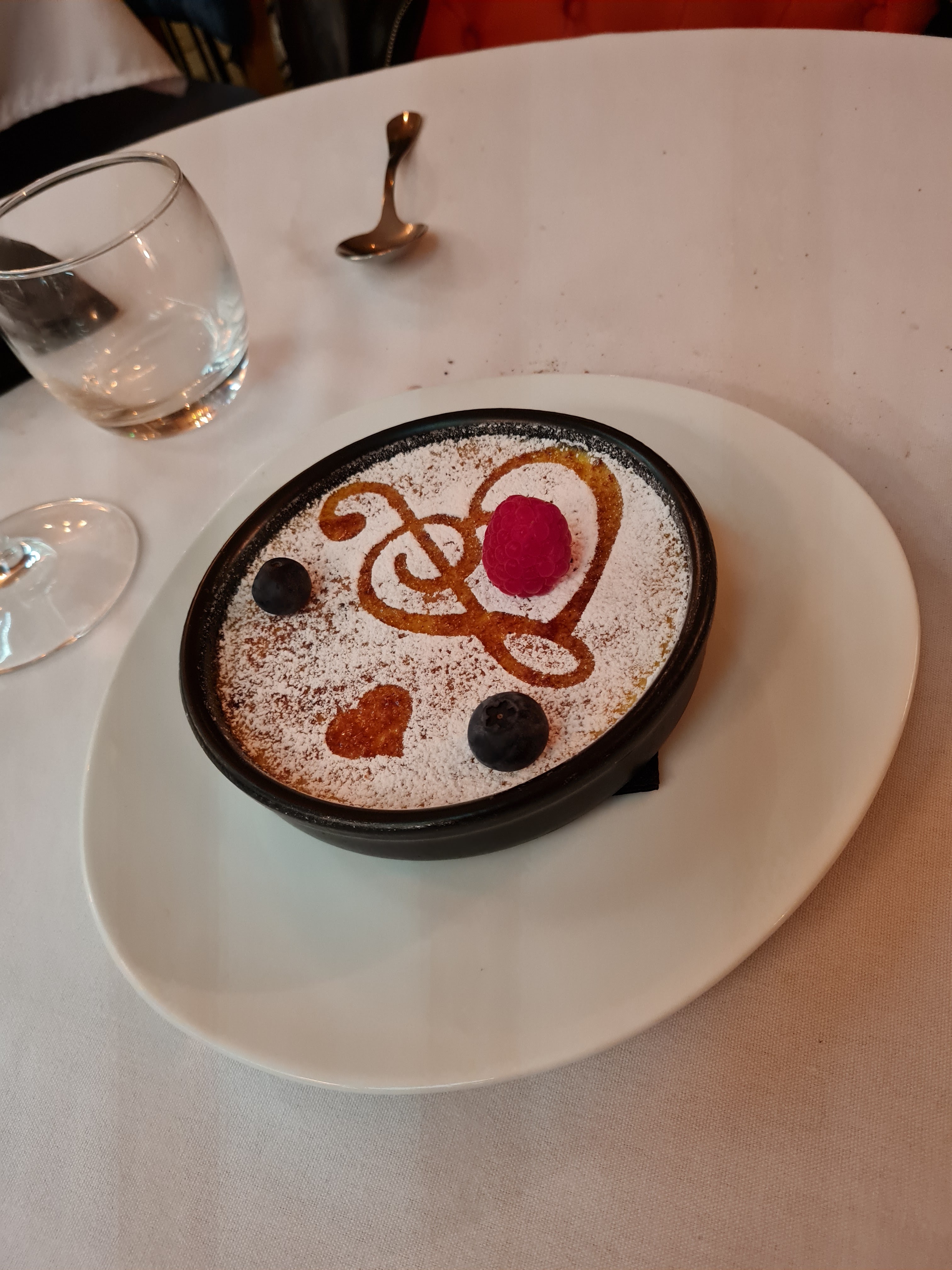 La dernière bouchée prise je suis obligé de noter que ce restaurant à tout pour être l'incontournable du dîner en amoureux. Ambiance tamisée et cosy, décoration choisie et digne d'intérêt, musique calme, mets de qualité, très bonne carte des vins. Bien sûr le service est à la hauteur de tout cela. De très bons conseils, une serviabilité une amabilité qui se perd. Je ne mâche certes pas mes mots, mais il est assez rare de trouver une telle qualité pour un tel buget. Pour les princes et princesses, pour une trentaine d'euros vous vois sentirez comme tel ici, sans pour autant trop de fioritures. Un gros merci !