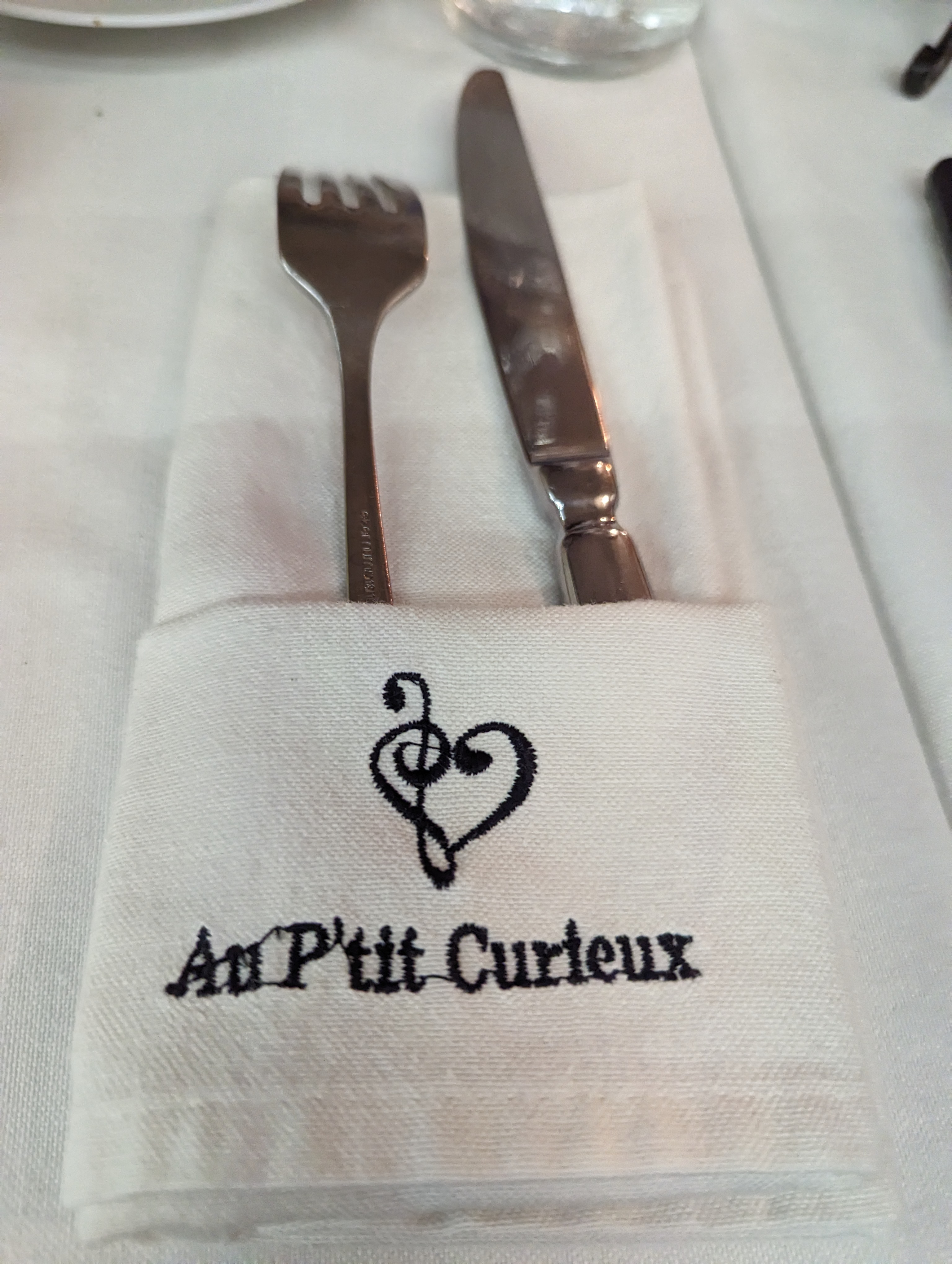 Accord parfait Dîner hier au P ‘tit Curieux, un restaurant découvert avec grand bonheur et auquel j’attribuerais bien les étoiles que le Guide Michelin a omis de lui accorder. Décor à la Chagall, inspiré et poétique, accueil charmant, service au top, plats délicieux des entrées aux desserts, accord mets vins, tout nous a semblé parfait, nous étions six unanimes. Une adresse intimiste à recommander aux gens qu’on aime.