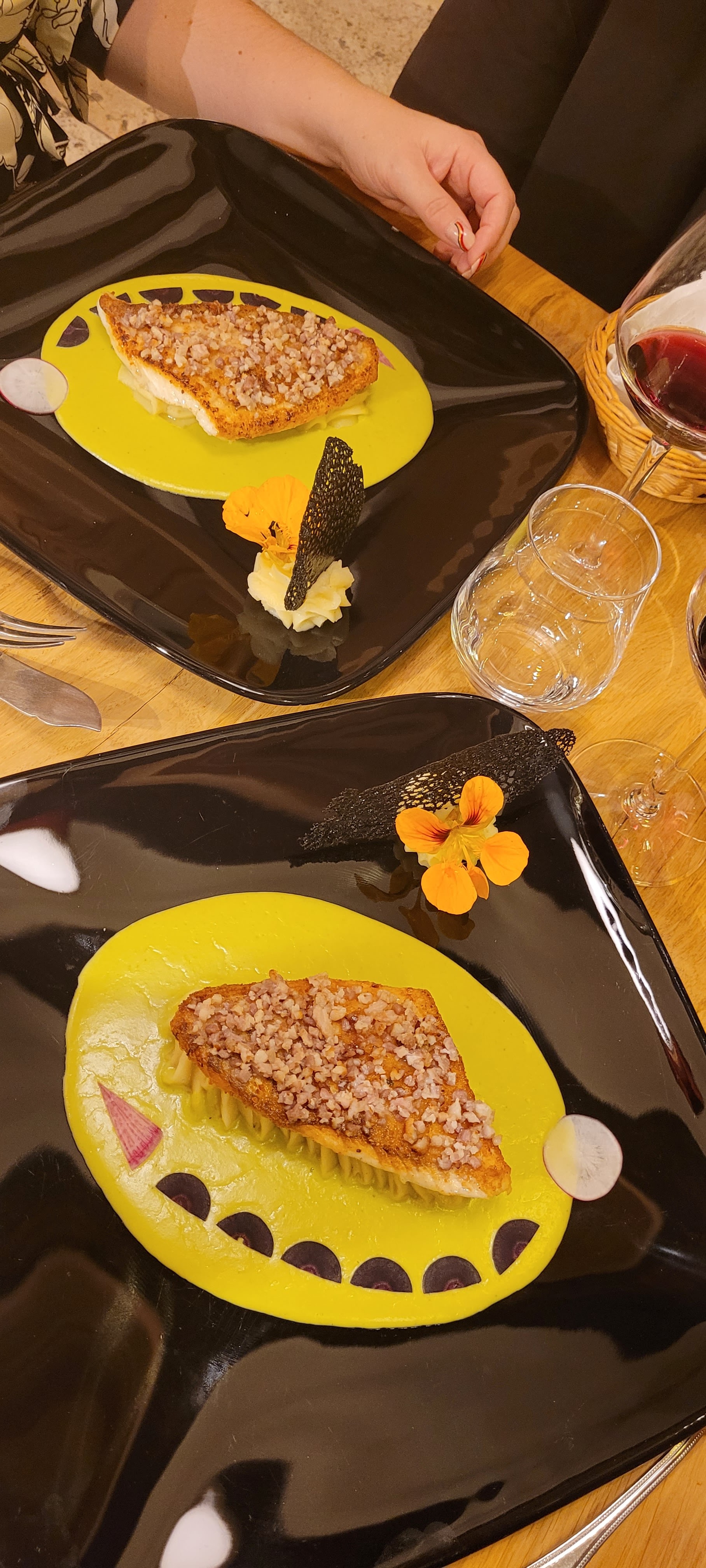 + Équipe super sympa + Ambiance calme, belle déco + Plats très bons, et belle présentation + Parfait en tous points !!! + Nous avions une contrainte de temps, et le service/la cuisine s’est adapté et nous n’avions pas non plus l’impression d’être pressés :)