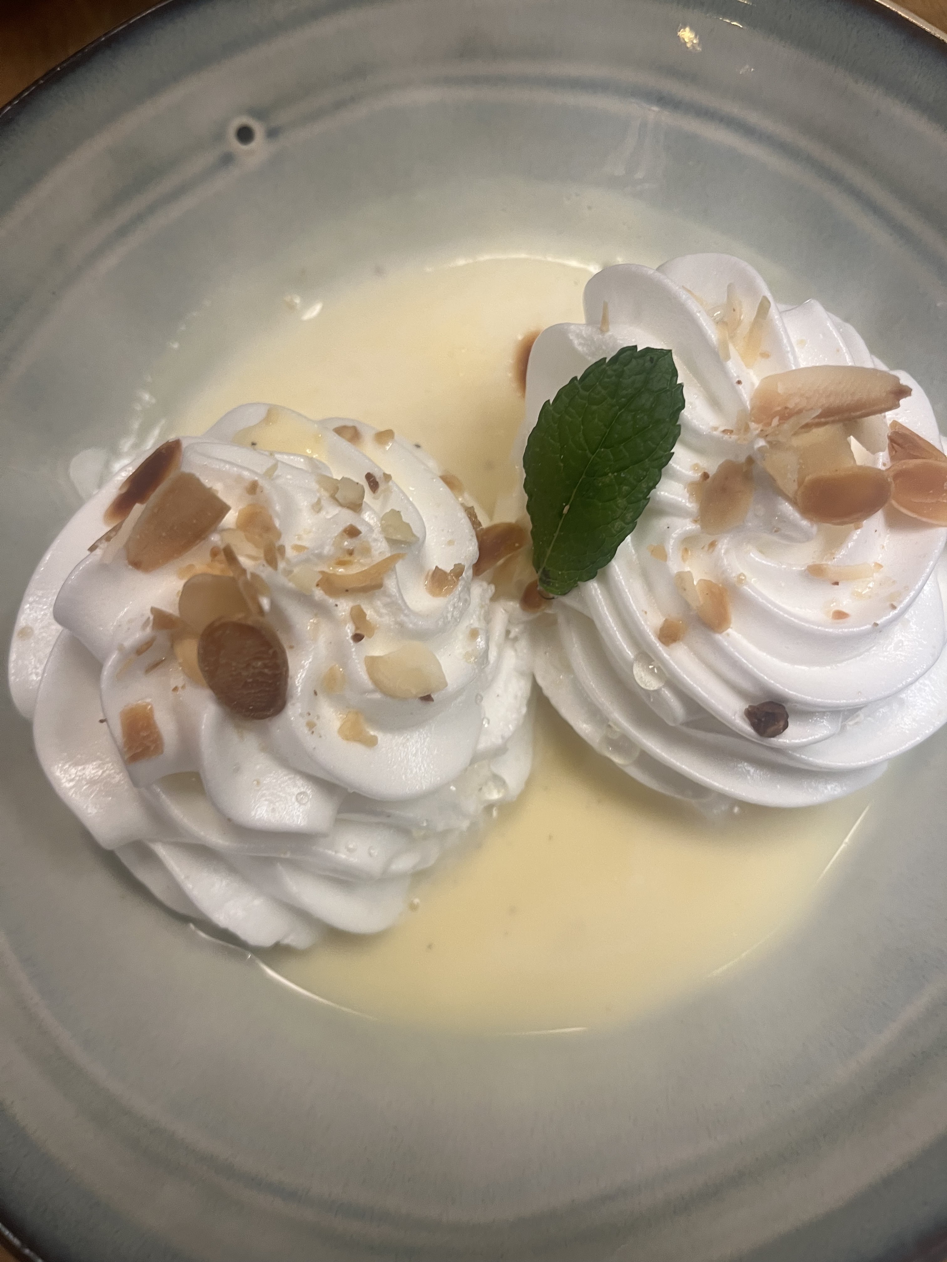 Très beau cadre, bon accueil, très bon service. Entrées et plats très bons mais desserts décevants.:Île flottante: blancs compacts, crème anglaise liquide et insipide et dessert au chocolat immangeable de type mousse sans goût, portant au cœur, c est dommage pour un anniversaire !