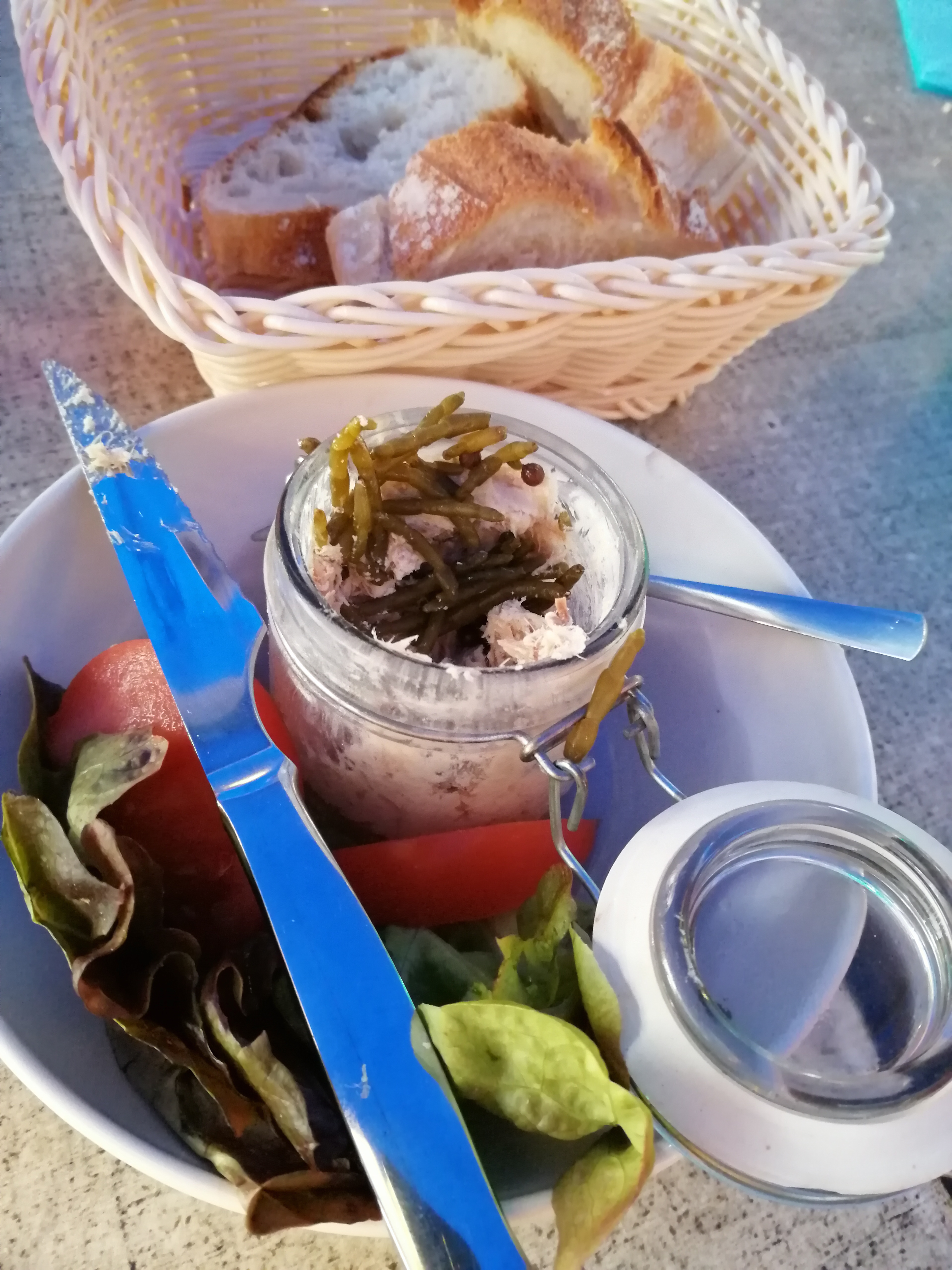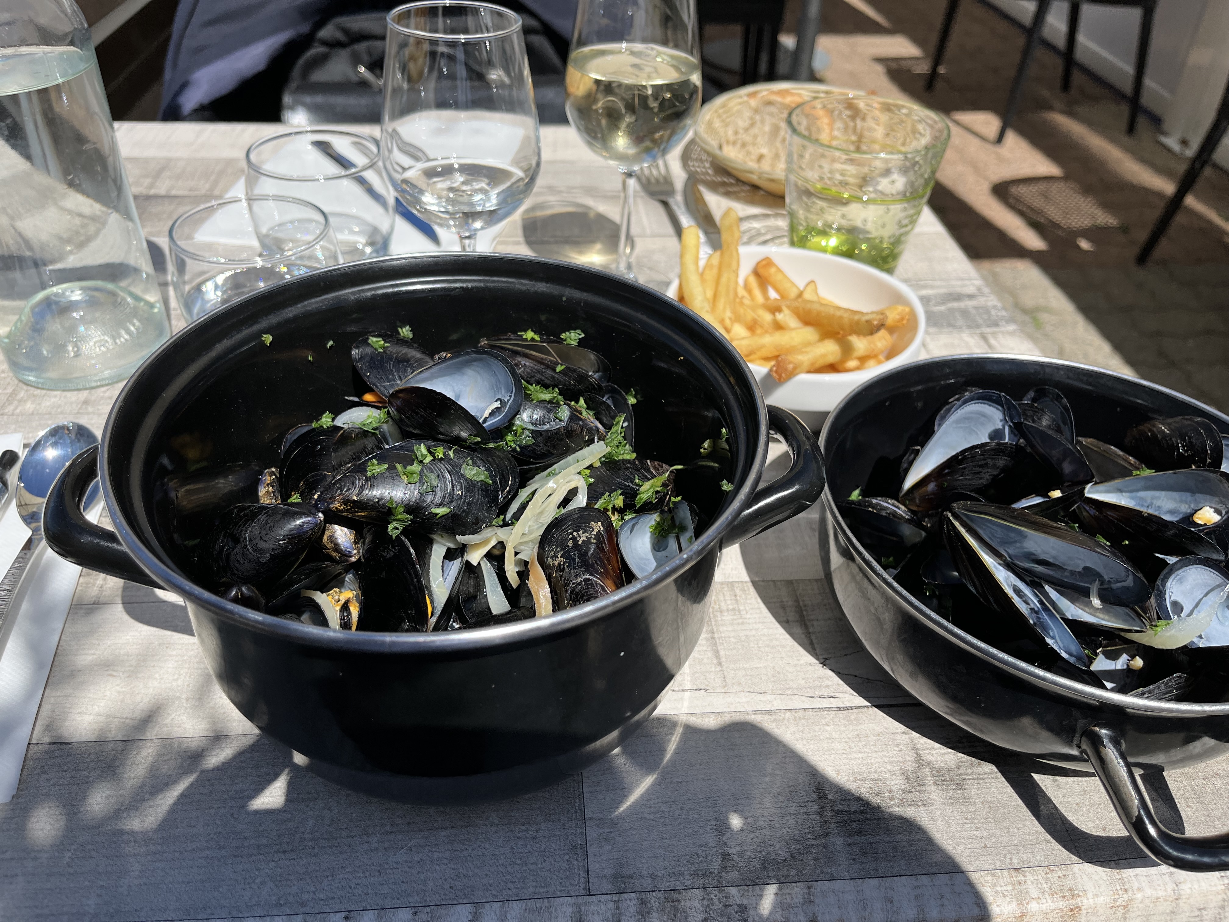 Une moules-frites et une pinte, un midi sur le petit port. La vue n'est pas la plus belle de la baie, mais on y est bien et c'était simple mais bon.