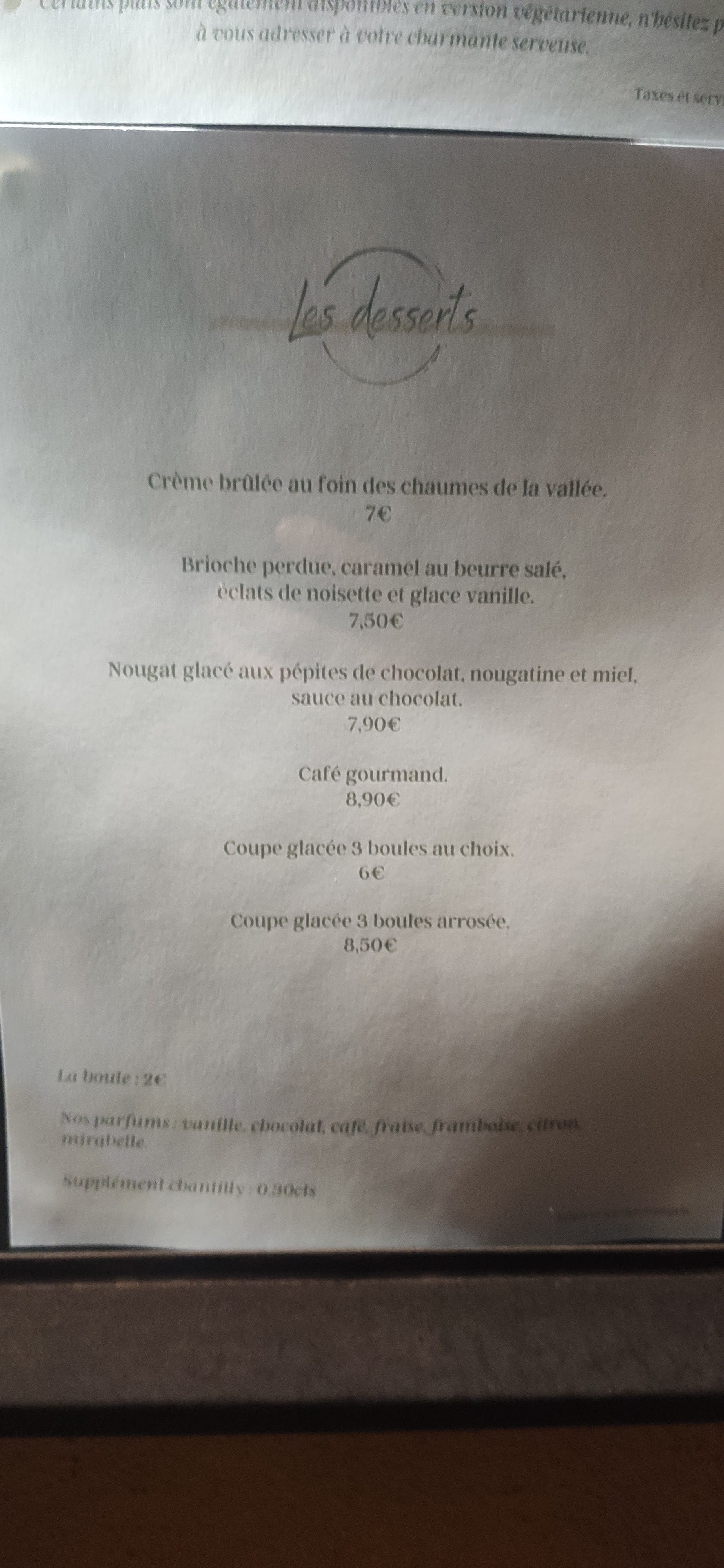 Plats excellents servis avec des détails sur leur composition, ainsi que des desserts simples mais bien pensés .