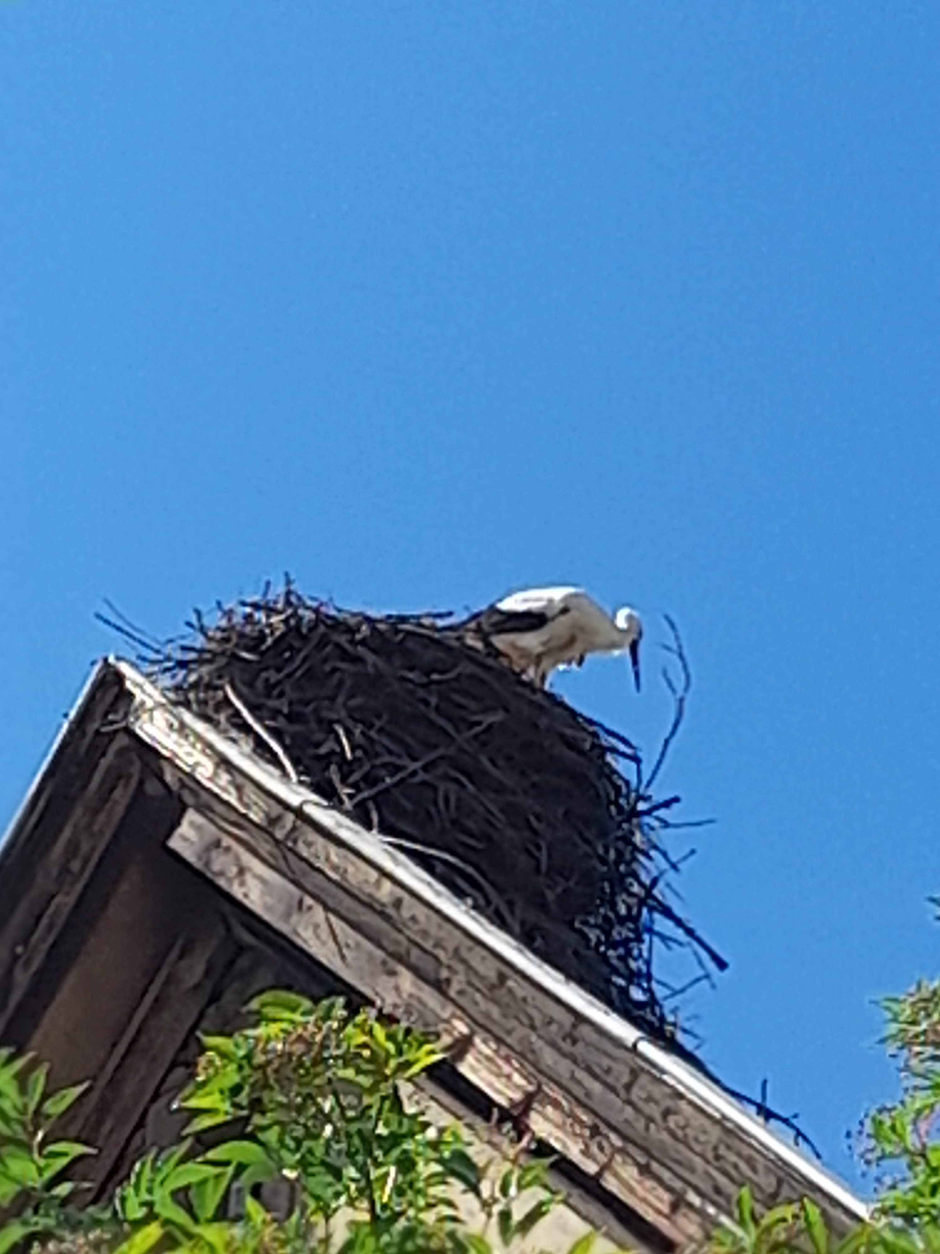 Joli village, particulièrement interessant actuellement (juin), les nids de cigognes sur les toits tout autour de la très belle église et sur ses clochers sont habités, fréquemment, on voit les cigognes prendre leur envol pour aller chercher de la nourriture pour les cigogneaux, il y en a toujours une ou plusieurs qui plane au-dessus de nos têtes avant de se poser près de ses petits et de soit donner la becquée, soit de déposer le repas dans le nid et là, tout ce petit monde se délecte