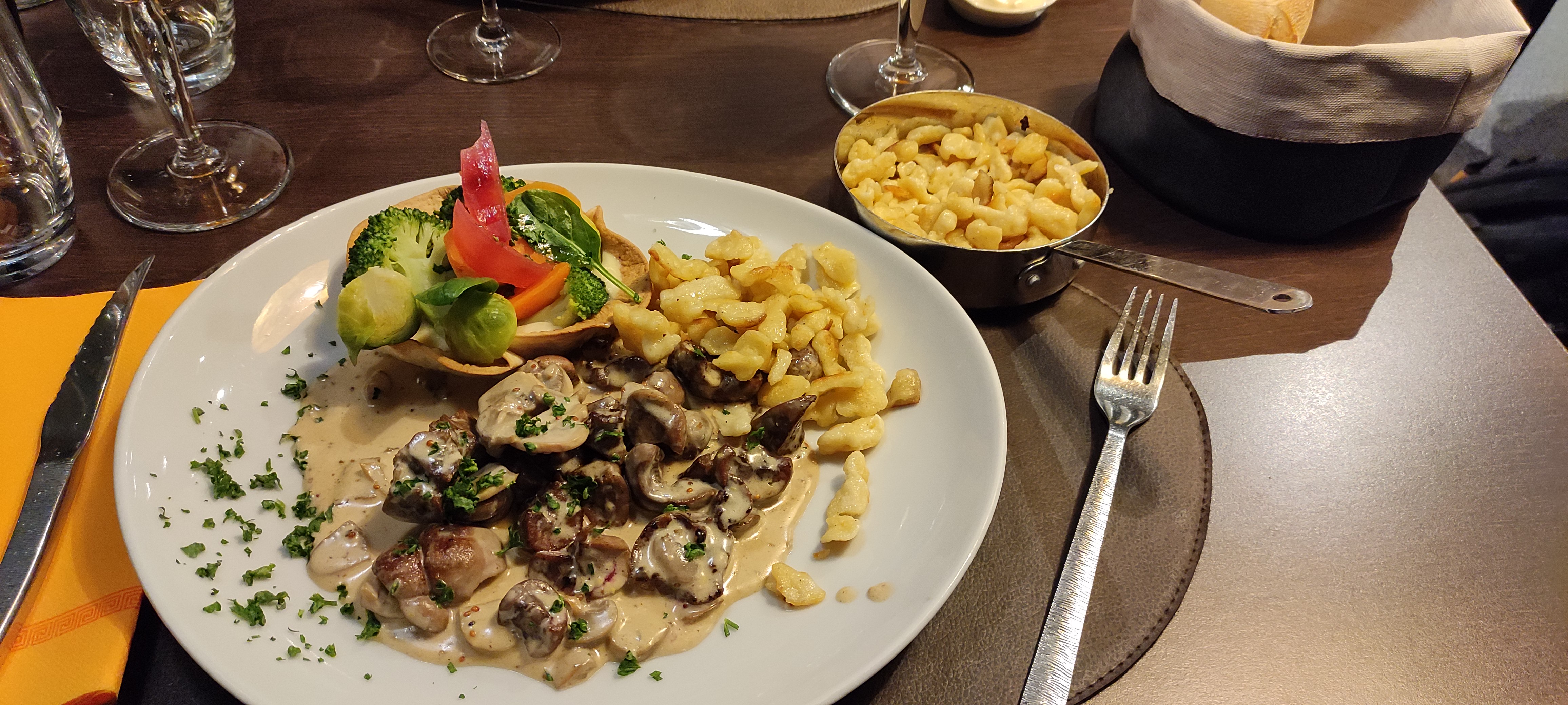 Très bon repas, saumon tiède mais pas grave , vordon et spaetzle très bon, et les dessert EXCELLENTS. Je vais revenir c'est sur......à bientôt et bravo à tous.