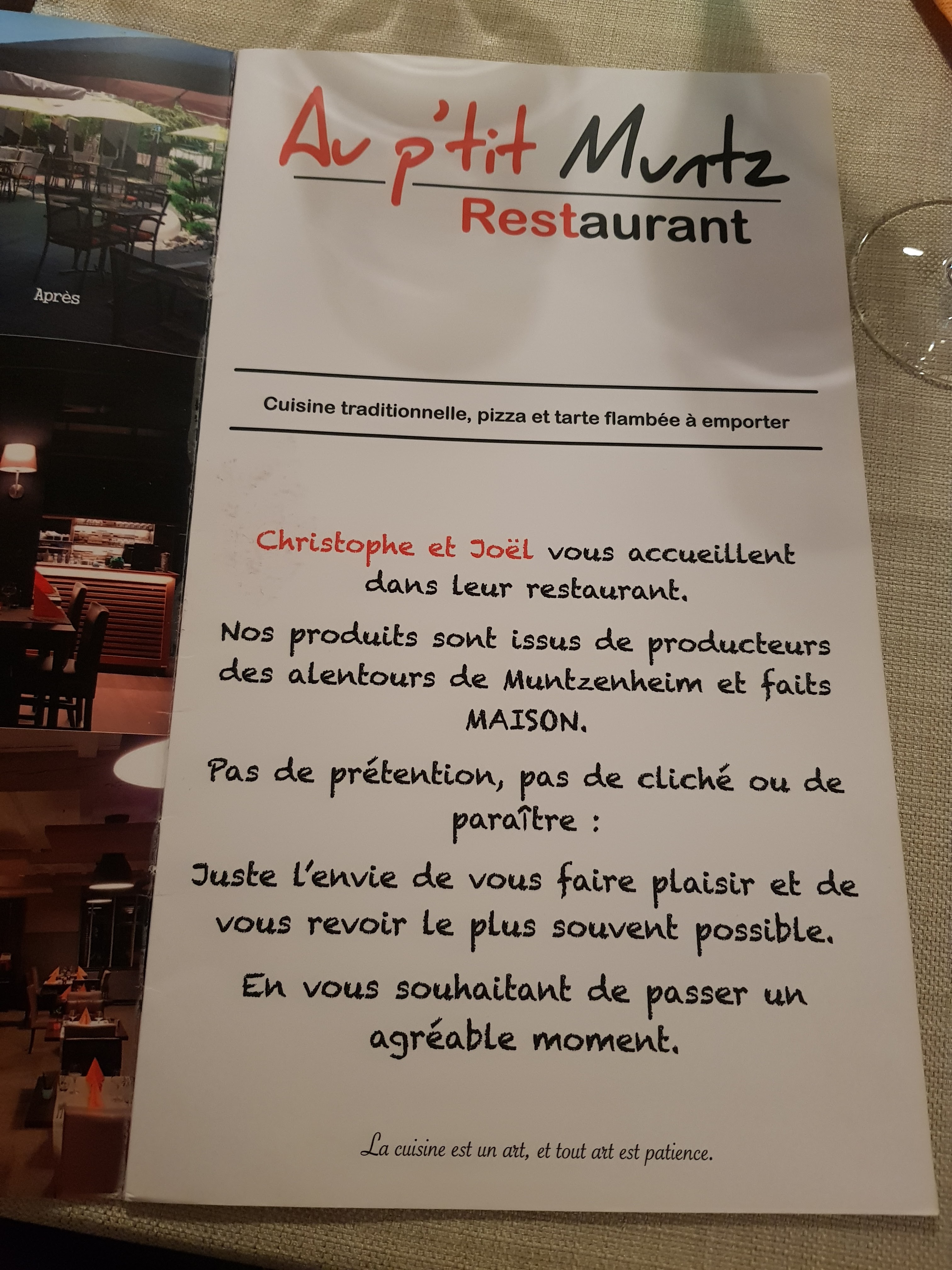 Merci au p'tit Muntz pour nous avoir accueillis pour la communion de mon fils. Super accueil, service, et le menu était vraiment exceptionnel et d'un goût exquis ! Bravo continuez comme ça vous faites honneur à votre profession.
