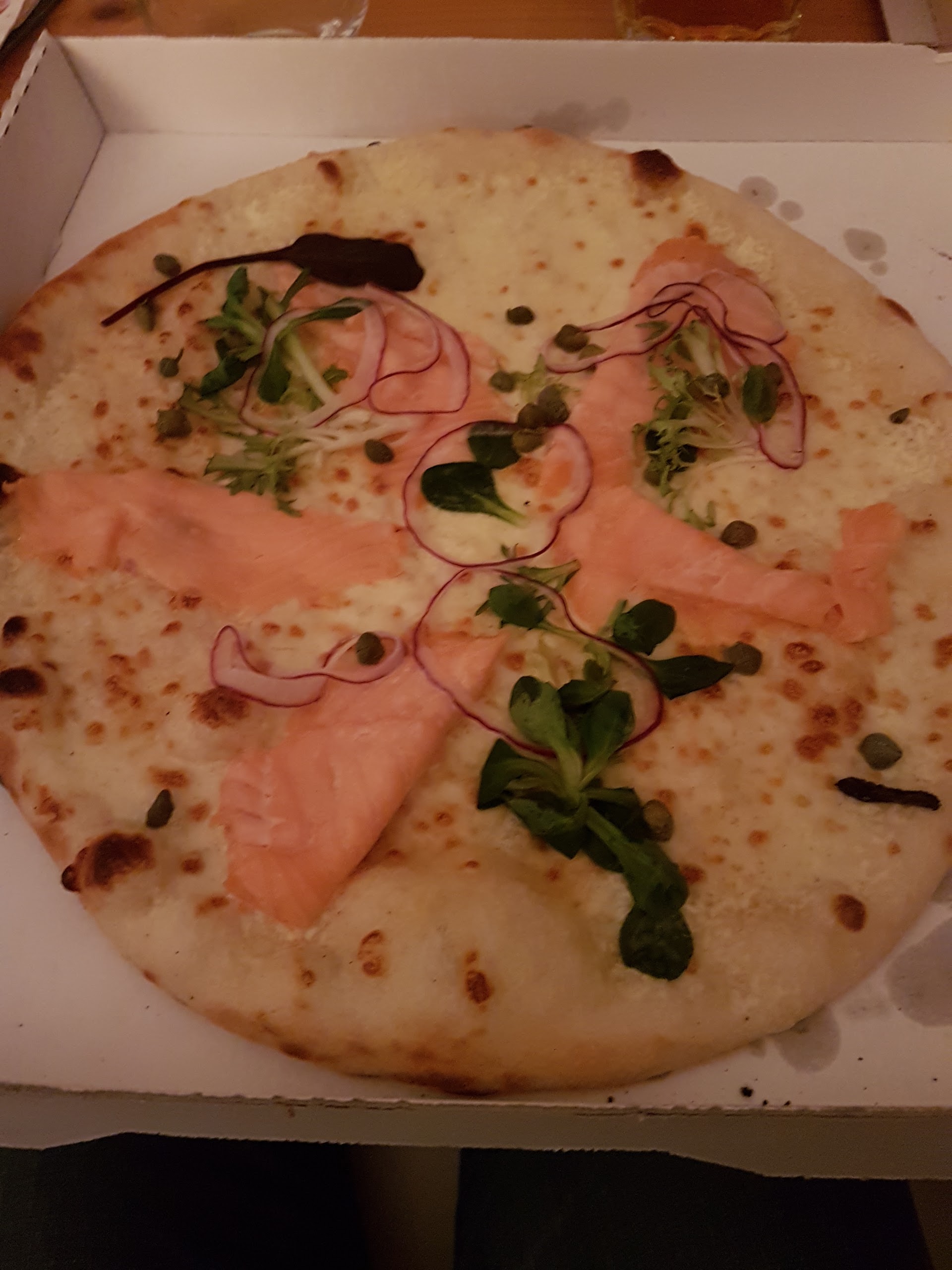 Super personnel, une bonne ambiance car j'étais aussi bien entourée. Tout était impeccable en fait. Cela m'a vraiment étonné ! Vaisselle propre, plats de mon entourage bons et le mien un délice ! Une douceur, la pizza plaisir à ingrédients à volonté. J'ai pris base crème, chèvre, miel, aubergine, courgette et gambas. J'y retournerai rien que pour ce bonheur de composer sa pizza, en finesse ou à la pelle. Merci en tout cas pour votre générosité, car même les desserts avaient se l'allure et généreux.