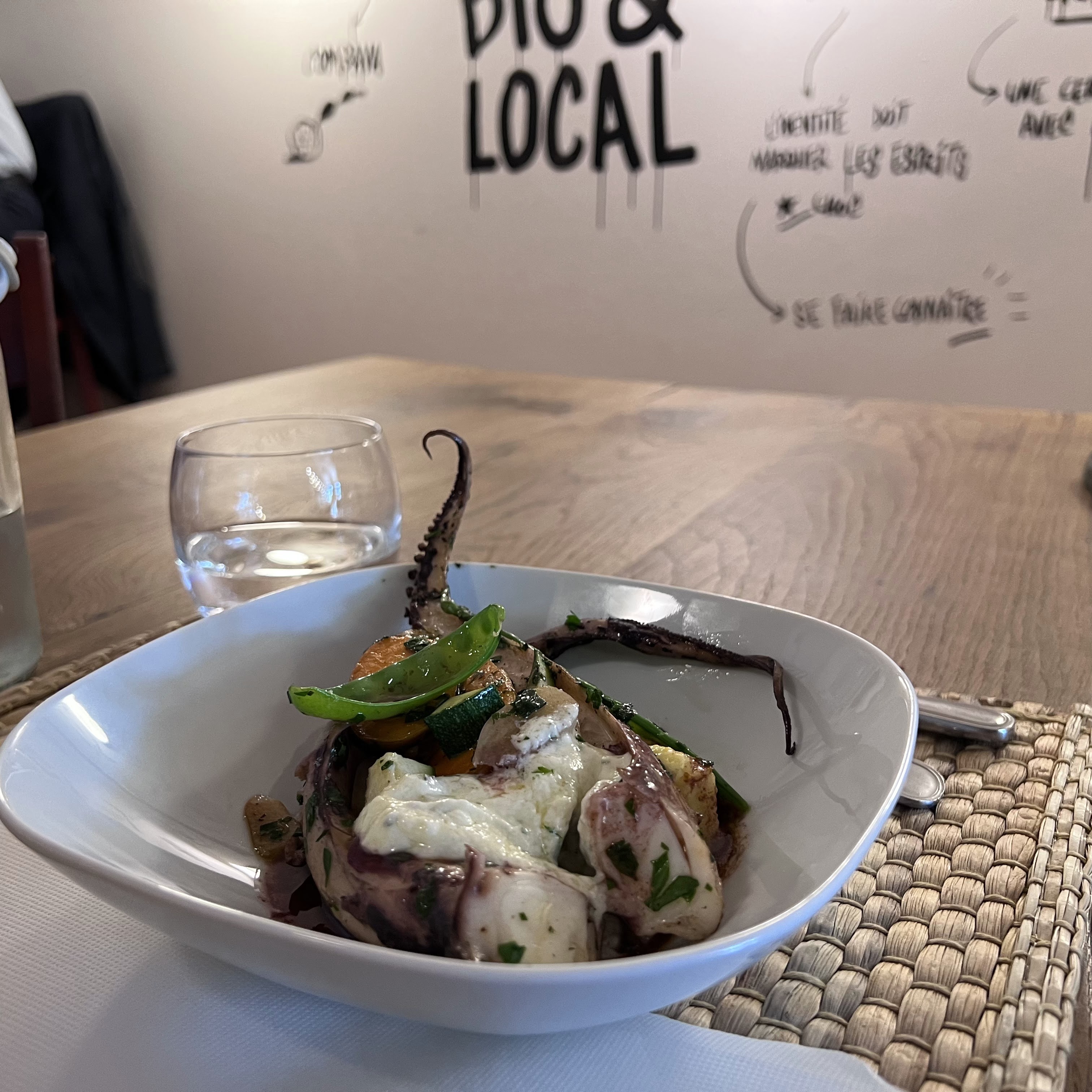 Le décor n est pas là pour l instant mais la cuisine est créative, fraîche et pleine de saveurs . le poisson cuit à la seconde prêt et la pâte à tarte est maison comme tout le reste . Un créateur de cocktail très inventif à disposition au bar et un personnel tout sourire . Merci pour ce bon moment Une belle découverte