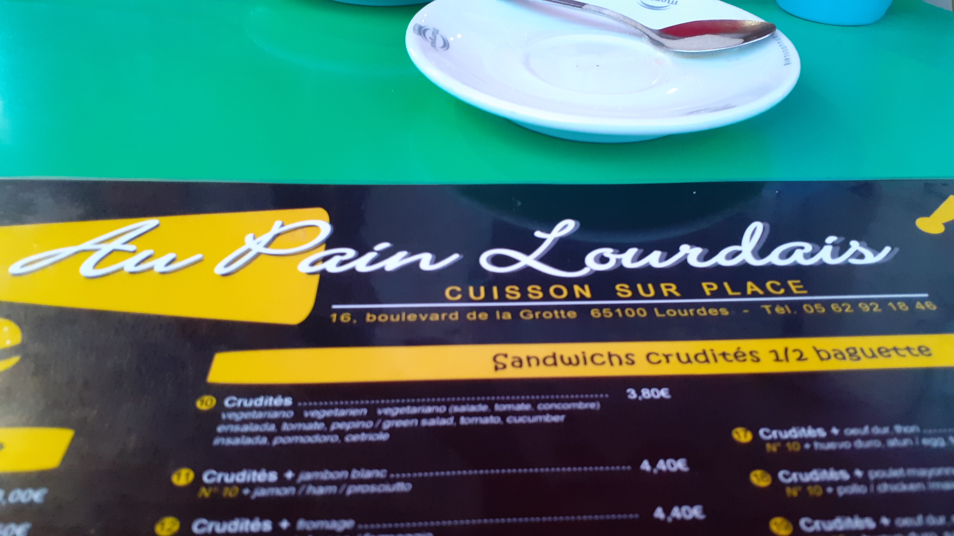 Tous les ans qui vont à Lourdes mi fermo in cette piccola caffetteria per un caffé e una brioches, mi piace come ti accoglie la signora del bar, toujours sorridente e il caffé (per essere un caffé francese!) ,e un bon caffé ! / Tous les ans, voyage à Lourdes. Je tiens dans ce petit café pour prendre un café et des brioches. Je veux que vous receviez la señora du bar, toujours sonriendo et le café (pour être un café francés !) est un bon café ! / Chaque année je vais à Lourdes je m'arrête dans ce petit café pour un café et des brioches, j'aime la façon dont la dame du bar vous accueille, toujours souriante et le café (pour être un café français !), est un bon café !