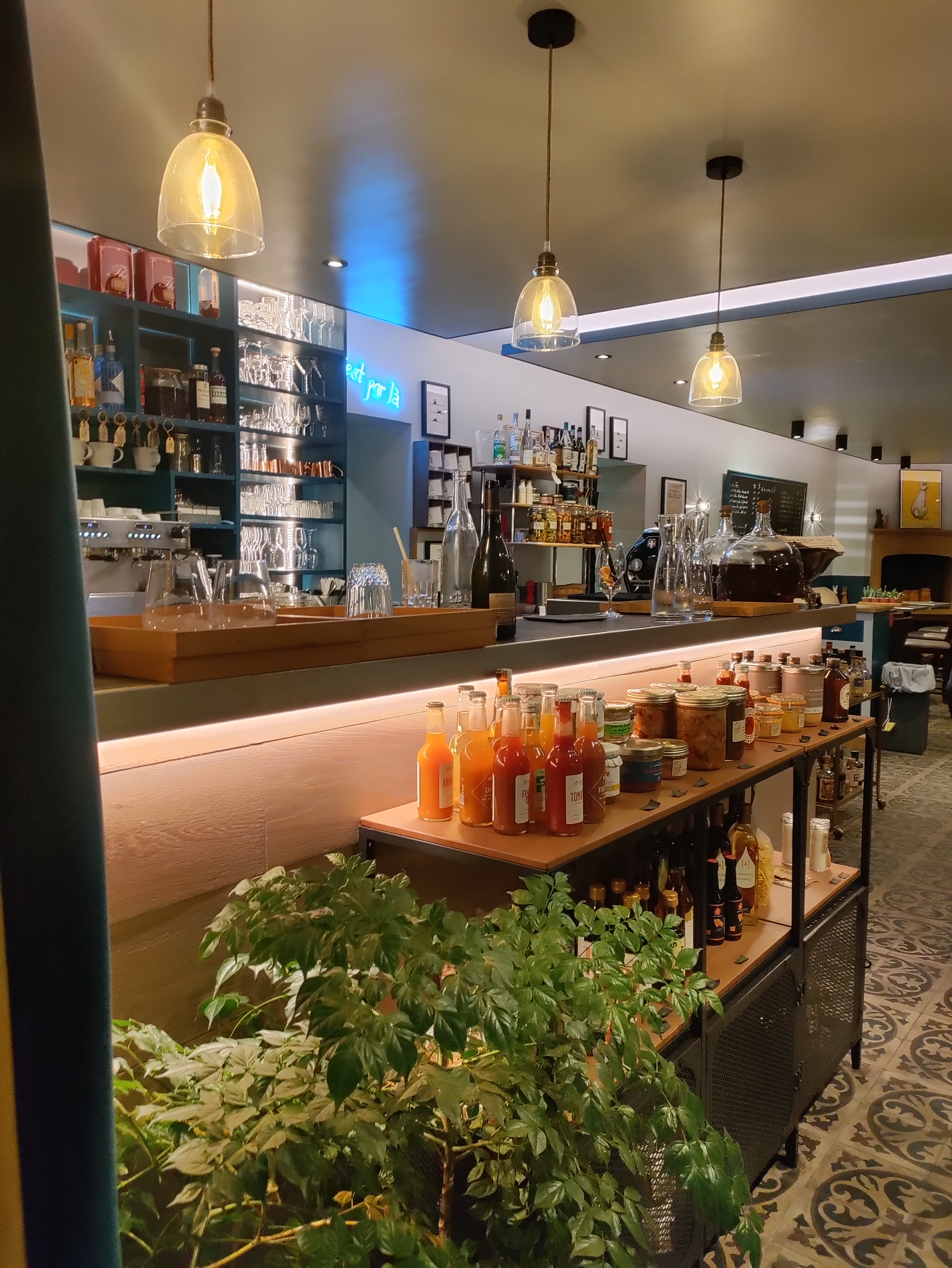Décevant. Le cadre est très sympa. Le service est « normal ». Dans les petits jeunes qui déposent les plats, il y en un un qui hyper bien (souriant, il parle ce qu’il faut, très positif) et un autre qui jette l’assiette sur le table. Pour les plats, nous avons été déçus. L’œuf mayonnaise (je simplifie, le nom et le plat sont plus élaborés) était sans plus, avec une mayonnaise que l’on devrait avoir envie de manger avec du pain et qui reste sans saveur (nous étions 4 du même avis). Pour le plat, les saint Jacques étaient bonnes même si dans l’intitulé on parle d’agrumes que l’on ne ressent pas du tout. Pour le lapin, ce ne fut pas l’extase. De mon souvenir le lapin se décroche tout seul alors qu’ici il restait fortement attaché aux os… Enfin, le flan du jour était bon (niveau brasserie). Quand on ajoute un vin à 35€, toute cette histoire nous amène à 265€ à 4 (4 entrées + plats et deux desserts avec deux cafés). C’est clairement pas au niveau rapport qualité/prix de notre goût.