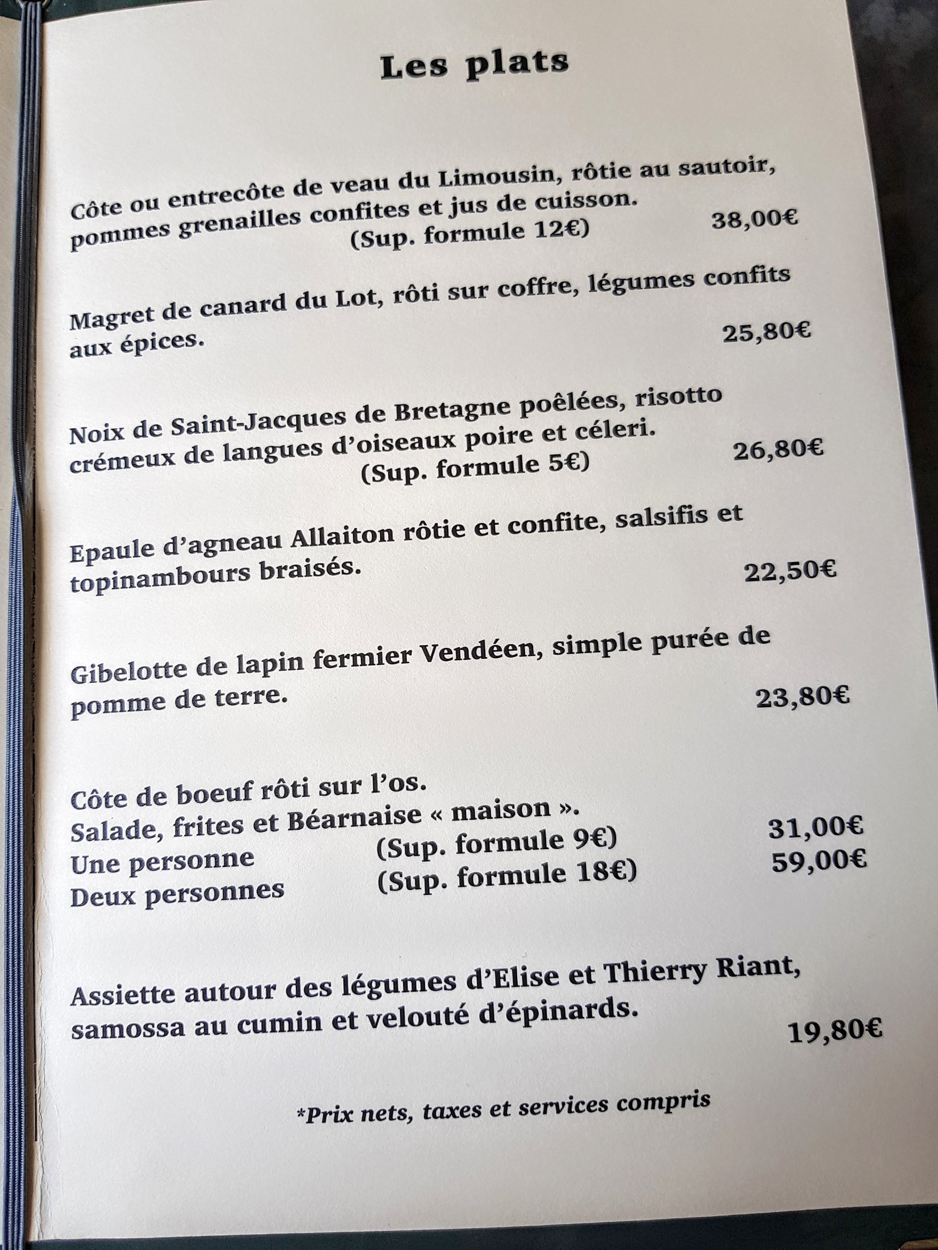 5eme fois que nous nous y rendons, jamais déçus. Bons plats bien travaillés, savoureux, avec un plus pour la côte de bœuf à partager et le Paris-Brest en dessert! Nous y retournerons avec plaisir