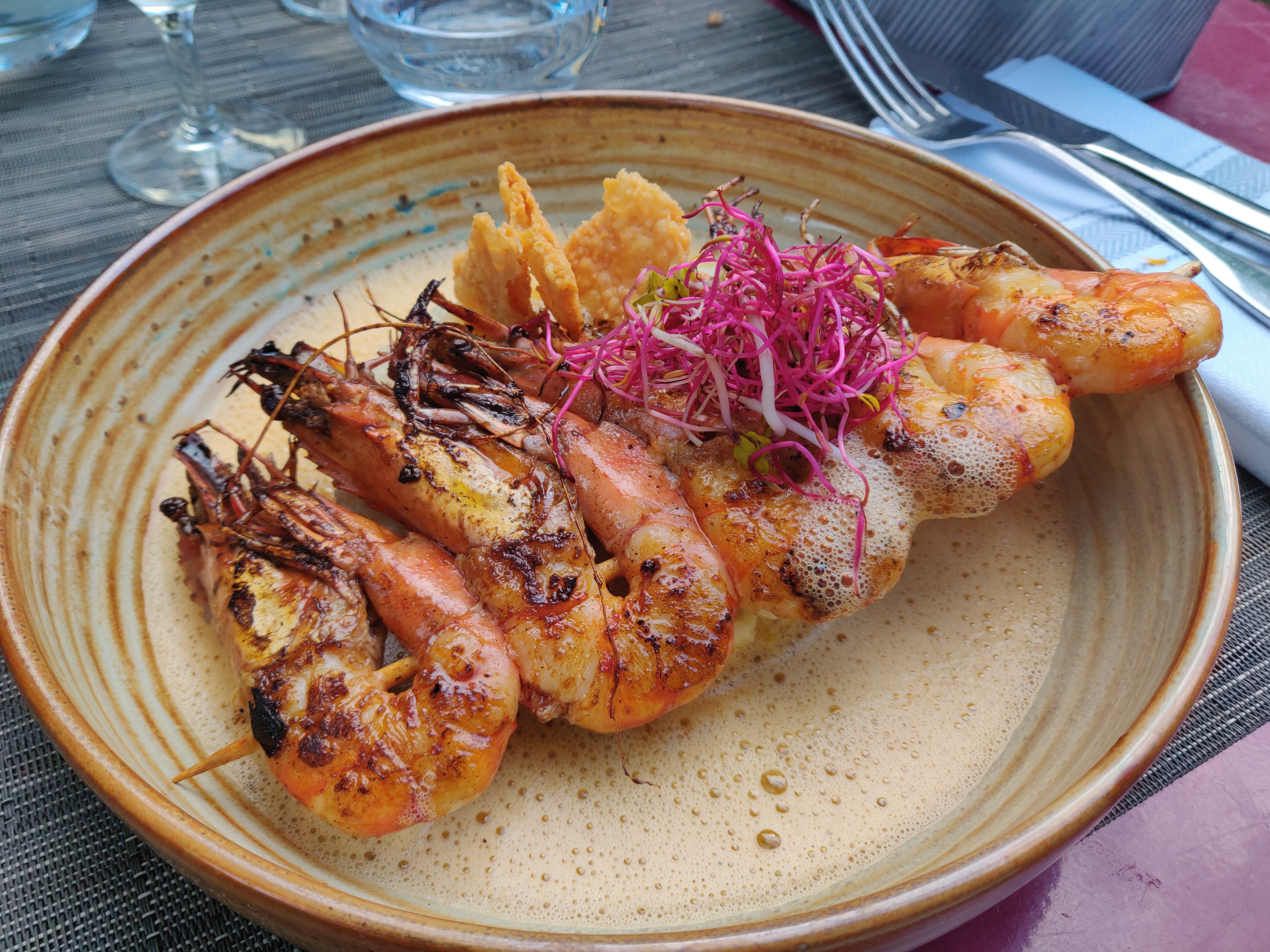 Nous étions en terrasse (super agréable...à côté du barbecue appétissant) et nous avons apprécié le service, le cadre et bien entendu les plats (bouillabaisse pour mes amies et assiette de légumes pour moi). En tant que végétarienne j'ai parfois des difficultés dans les restaurants, mais cette assiette autour des légumes était vraiment TOP (ça ne fait pas punition pour celle qui ne mange pas de viande...mais au contraire c'était gourmand). J'apprécie aussi le geste commercial du responsable qui n'a pas compté mon apéritif (que je n'ai pas pu boire car il contenait du sucre...ce qui n'était pas indiqué dans la description) Bravo d'avoir compris et pris en compte ma particularité de régime;