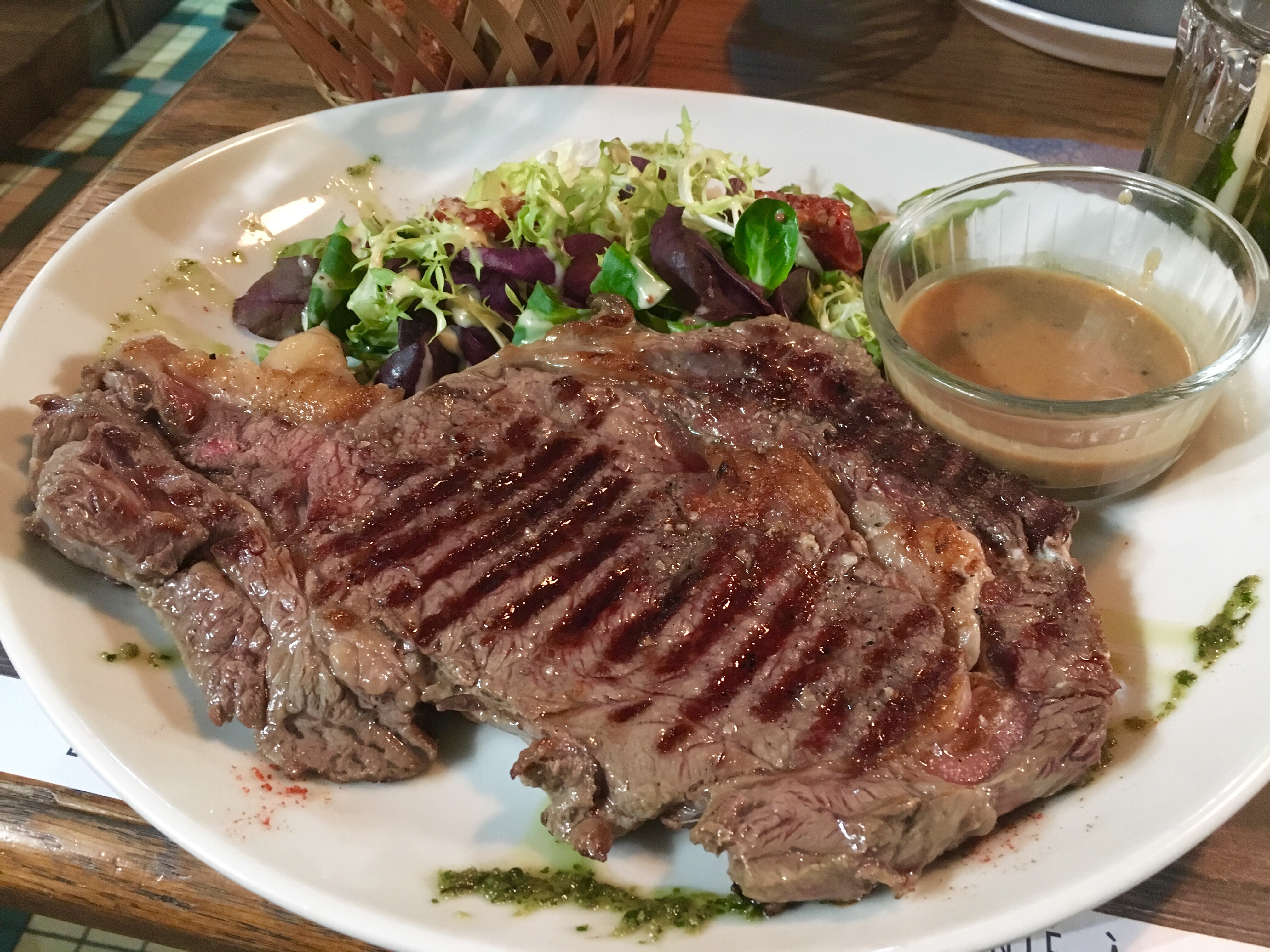 Le propriétaire était super sympa, attentionné et serviable ! Elle m'a vu avoir du mal avec le menu français et m'en a proposé un en anglais, tout en faisant de son mieux pour m'expliquer et clarifier ma commande en anglais ! Elle a parfaitement reçu ma commande (j'ai demandé une entrecôte moyennement rare) et a rendu notre séjour dans son restaurant très agréable ! Mes amis ont commandé le couscous merguez et les pâtes au saumon qui étaient également délicieuses ! Je recommande vivement cet endroit chaleureux à tout le monde !! 😊 Merci pour cette belle expérience ! ❤️️