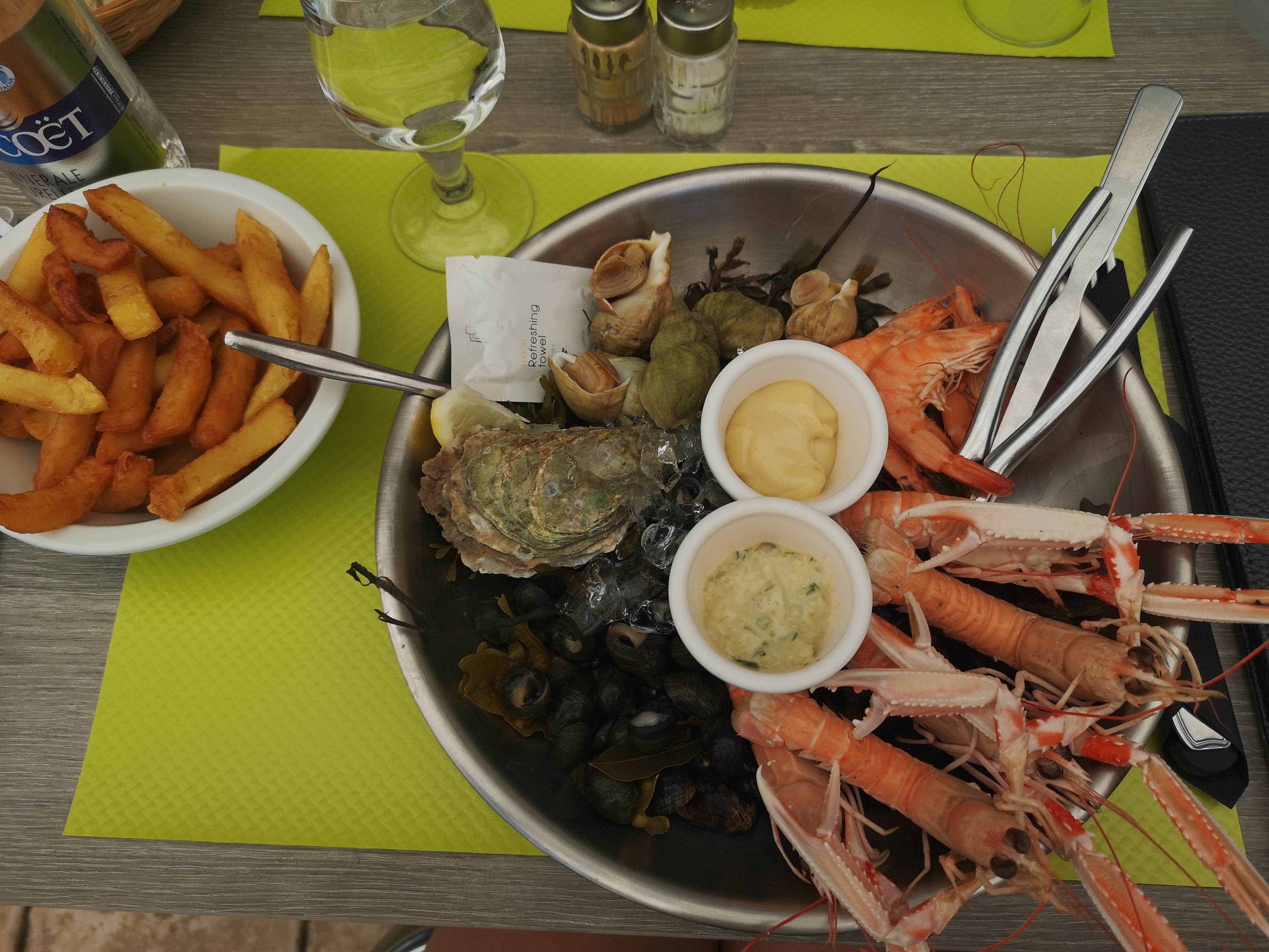 Les moules étaient délicieuses! Un peu déçue par les bigorneaux et bulots dans mon assiette de fruits de mer, ils avaient un goût si fort que j'ai douté de leur fraîcheur. Les huîtres étaient difficiles à manger car pas du tout détachée d'aucun côté et pleine d'éclats de coquille. Mais le reste était délicieux!