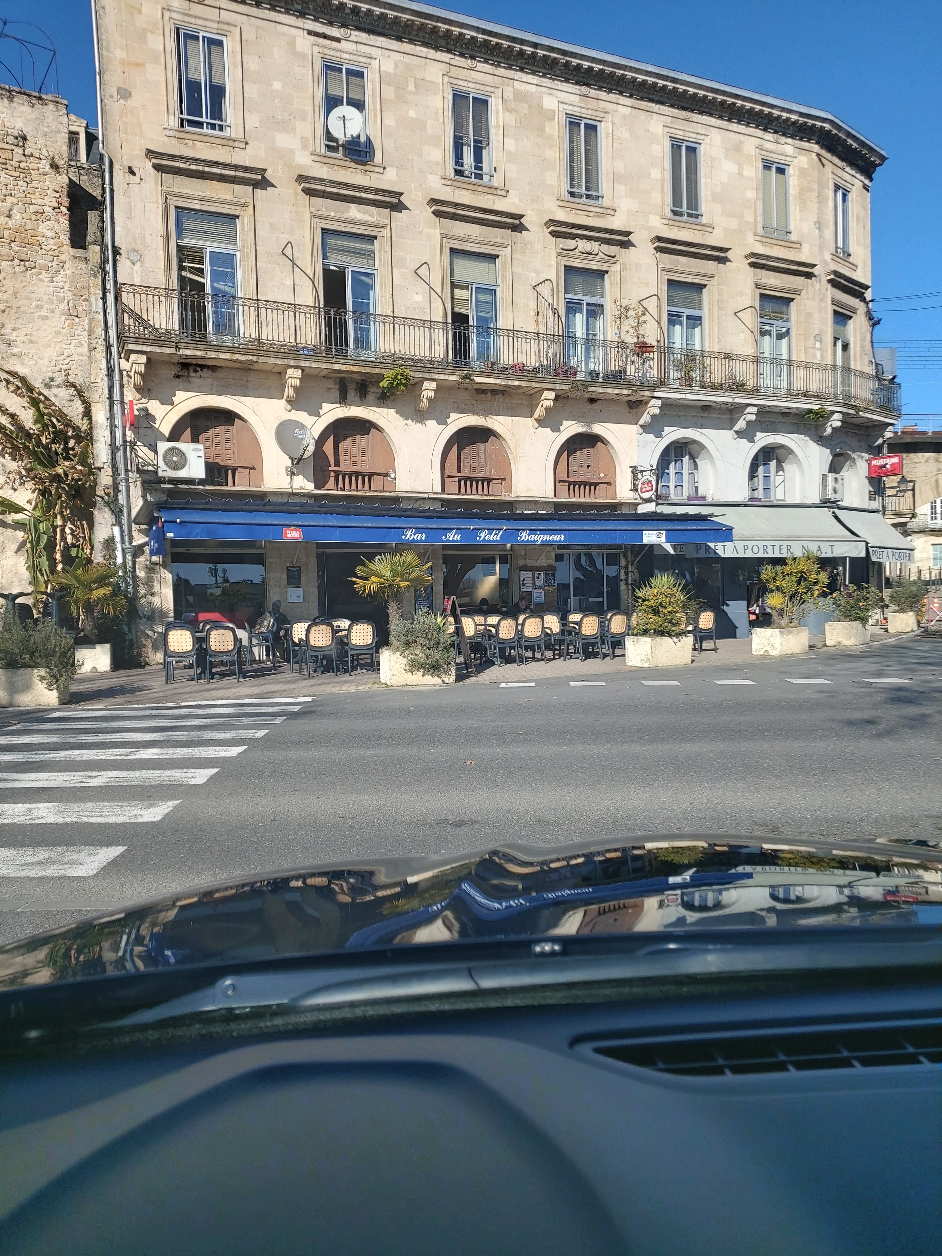 Un café où je vais beaucoup à la Réole et avec la vue sur le marché du samedi et d'autres événements. La vue sur la Garonne.