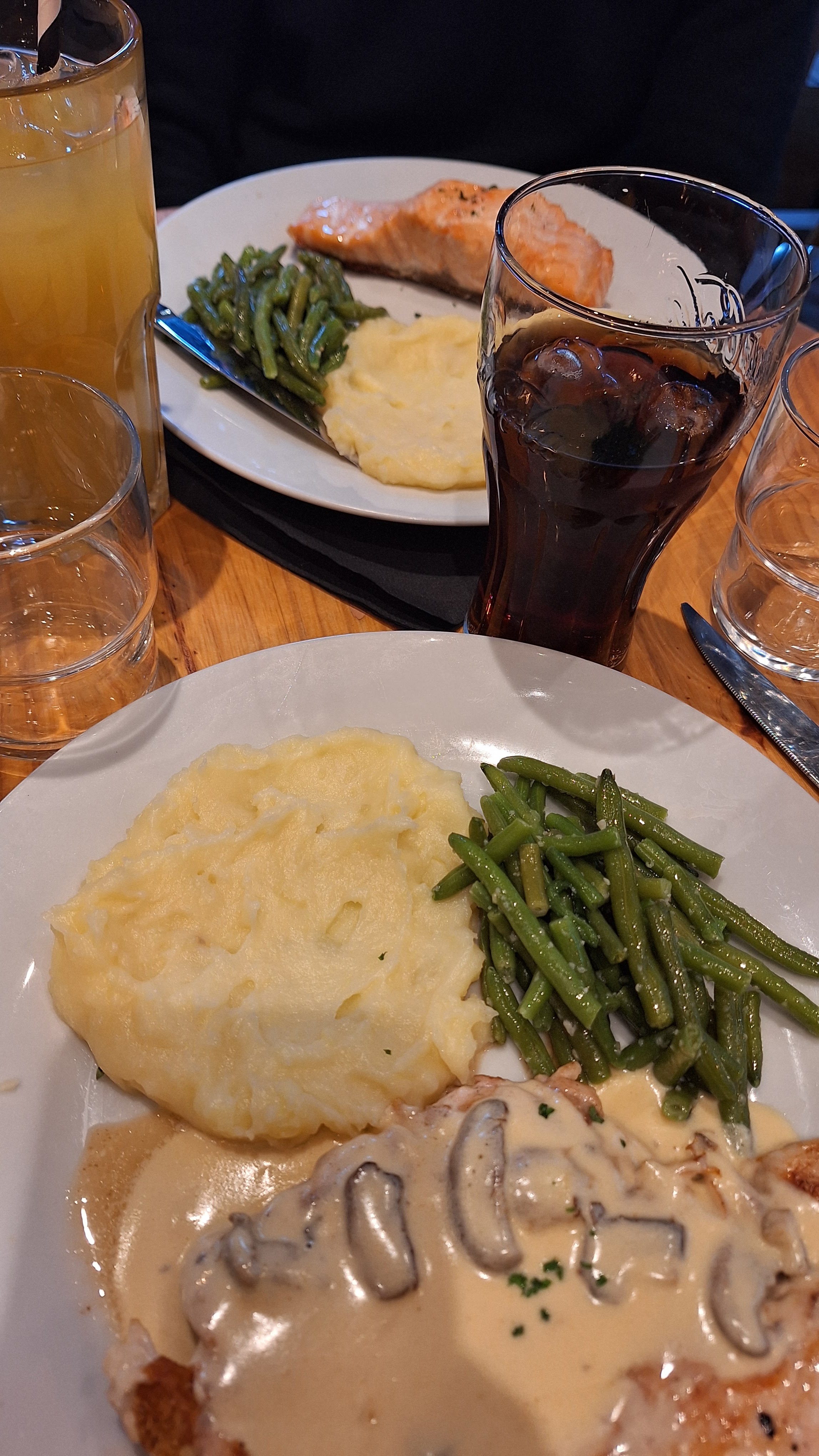 J'ai mangé ici avec mon fils et que puis-je dire ? La nourriture était délicieuse et le service excellent. Malheureusement, il n'y avait pas de chaise haute pour les enfants, mon enfant a donc dû manger sur mes genoux. La serveuse était très arrangeante et sympathique avec nous. Nous avons mangé du saumon avec de la purée de pommes de terre et des haricots verts.