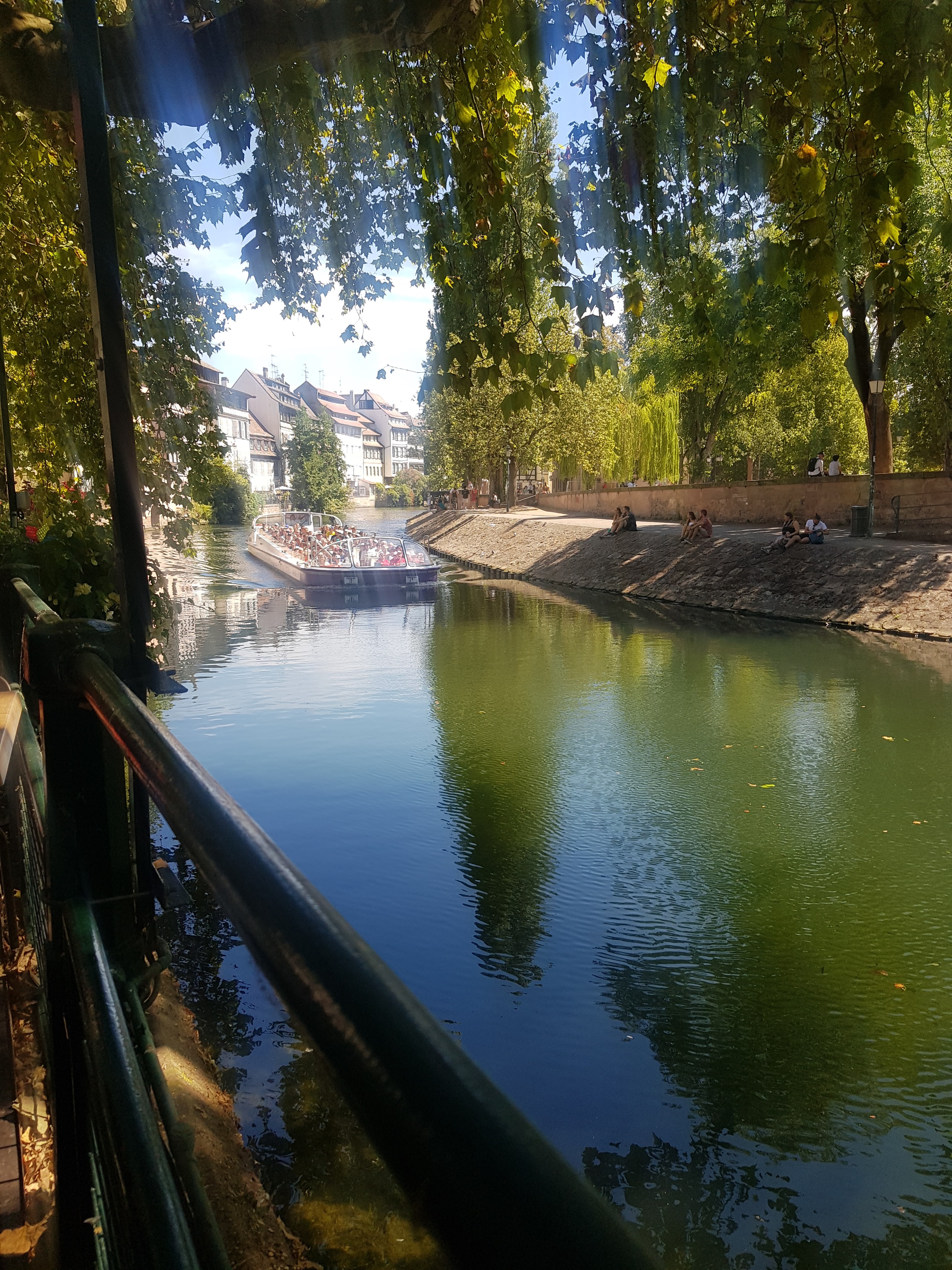 La terrasse est formidable sous l'un des plus vieux arbres de Strasbourg. Au calme et au frais, donc. Il est conseillé de réserver pour les tables au bord de l'eau. Serveurs affables et attentionnés. Une belle carte de vins d'Alsace au verre et en bouteille. Plats corrects, prix corrects. Mention spéciale pour le burger de sanglier, très sympa.