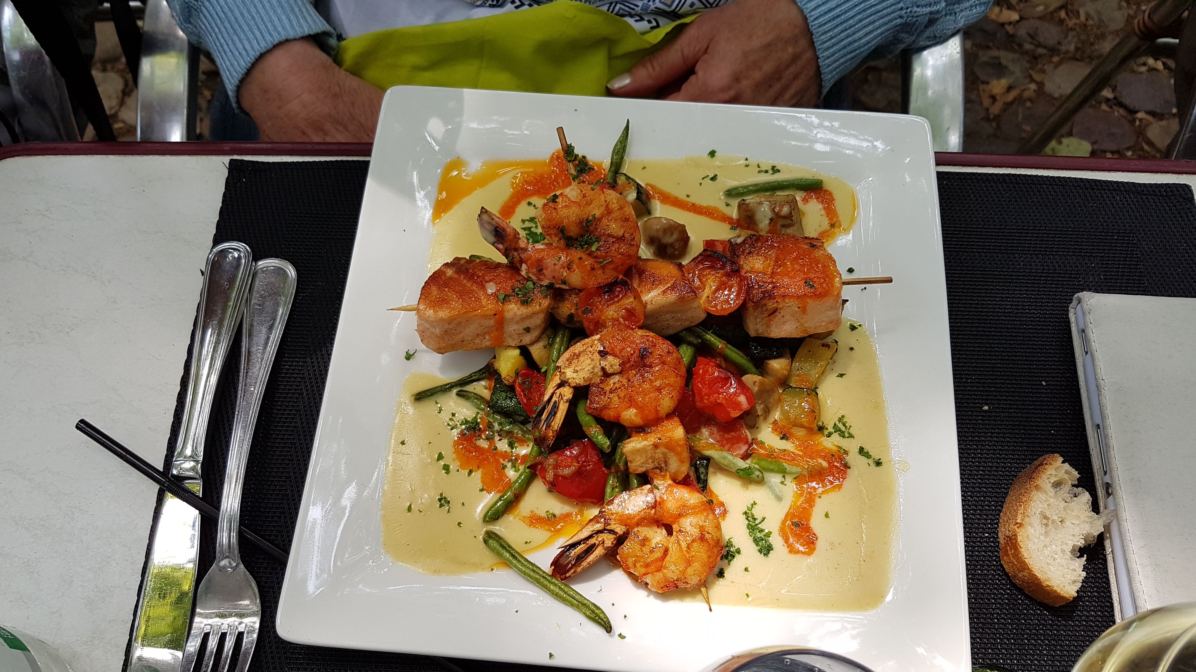 Un lundi avec beaucoup de monde, le jeune saisonnier c’est débrouillé pour nous trouver une table au bord de l’eau. Le lieu est très joli, le repas pour 80€ à 2 était raisonnable.