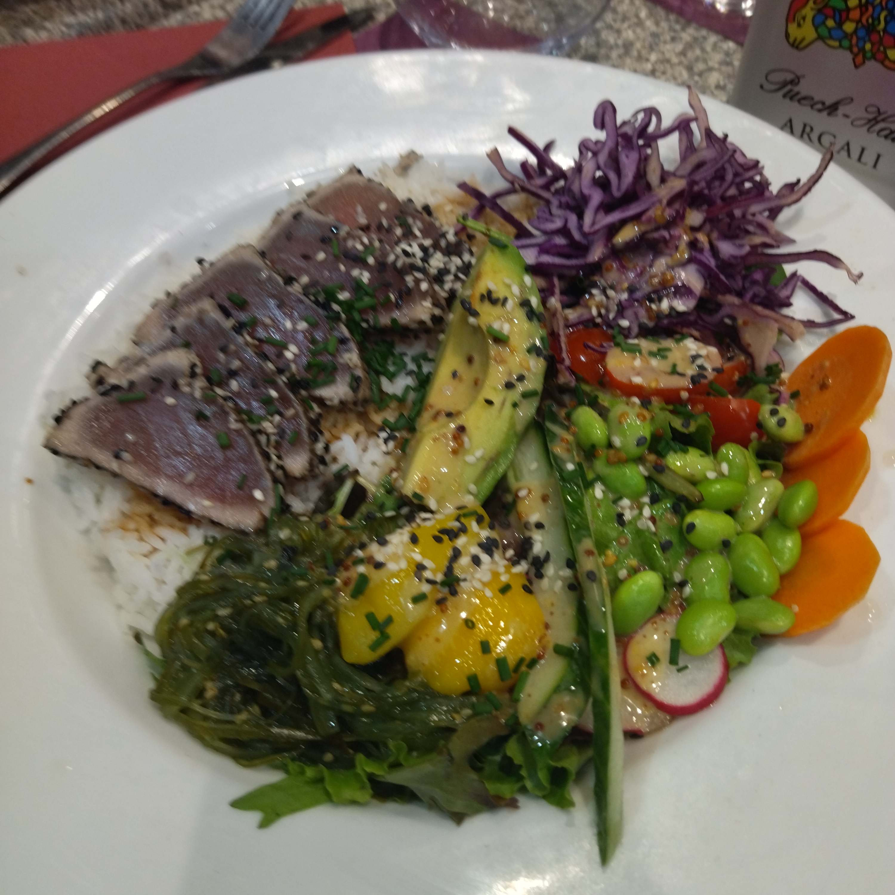 Déjeuner très agréable en terrasse, poke ball au poulpe très bonne découverte.