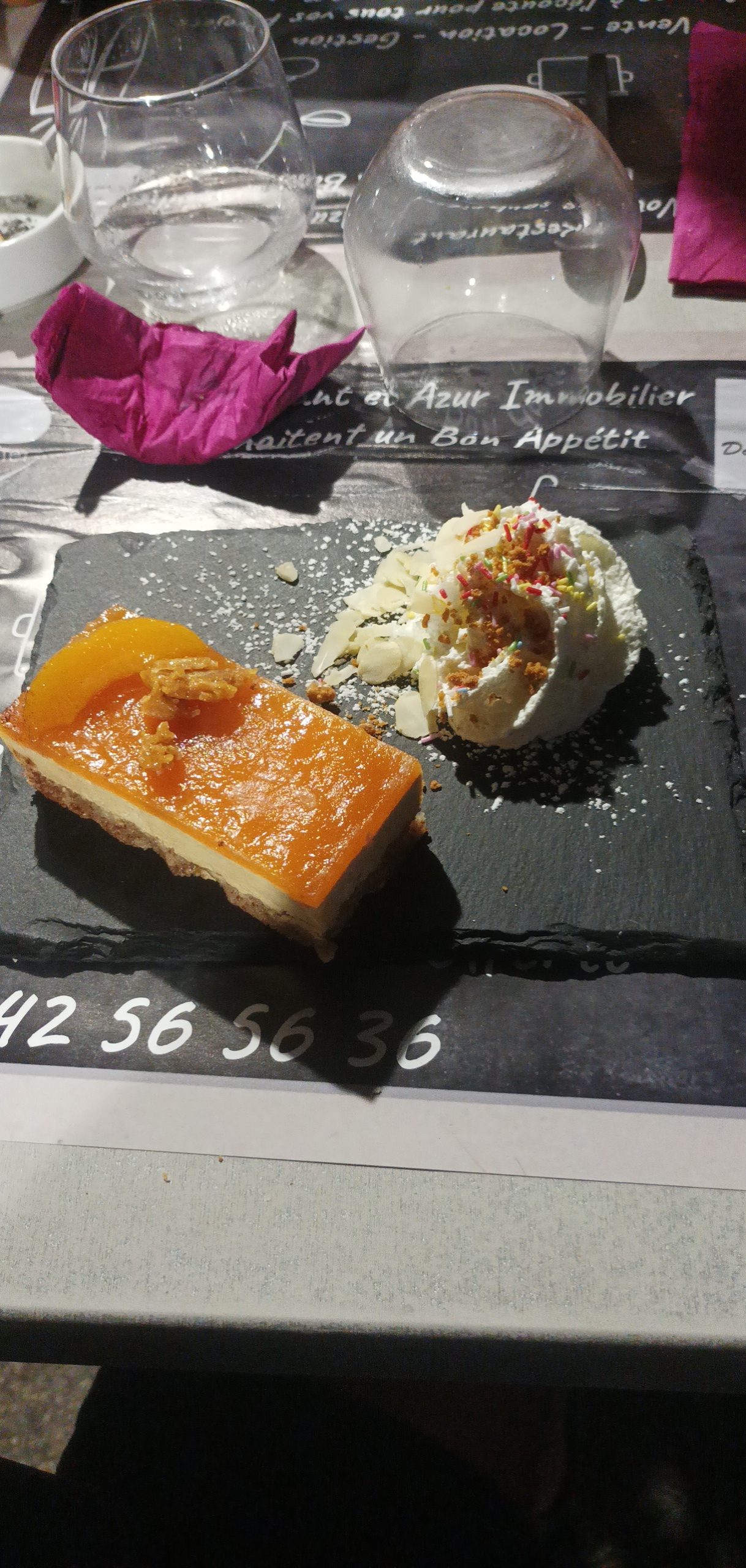 Nous avons consommé malheureusement que l apéro. La commande a été bien prise, mais après une heure trente d'attente le garçon est venu avec des plats qui ne correspondaient pas à la commande. Aucune explication ou mots d'excuse. On nous a donc laissé régler le verre de vin blanc et le pastis et sommes partis. Voilà...