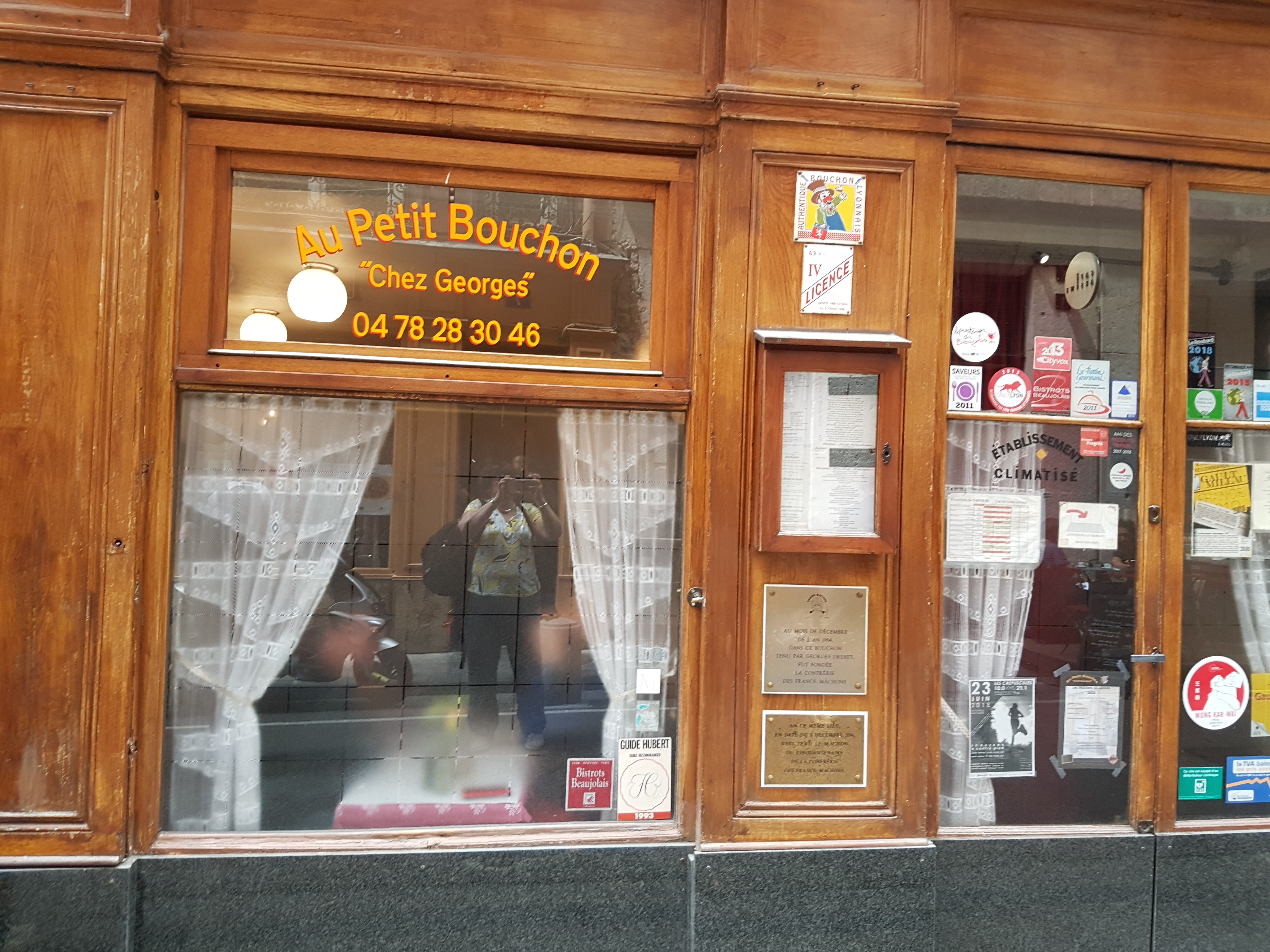 Découverte d’un petit bouchon lyonnais….et quelle découverte! Une cuisine excellente, une ambiance du tonnerre…..notre rayon de soleil de la journée malgré la pluie battante qui nous attendait à la sortie. Plus de 800 kms pour venir mais y reviendrons avec plaisir!