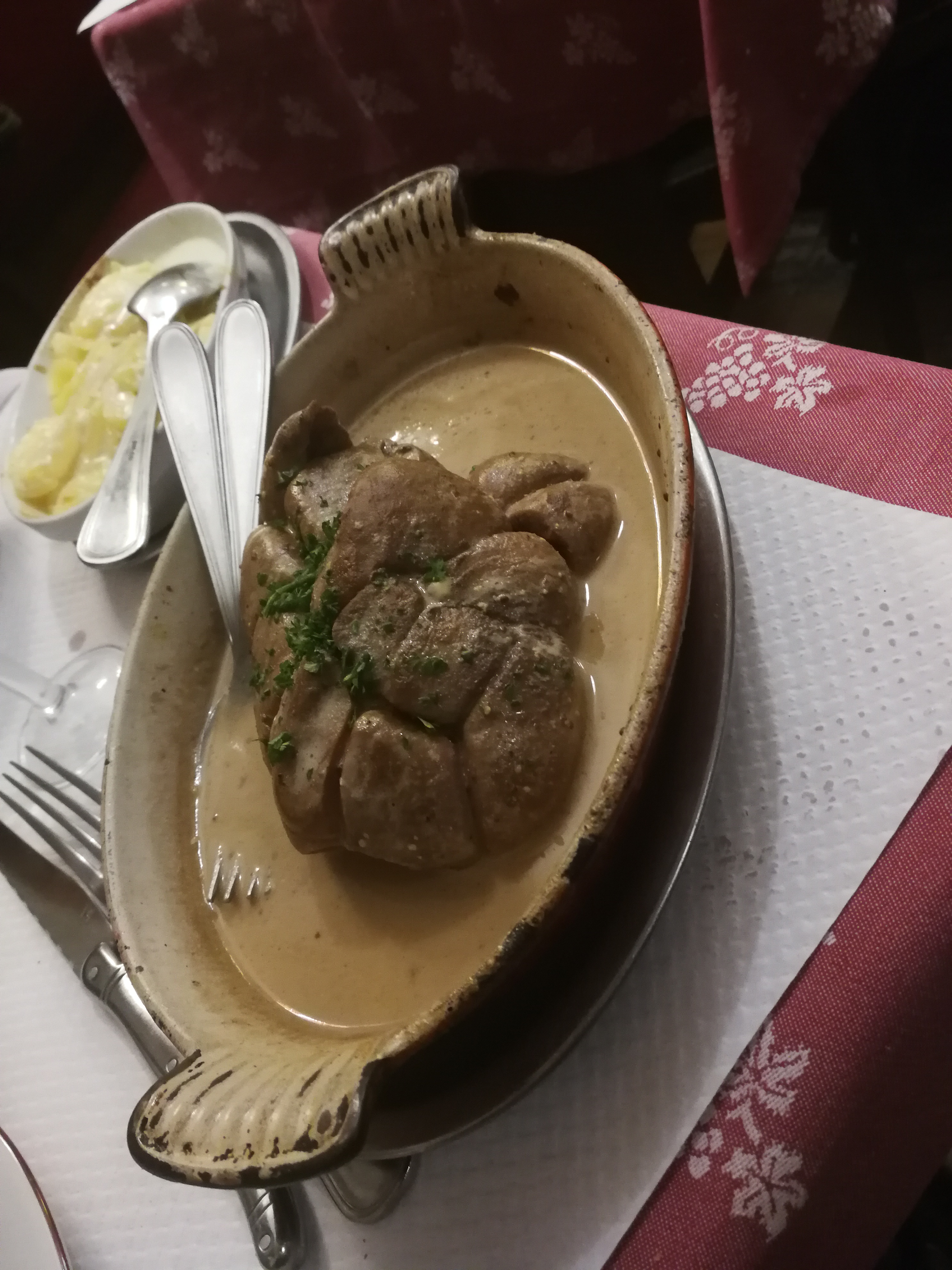 Un petit et mignon restaurant principalement destiné aux locaux. Nous avons testé plusieurs plats dont la salade lyonnaise, le foie de volaille, le rognon de veau entier et le poisson du jour. La salade lyonnaise était savoureuse et pourrait être le meilleur plat de la soirée. Le gâteau au foie de poulet (comme ils l'appellent) était correct mais la sauce tomate était froide. Le poisson était plein de pommes de terre, de morceaux de porc et de crème fraîche et ne pouvait donc pas goûter le poisson lui-même. Le rein était assez bien cuit et se mariait bien avec la sauce moutarde et les pommes de terre crémeuses. Je pense que c'est 3,5 sur 5. Il faut réserver à l'avance.