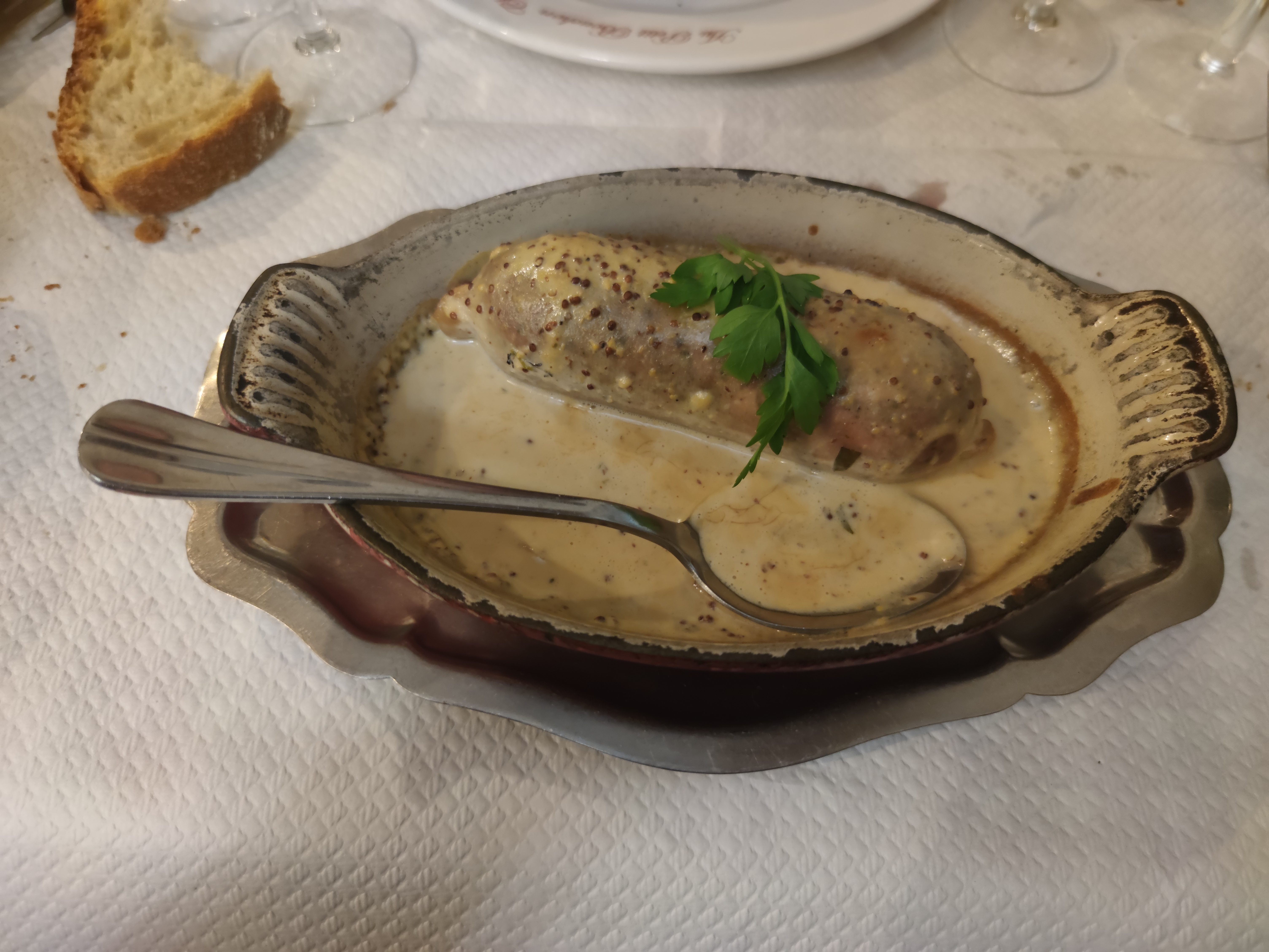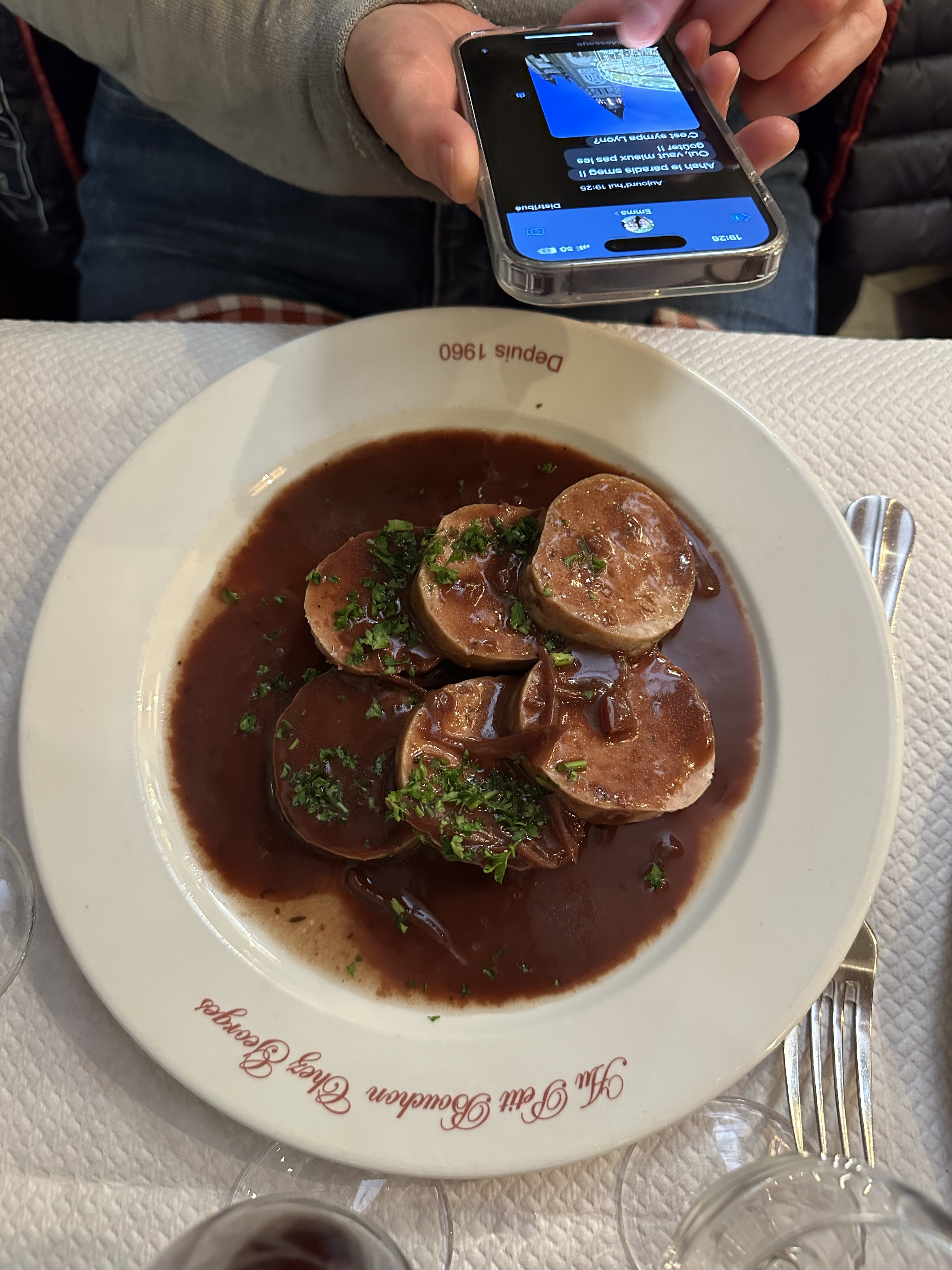 Un os à moelle avec des escargots racornis et un gratin d'andouillette qu'on aurait dû appeler gratin d'oignons à l'andouillette tant il y en avait. Et comme je le craignais une tourista pas possible toute la nuit. Dommage, le service est toujours sympathique mais je n'y retournerai plus.