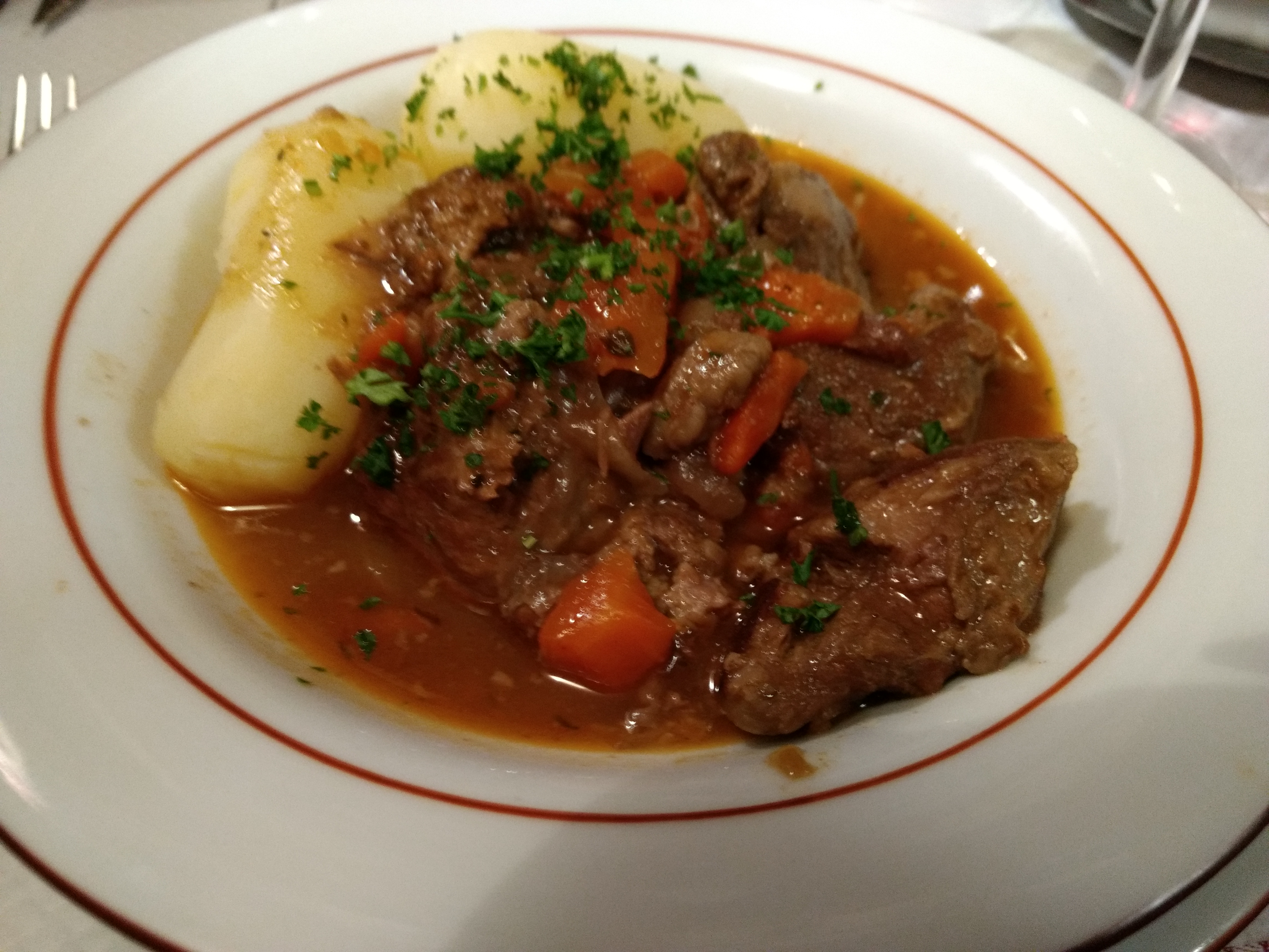 Très vieille école à tous points de vue. Pas aussi charmant qu’on pourrait s’y attendre. Les plats ne sont pas très bien exécutés et rien n'est exceptionnel, y compris le service qui semble privilégier la clientèle française. Le fromage de tête était très salé, la soupe à l'oignon était au mieux médiocre avec peu de gratinée sur le fromage. Mon plat principal était la quenelle de brochet accompagnée d'une petite écrevisse trop cuite. Le pire était le pain qui était honteusement rassis.